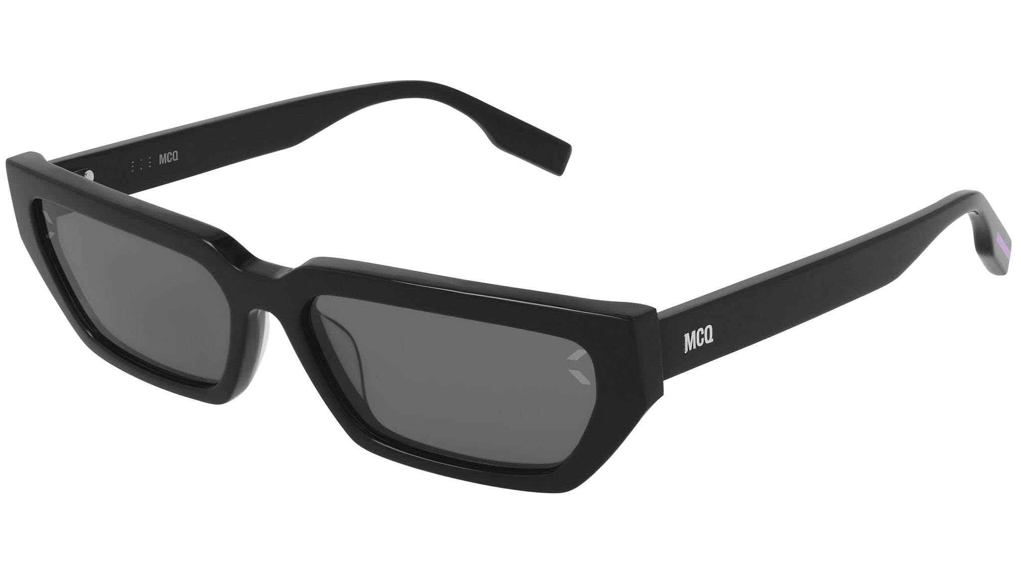 Occhiali da sole McQ Collection 0 modello MQ0302S 001, variante colore nero lucido con lenti color grigio fumo tinta unita. Provocatorio e irriverente, lo stile delle collezioni McQ Eyewear disegna uno scenario di chiara ispirazione urban streetwear, declinando l'universo delle sub culture giovanili in occhiali dalle linee uniche.
