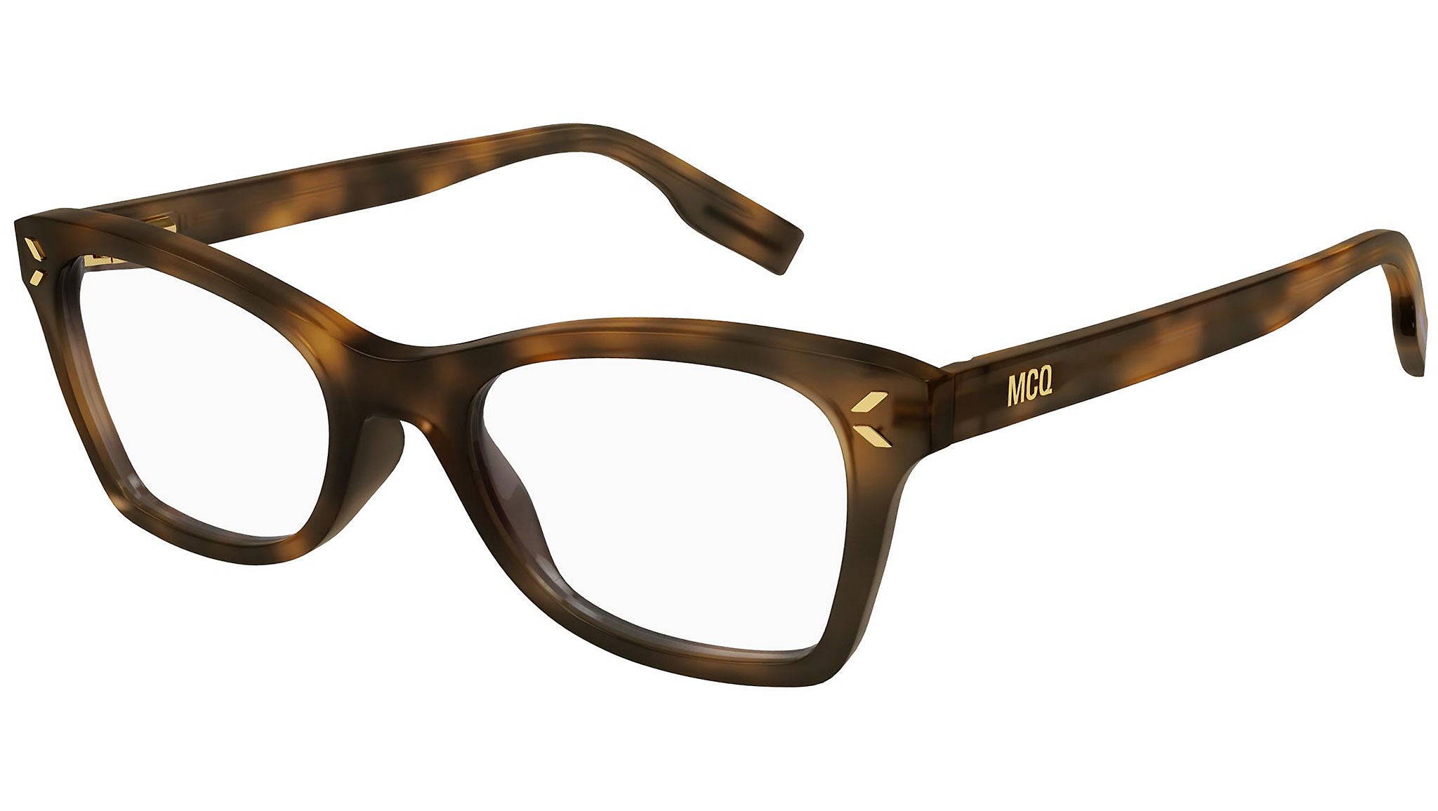 Occhiali da vista McQ Collection 0 modello 0347O, variante colore 002 avana medio lucido con astine color tartaruga.
