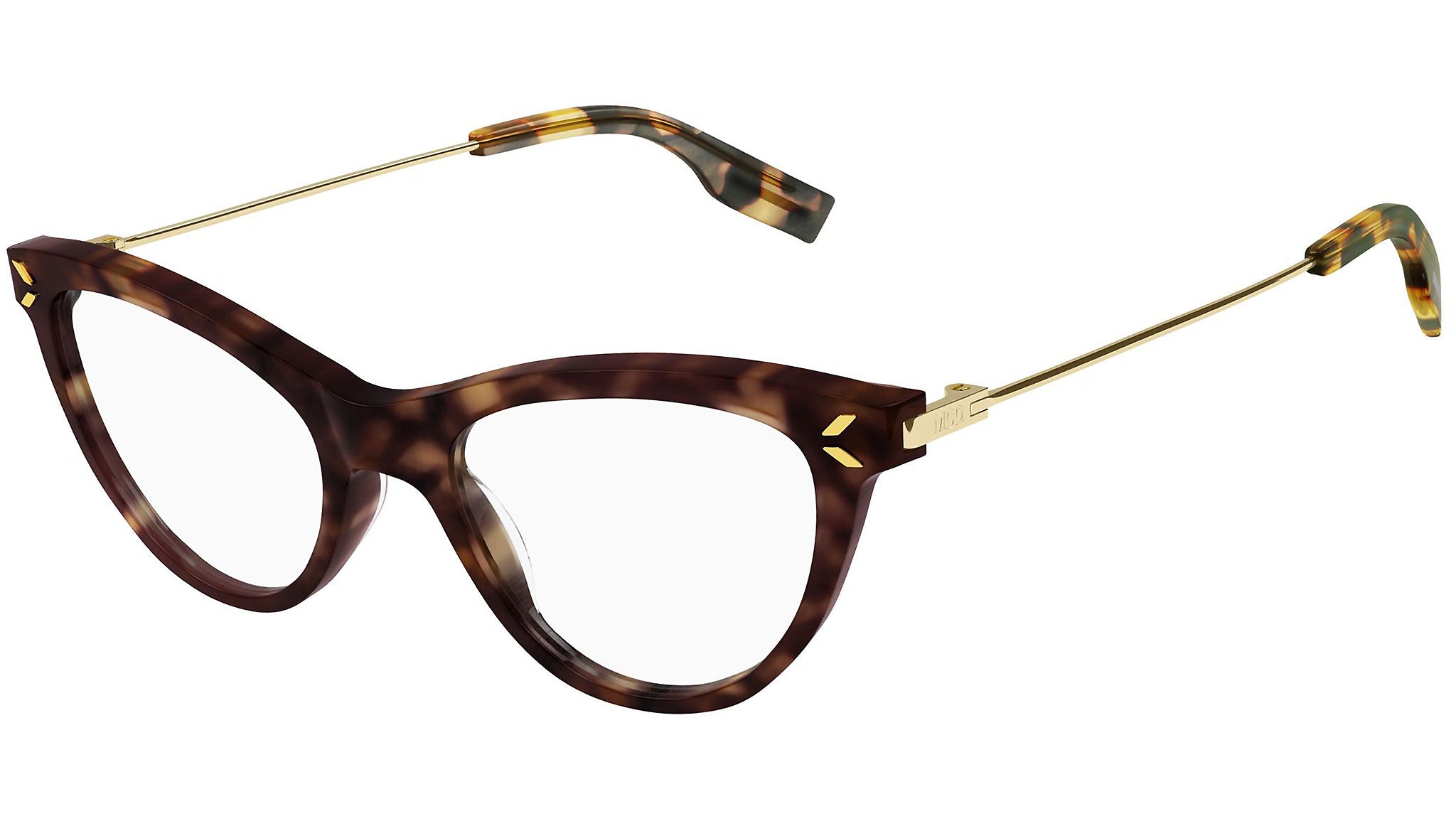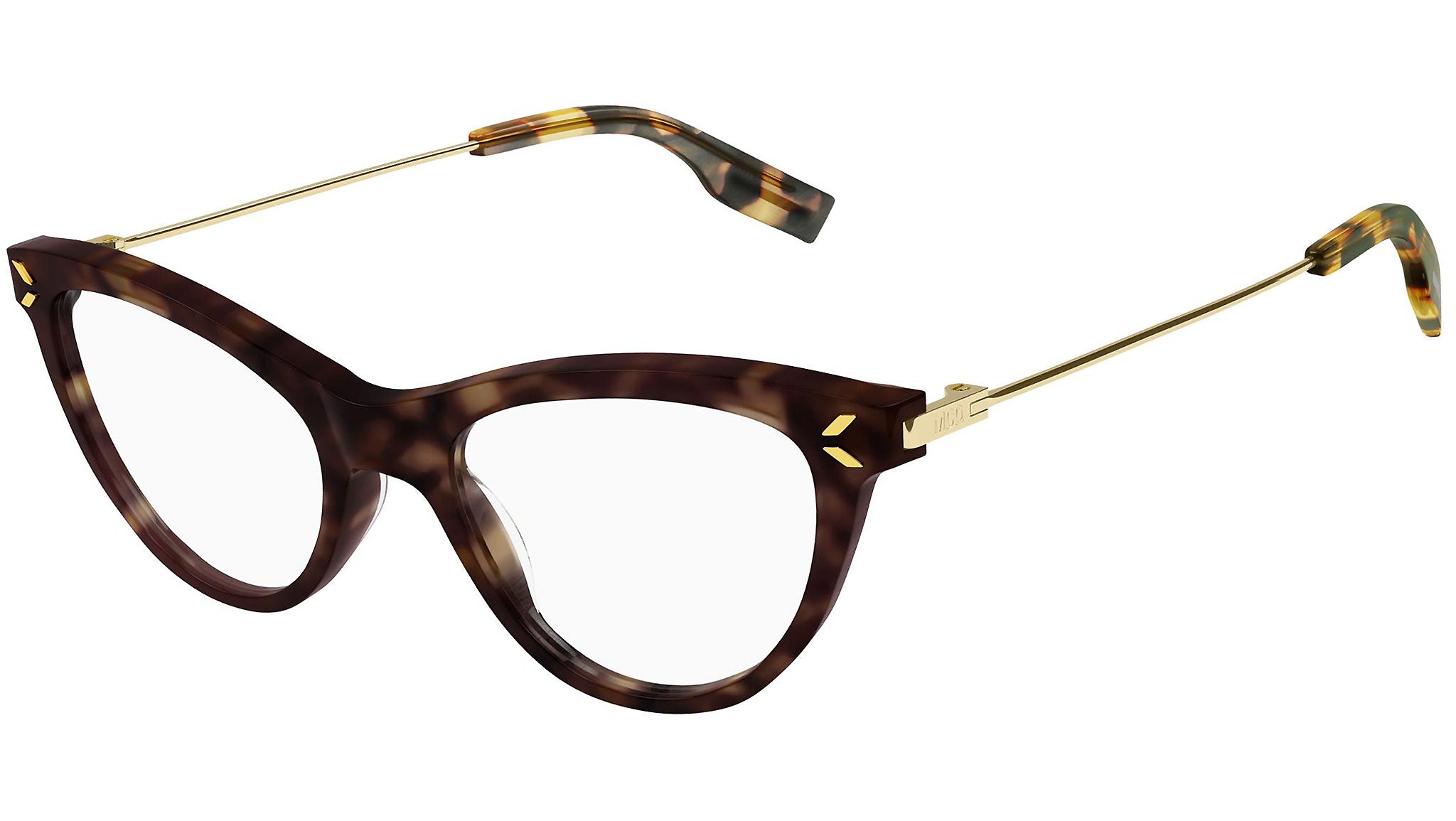 Occhiali da vista McQ Collection 0 modello 0356O, variante colore 002 tartaruga scuro lucido con astine color oro.