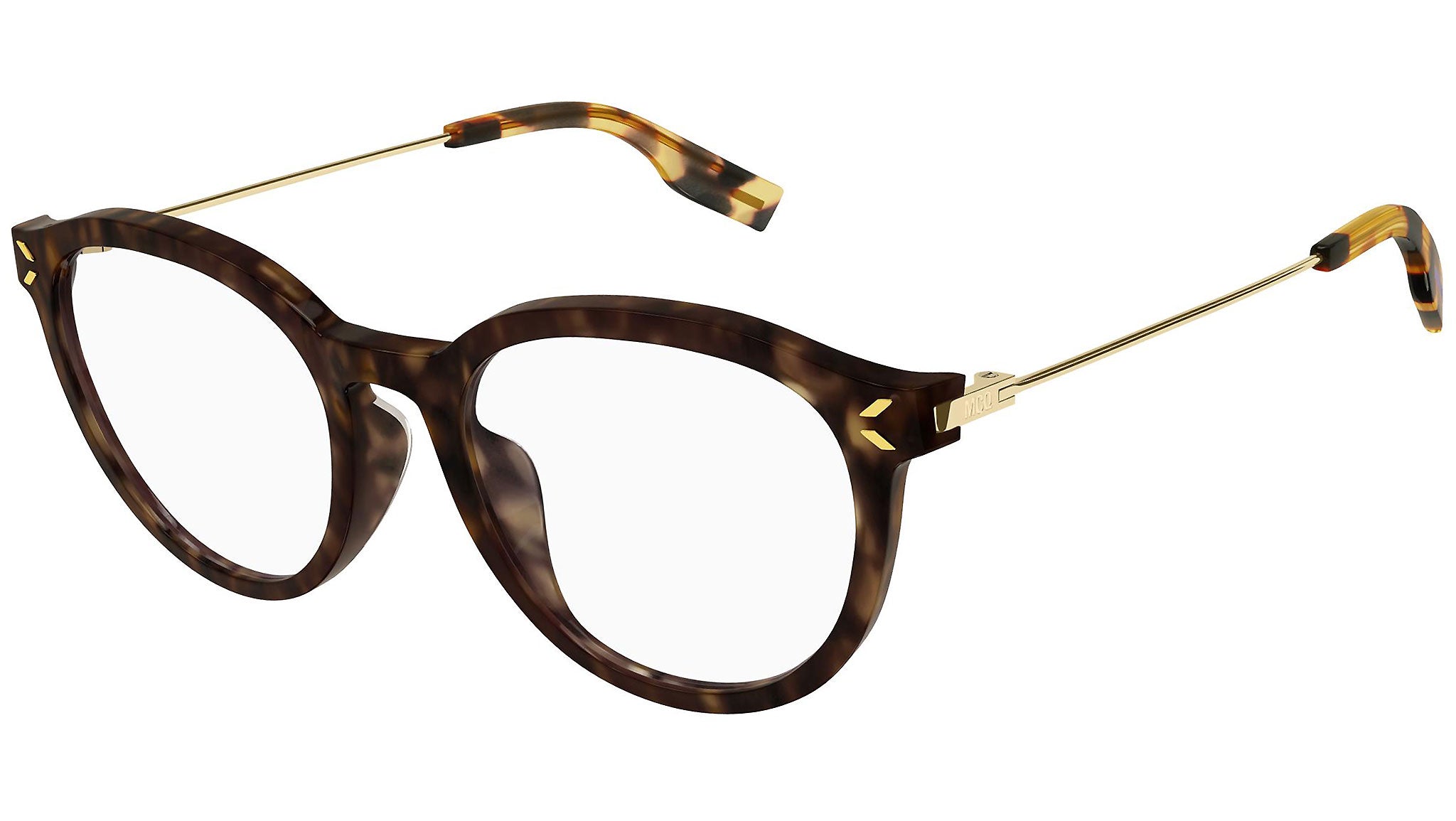 Occhiali da vista McQ Collection 0 modello 0357O, variante colore 002 tartaruga scuro lucido con astine color oro.
