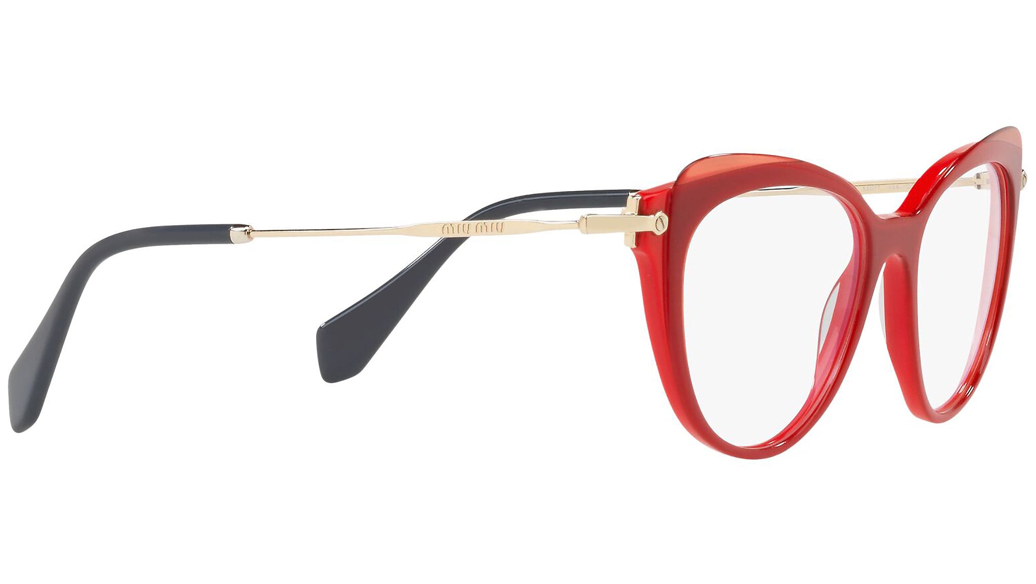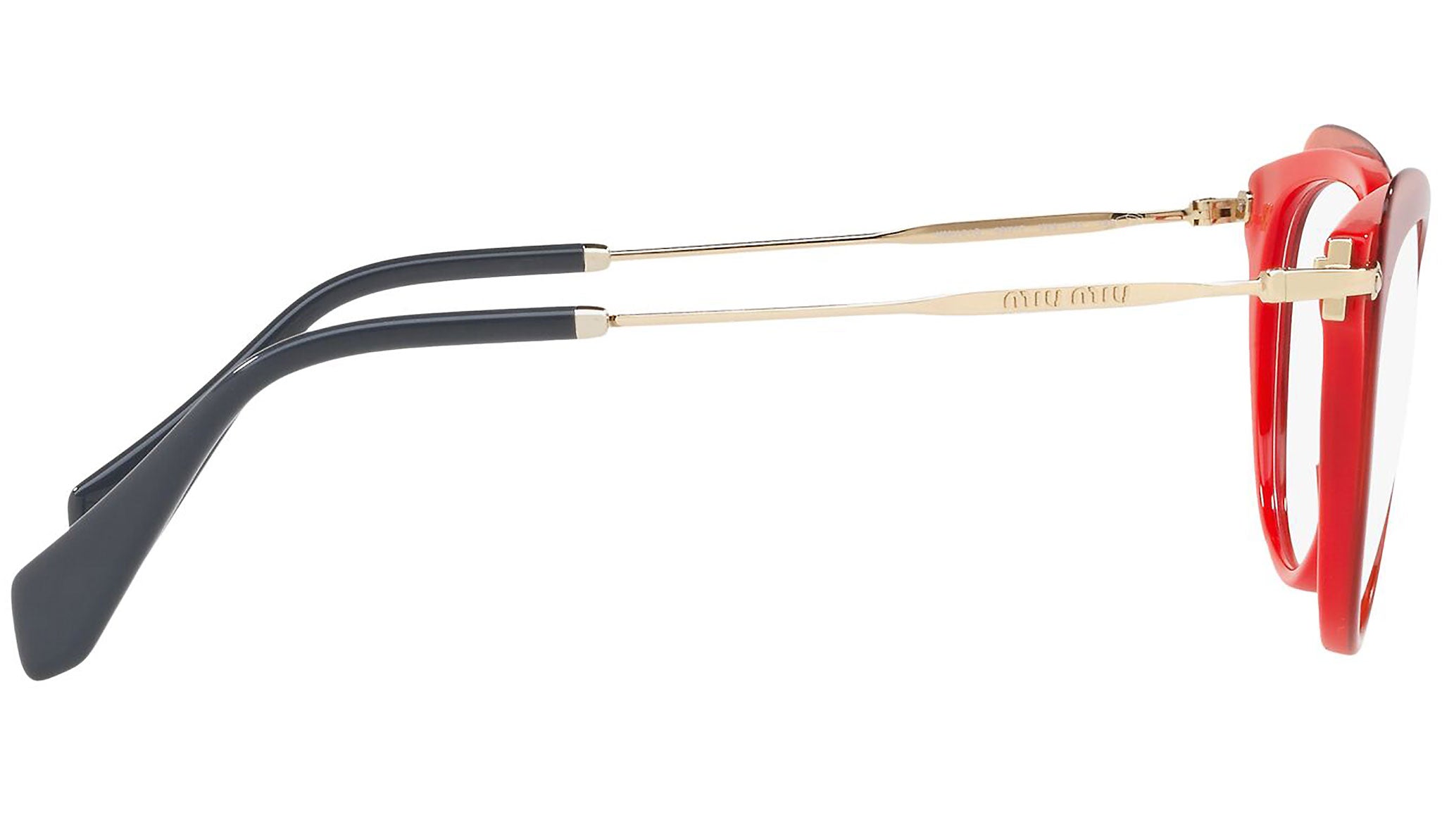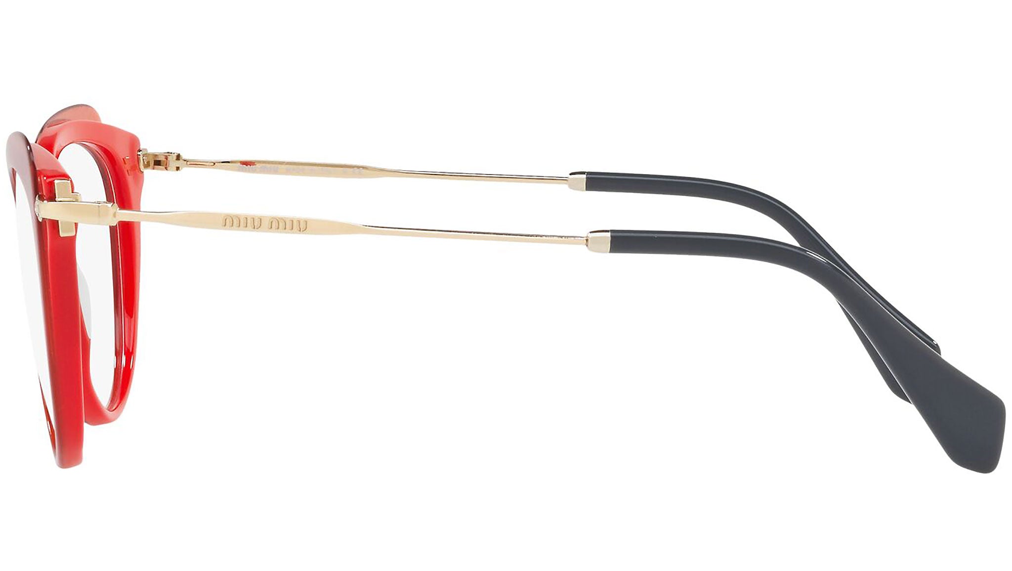 Occhiali da vista Miu Miu modello MU 01QV variante colore VX91O1 rosso con top trasparente. Miu Miu offre creazioni uniche, in cui la costante ricerca stilistica si combina perfettamente con la maestria artigianale della lavorazione. Le silhouette femminili e sinuose delle montature sono espressione di una ricchezza dei dettagli che rispecchia pienamente i codici stilistici e l’indiscusso talento del brand nell’unire il design non convenzionale ad un romanticismo dai rimandi retrò.