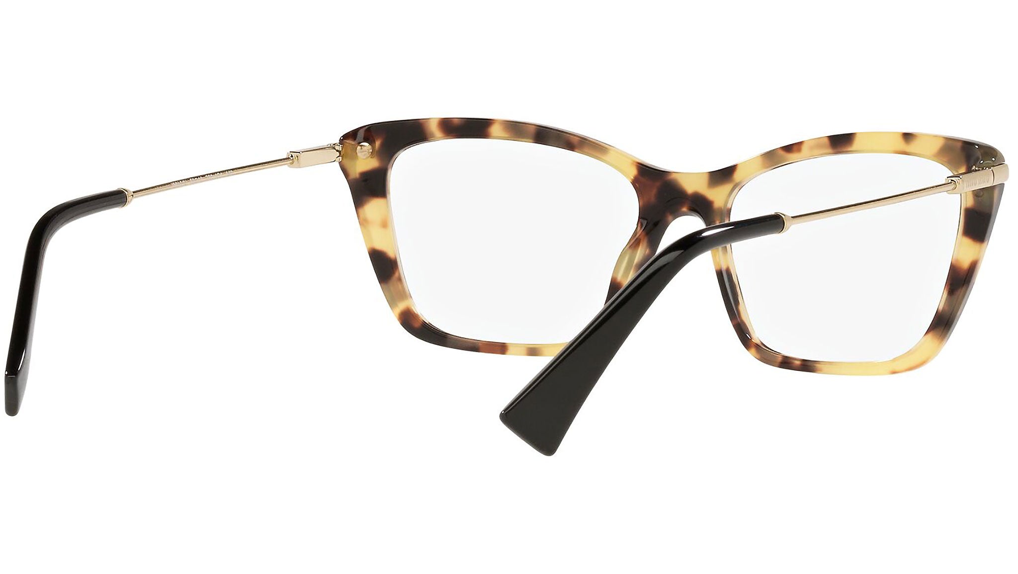 Occhiali da vista Miu Miu modello MU 01UV variante colore 7S01O1 avana chiaro. Miu Miu offre creazioni uniche, in cui la costante ricerca stilistica si combina perfettamente con la maestria artigianale della lavorazione. Le silhouette femminili e sinuose delle montature sono espressione di una ricchezza dei dettagli che rispecchia pienamente i codici stilistici e l’indiscusso talento del brand nell’unire il design non convenzionale ad un romanticismo dai rimandi retrò.