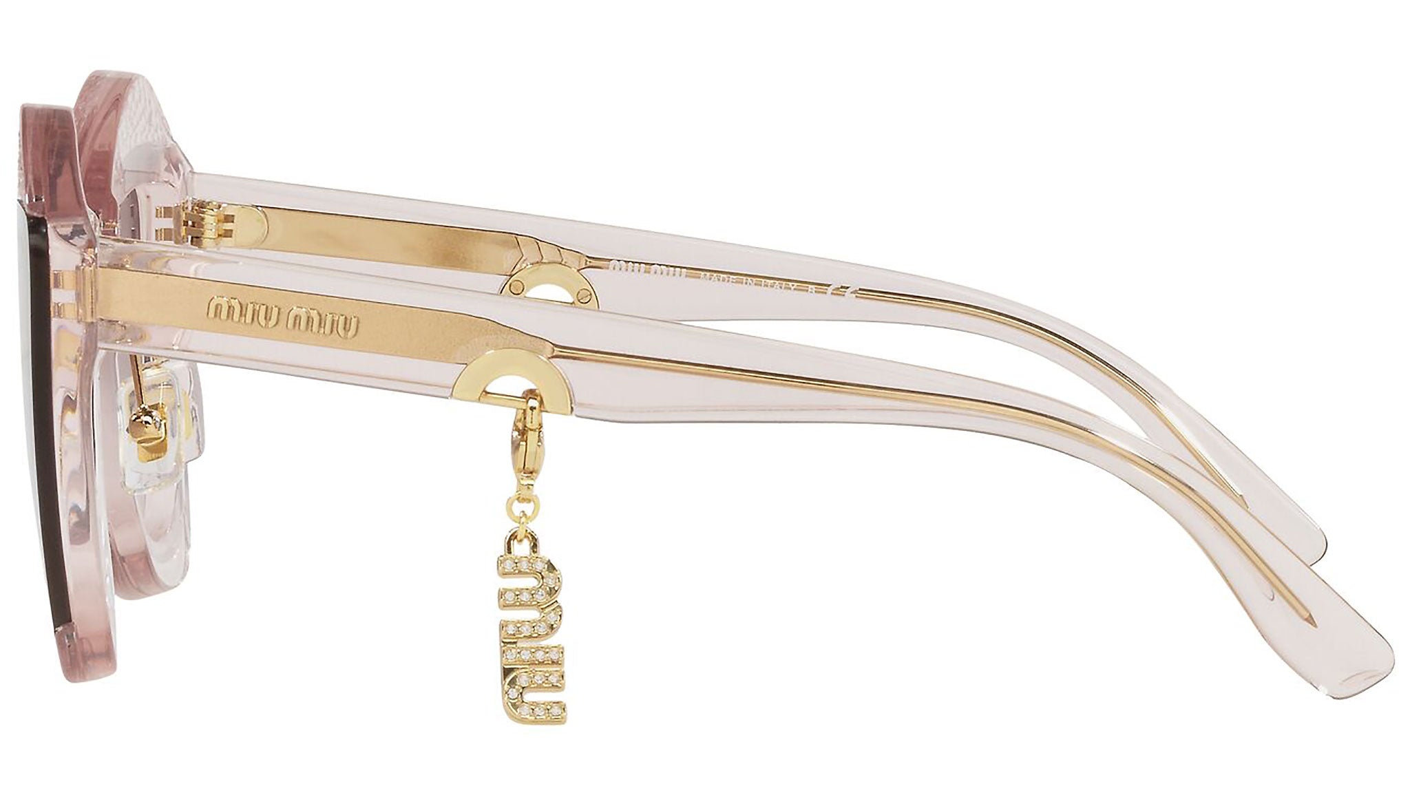 Occhiali da sole Miu Miu modello MU 01XS variante colore 09N4K0 marrone chiaro trasparente, con lenti color rosa sfumato grigio. Miu Miu offre creazioni uniche, in cui la costante ricerca stilistica si combina perfettamente con la maestria artigianale della lavorazione. Le silhouette femminili e sinuose delle montature sono espressione di una ricchezza dei dettagli che rispecchia pienamente i codici stilistici e l’indiscusso talento del brand nell’unire il design non convenzionale ad un romanticismo dai rimandi retrò.
