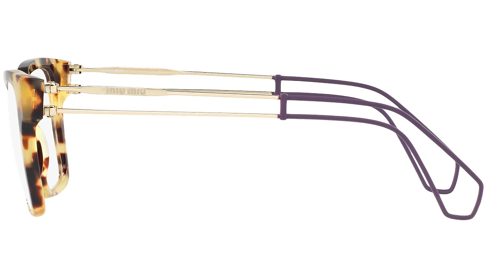 Montatura da vista Miu Miu modello MU 02PV codice colore 7S01O1 con montatura color avana giallo maculato in acetato e lenti demo. Miu Miu offre creazioni uniche, in cui la costante ricerca stilistica si combina perfettamente con la maestria artigianale della lavorazione. Le silhouette femminili e sinuose delle montature sono espressione di una ricchezza dei dettagli che rispecchia pienamente i codici stilistici e l’indiscusso talento del brand nell’unire il design non convenzionale ad un romanticismo dai rimandi retrò.
