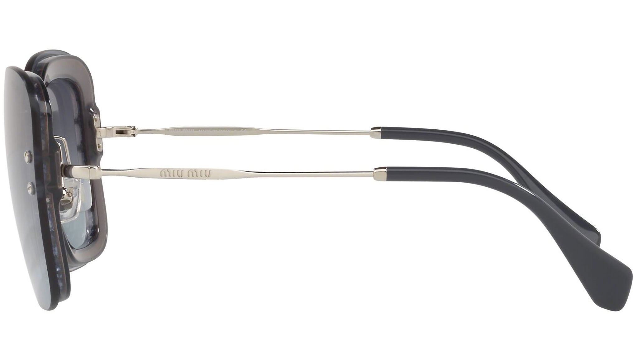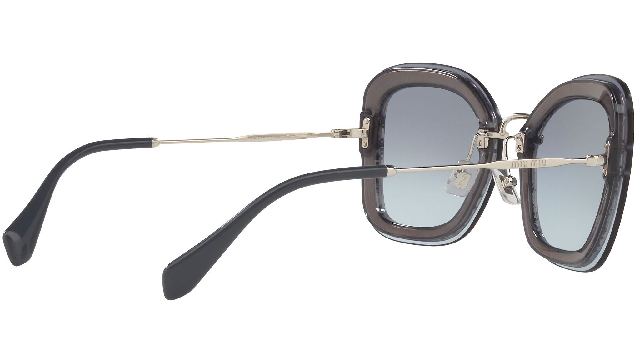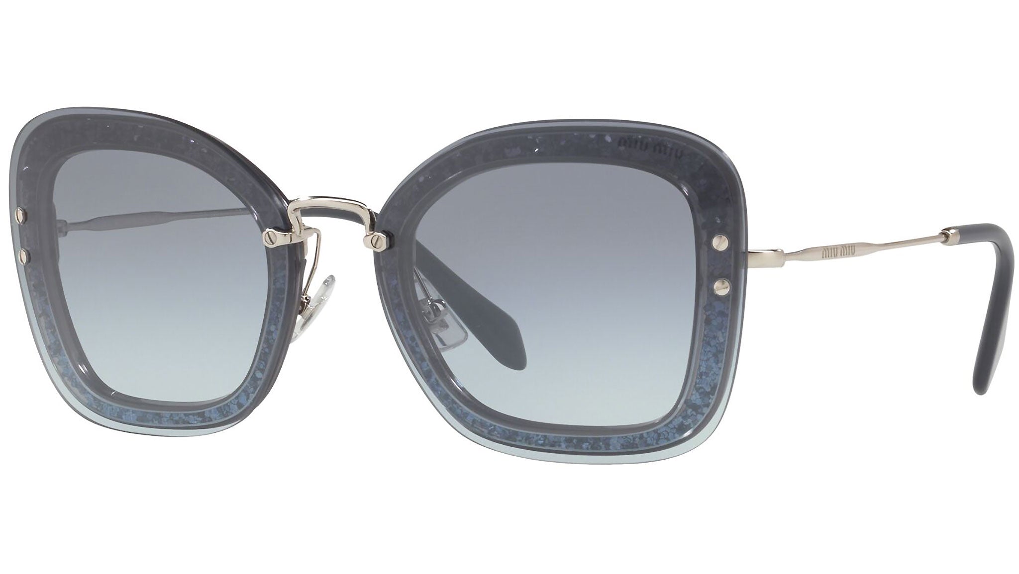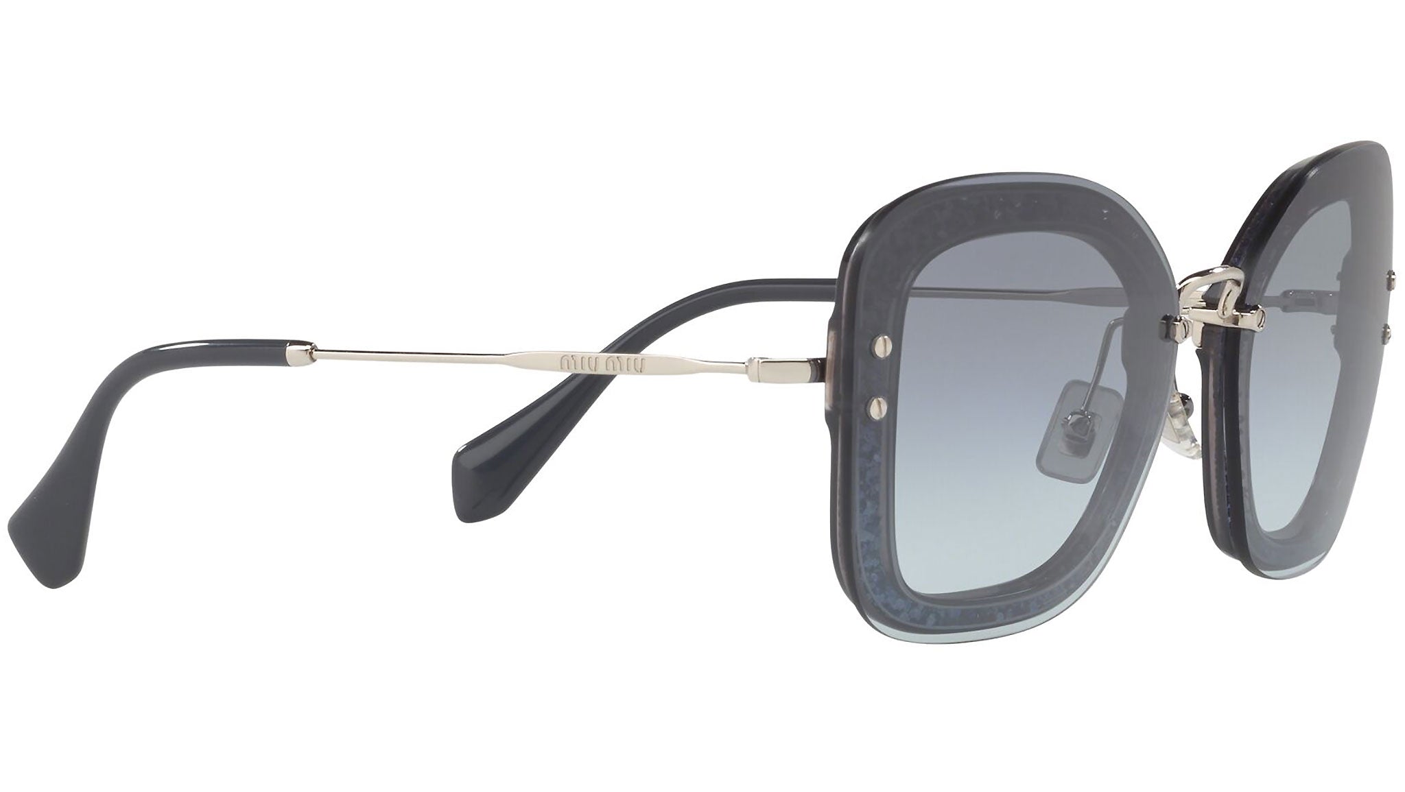 Occhiali da sole Miu Miu modello MU 02TS variante colore 102156 blu trasparente, con lenti color blu flash sfumato argento. Miu Miu offre creazioni uniche, in cui la costante ricerca stilistica si combina perfettamente con la maestria artigianale della lavorazione. Le silhouette femminili e sinuose delle montature sono espressione di una ricchezza dei dettagli che rispecchia pienamente i codici stilistici e l’indiscusso talento del brand nell’unire il design non convenzionale ad un romanticismo dai rimandi retrò.