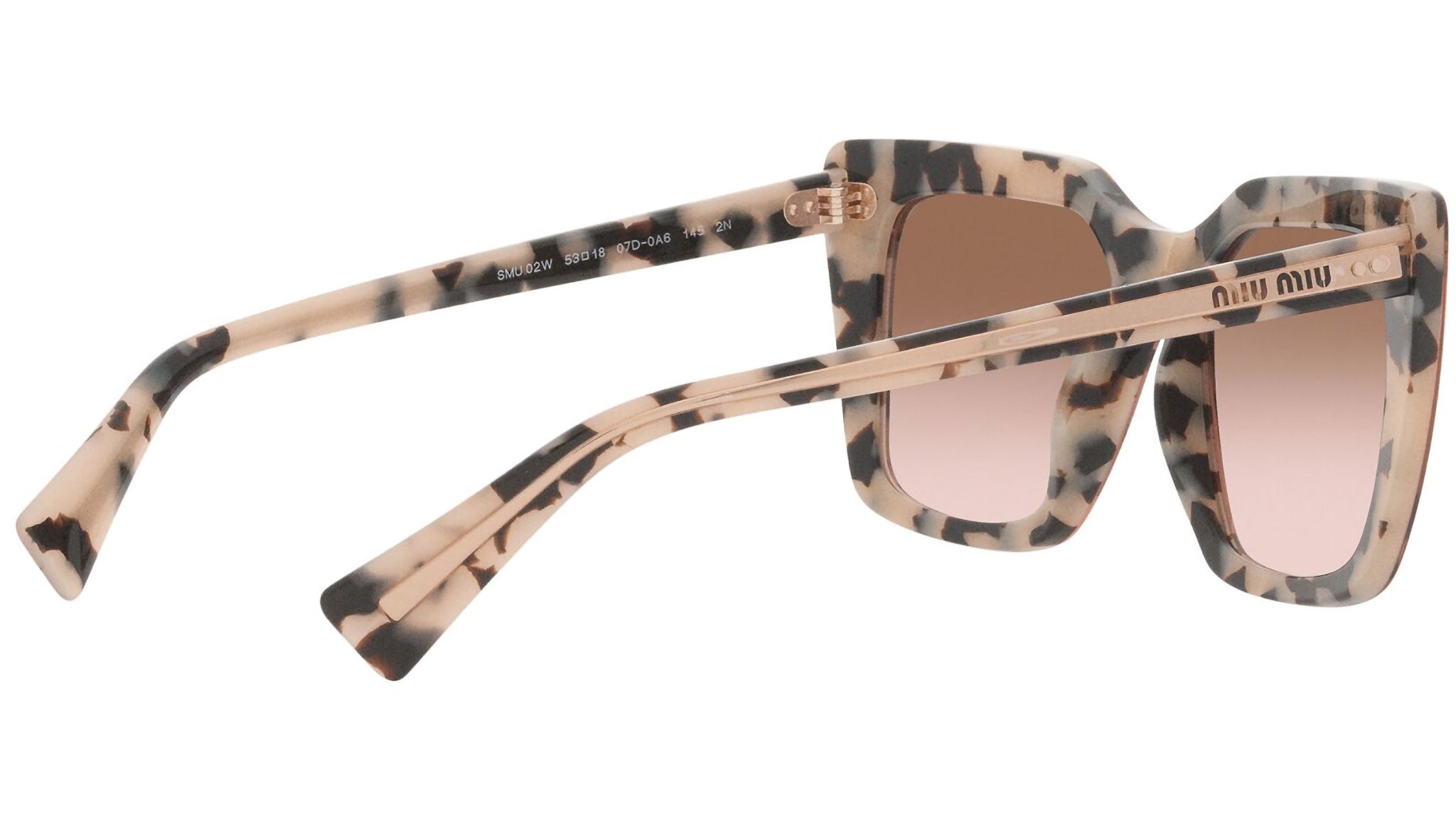 Occhiali da sole Miu Miu modello MU 02WS variante colore 07D0A6 avana rosa, con lenti color marrone sfumato. Miu Miu offre creazioni uniche, in cui la costante ricerca stilistica si combina perfettamente con la maestria artigianale della lavorazione. Le silhouette femminili e sinuose delle montature sono espressione di una ricchezza dei dettagli che rispecchia pienamente i codici stilistici e l’indiscusso talento del brand nell’unire il design non convenzionale ad un romanticismo dai rimandi retrò.
