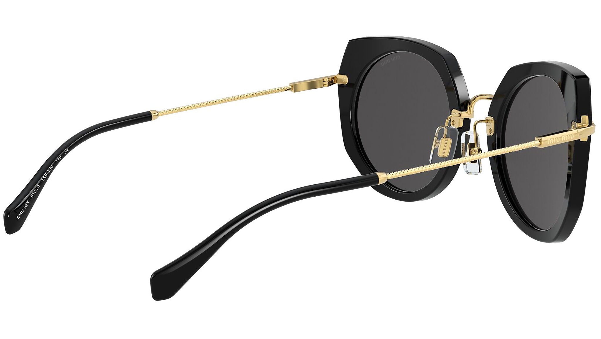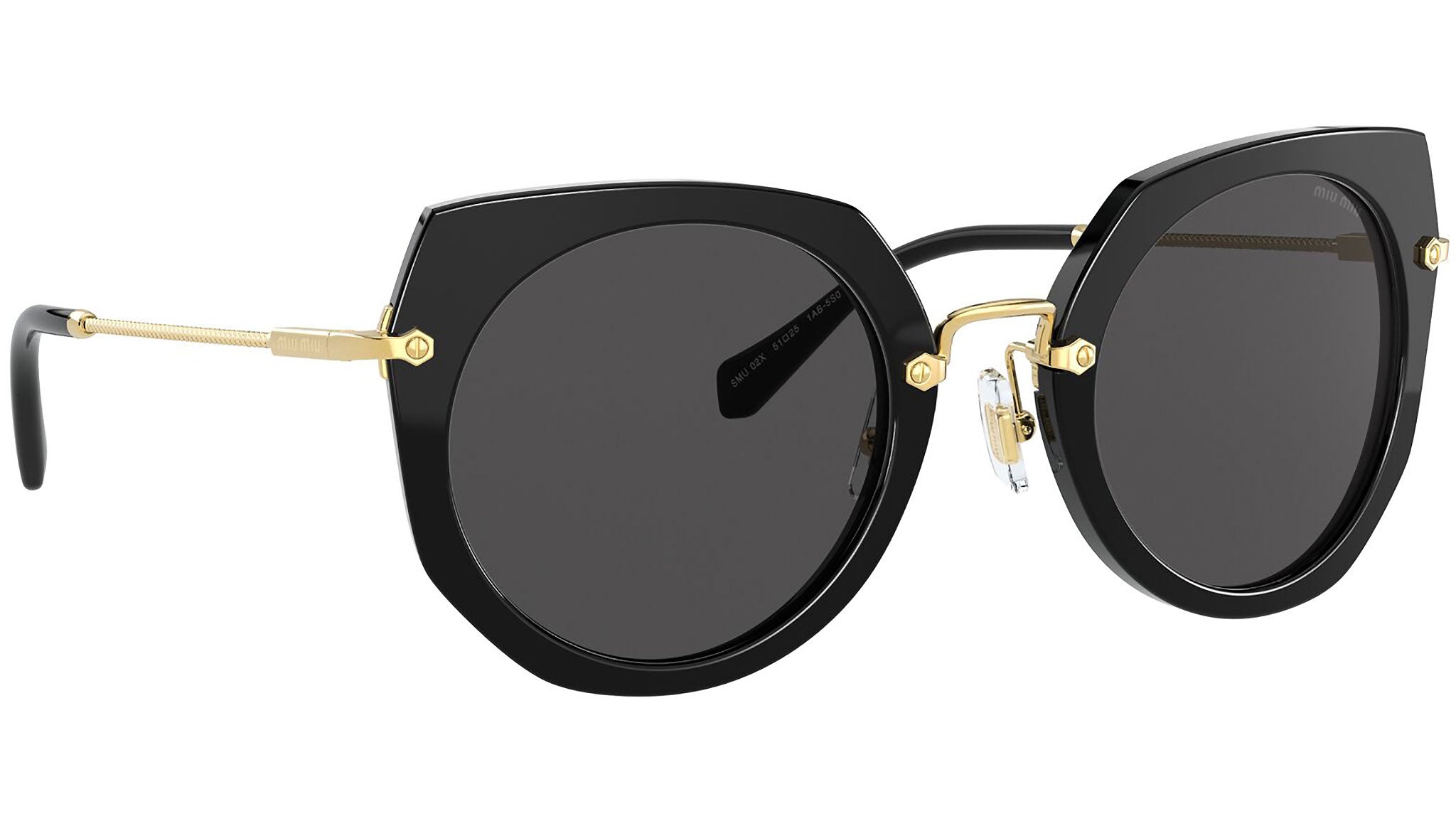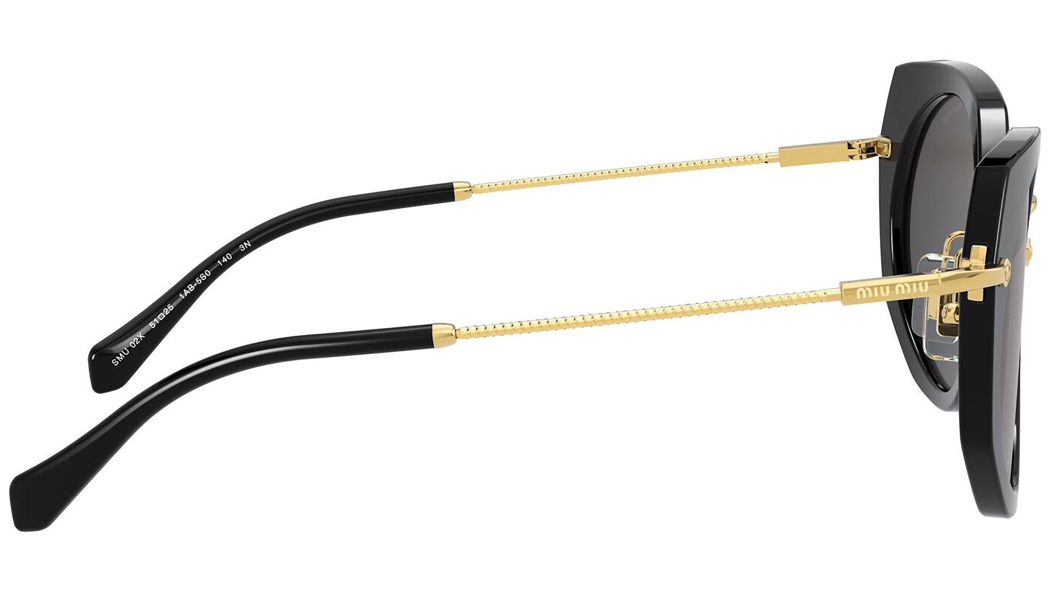 Occhiali da sole Miu Miu modello MU 02XS variante colore 1AB5S0 nero, con lenti color grigio scuro. Miu Miu offre creazioni uniche, in cui la costante ricerca stilistica si combina perfettamente con la maestria artigianale della lavorazione. Le silhouette femminili e sinuose delle montature sono espressione di una ricchezza dei dettagli che rispecchia pienamente i codici stilistici e l’indiscusso talento del brand nell’unire il design non convenzionale ad un romanticismo dai rimandi retrò.