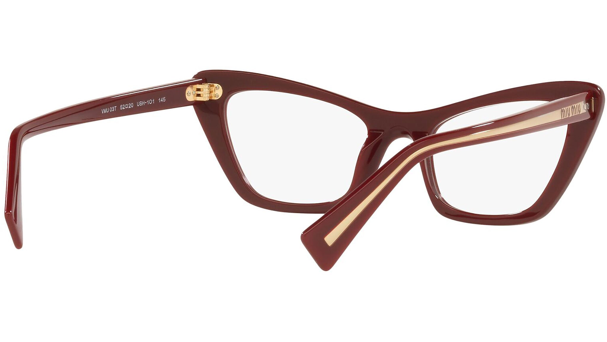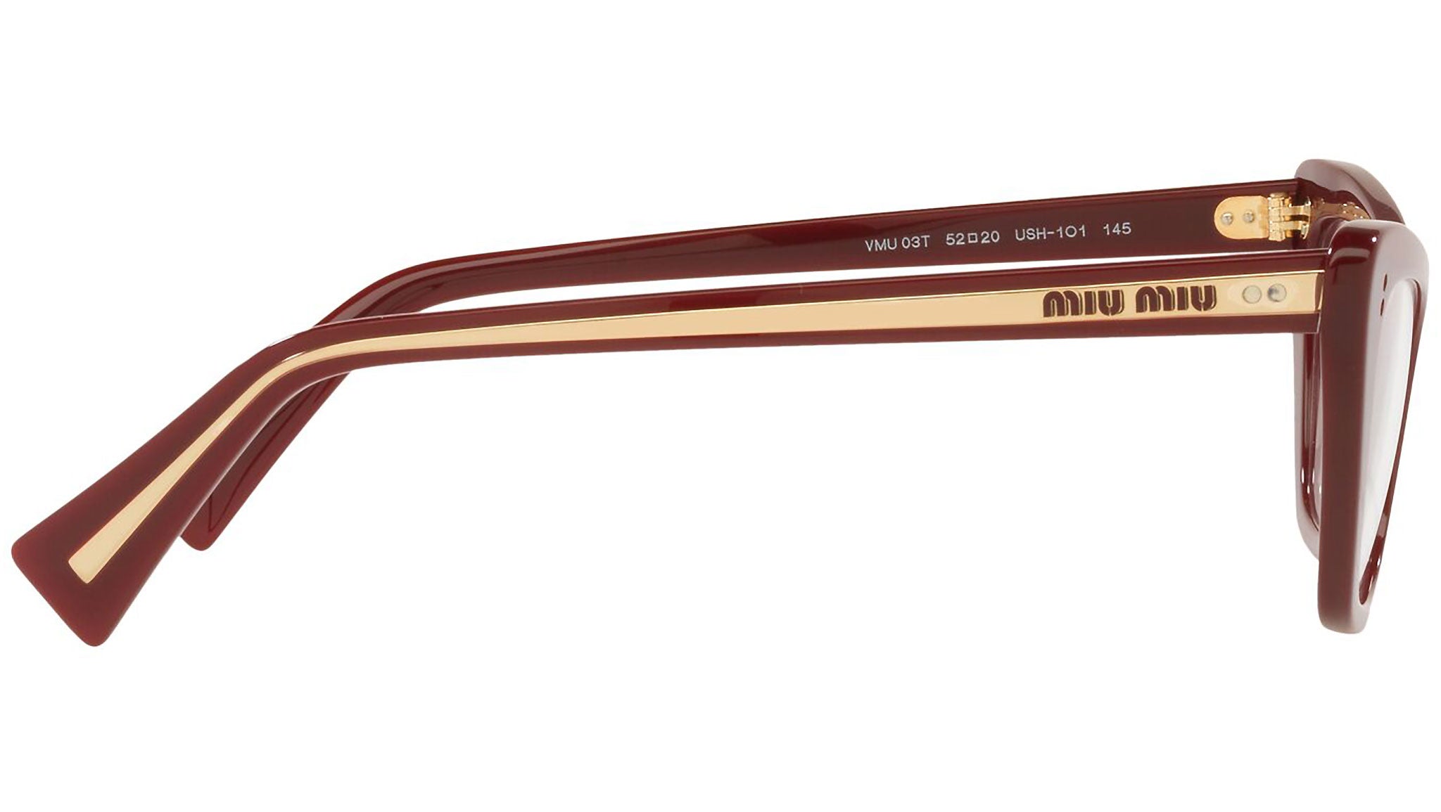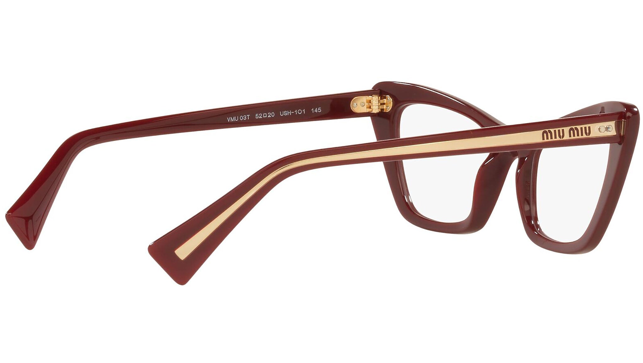 Occhiali da vista Miu Miu modello MU 03TV variante colore USH1O1 bordeaux. Miu Miu offre creazioni uniche, in cui la costante ricerca stilistica si combina perfettamente con la maestria artigianale della lavorazione. Le silhouette femminili e sinuose delle montature sono espressione di una ricchezza dei dettagli che rispecchia pienamente i codici stilistici e l’indiscusso talento del brand nell’unire il design non convenzionale ad un romanticismo dai rimandi retrò.