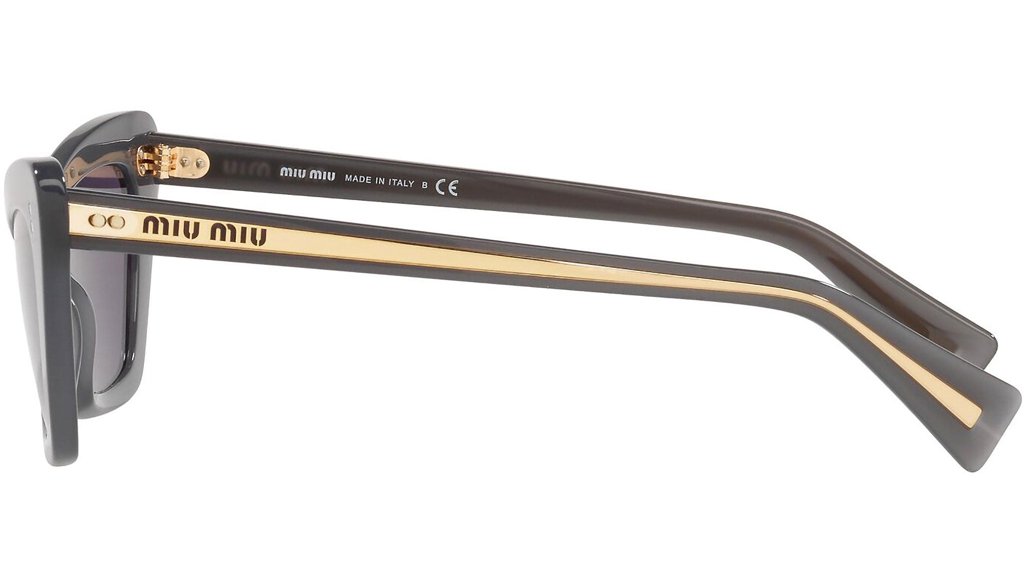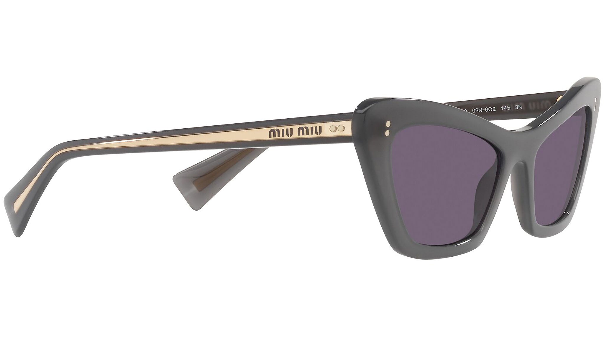 Occhiali da sole Miu Miu modello MU 03XS variante colore 03N6O2 grigio trasparente, con lenti color viola. Miu Miu offre creazioni uniche, in cui la costante ricerca stilistica si combina perfettamente con la maestria artigianale della lavorazione. Le silhouette femminili e sinuose delle montature sono espressione di una ricchezza dei dettagli che rispecchia pienamente i codici stilistici e l’indiscusso talento del brand nell’unire il design non convenzionale ad un romanticismo dai rimandi retrò.