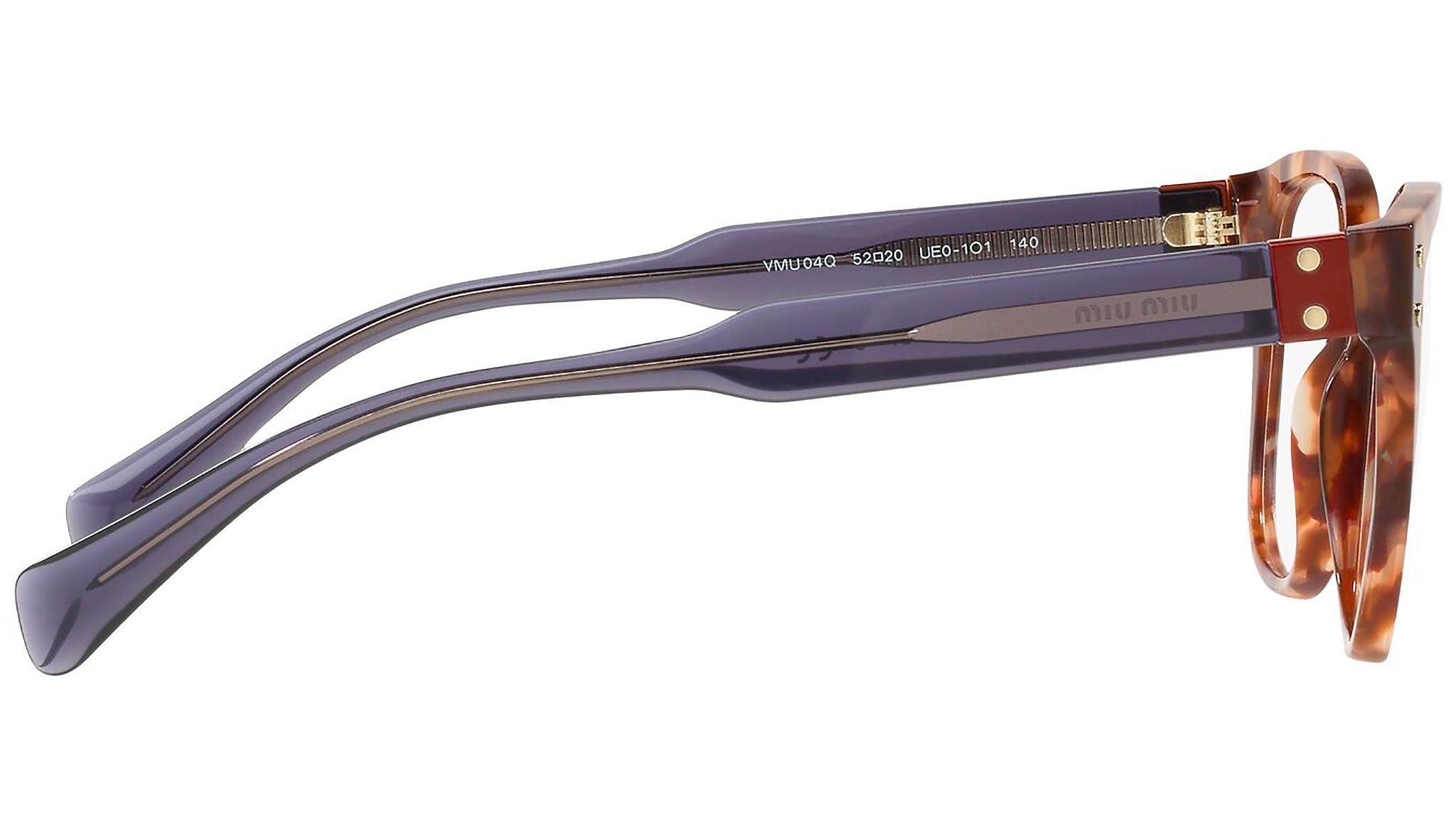 Occhiali da vista Miu Miu modello MU 04QV variante colore UE01O1 avana hydrangea. Miu Miu offre creazioni uniche, in cui la costante ricerca stilistica si combina perfettamente con la maestria artigianale della lavorazione. Le silhouette femminili e sinuose delle montature sono espressione di una ricchezza dei dettagli che rispecchia pienamente i codici stilistici e l’indiscusso talento del brand nell’unire il design non convenzionale ad un romanticismo dai rimandi retrò.