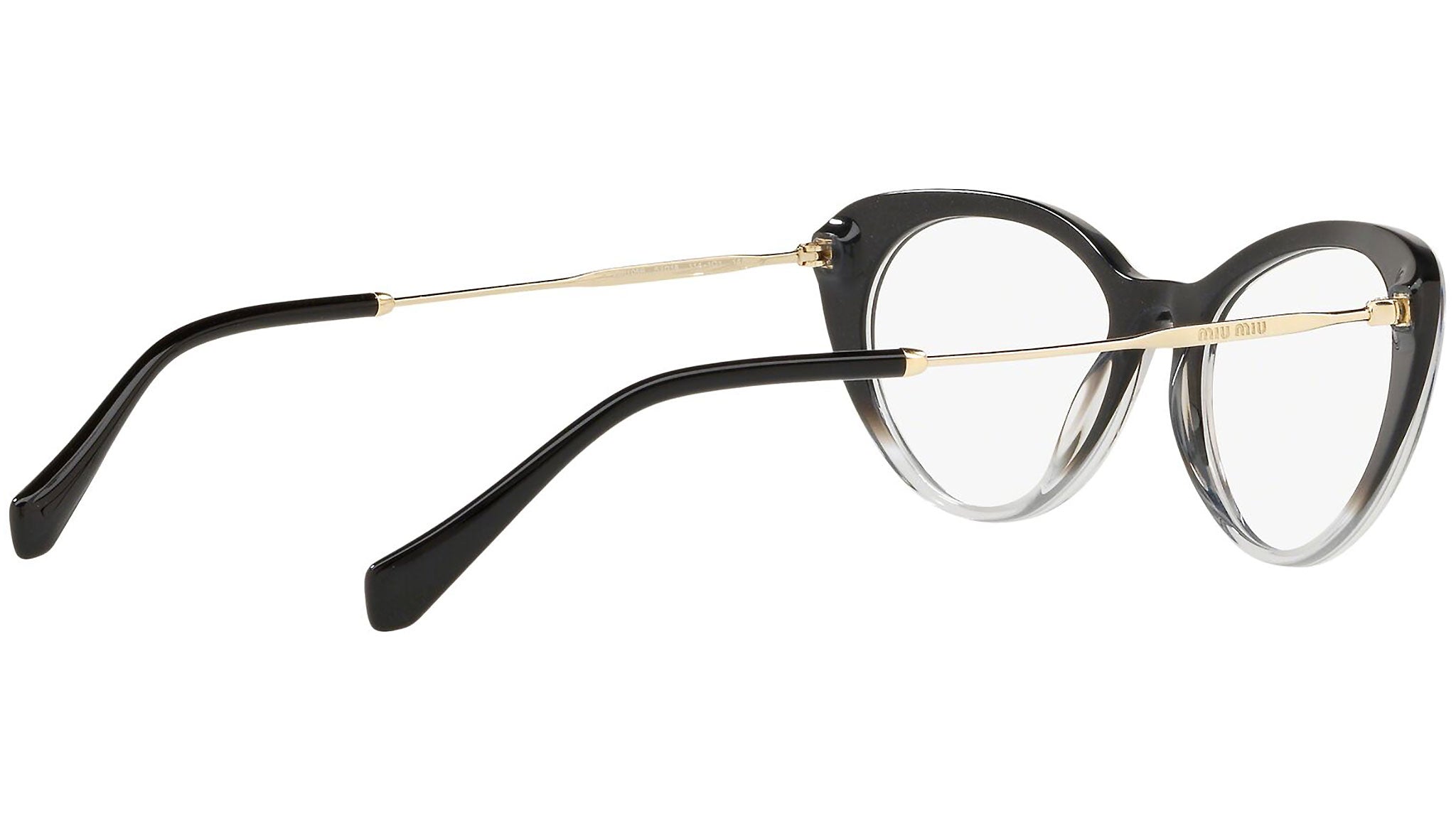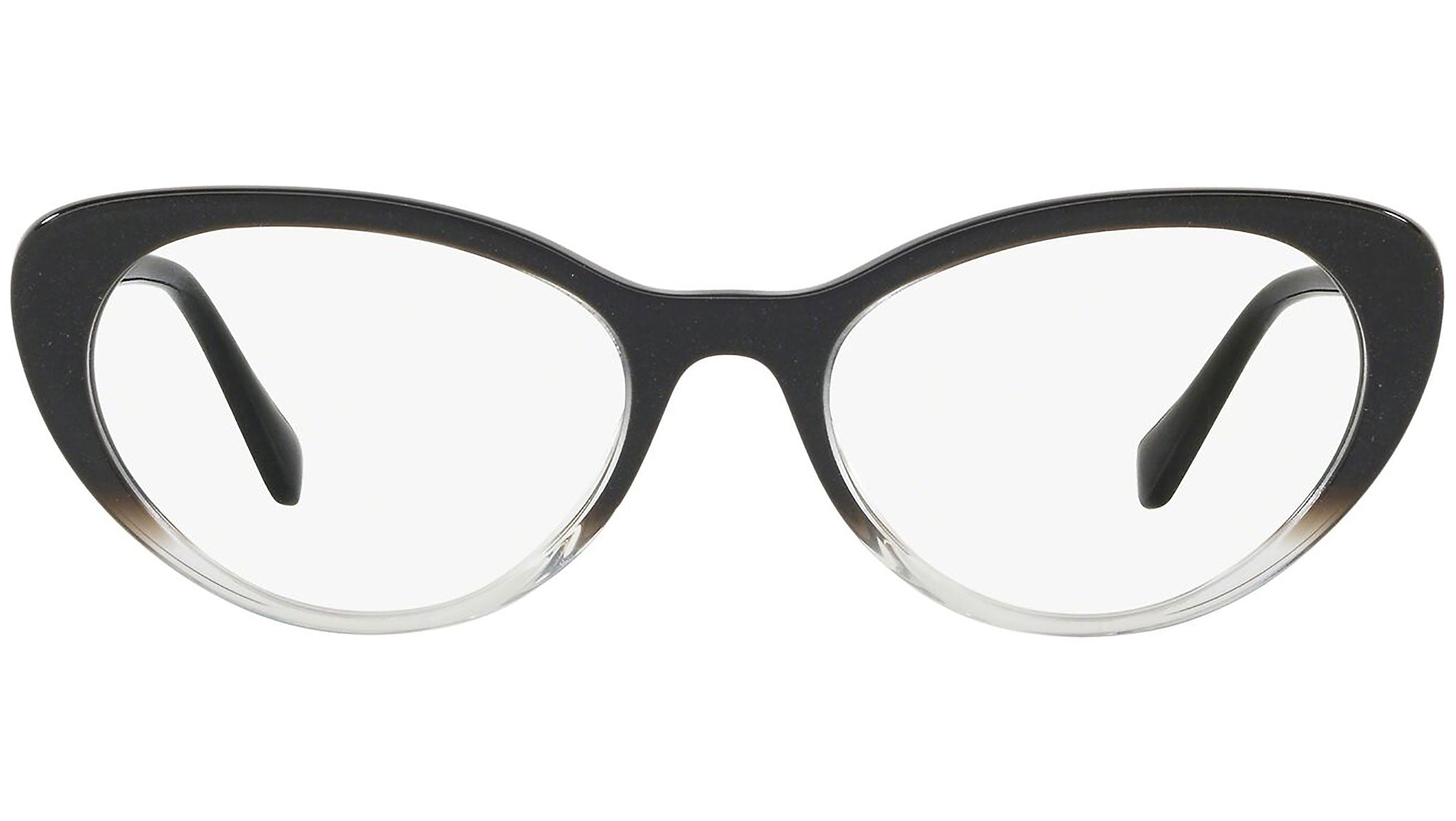 Occhiali da vista Miu Miu modello MU 05RV variante colore 1141O1 nero sfumato glitterato. Miu Miu offre creazioni uniche, in cui la costante ricerca stilistica si combina perfettamente con la maestria artigianale della lavorazione. Le silhouette femminili e sinuose delle montature sono espressione di una ricchezza dei dettagli che rispecchia pienamente i codici stilistici e l’indiscusso talento del brand nell’unire il design non convenzionale ad un romanticismo dai rimandi retrò.