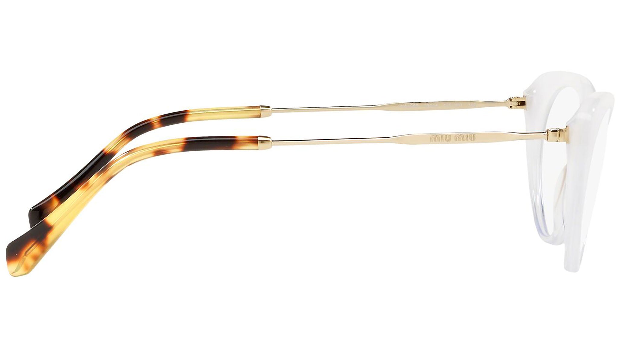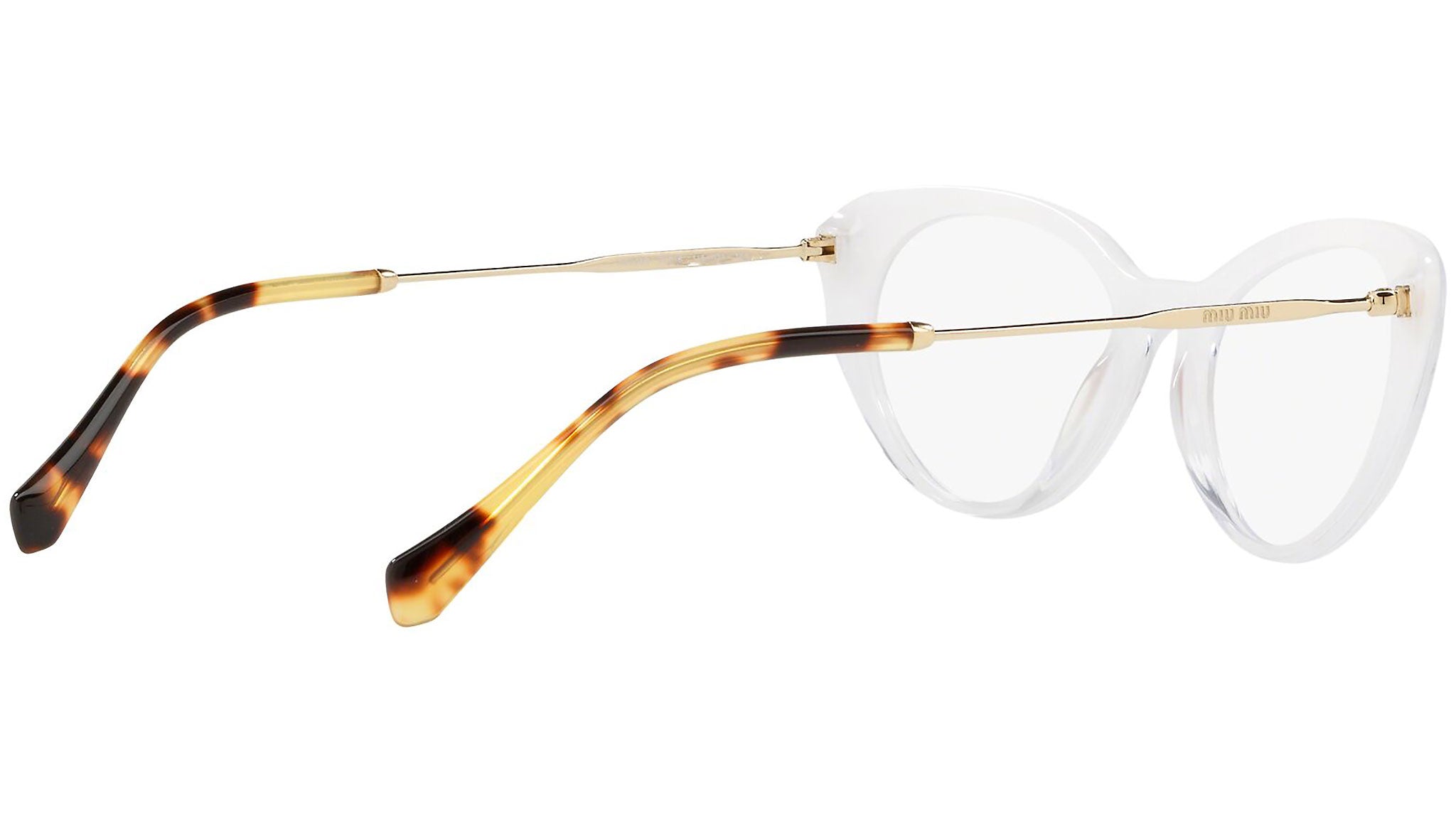 Occhiali da vista Miu Miu modello MU 05RV variante colore 1151O1 bianco glitterato sfumato a trasparente. Miu Miu offre creazioni uniche, in cui la costante ricerca stilistica si combina perfettamente con la maestria artigianale della lavorazione. Le silhouette femminili e sinuose delle montature sono espressione di una ricchezza dei dettagli che rispecchia pienamente i codici stilistici e l’indiscusso talento del brand nell’unire il design non convenzionale ad un romanticismo dai rimandi retrò.