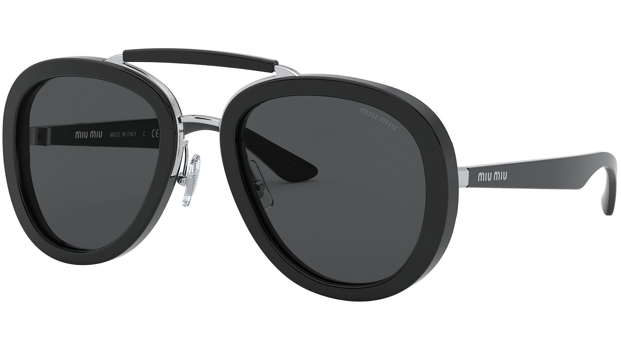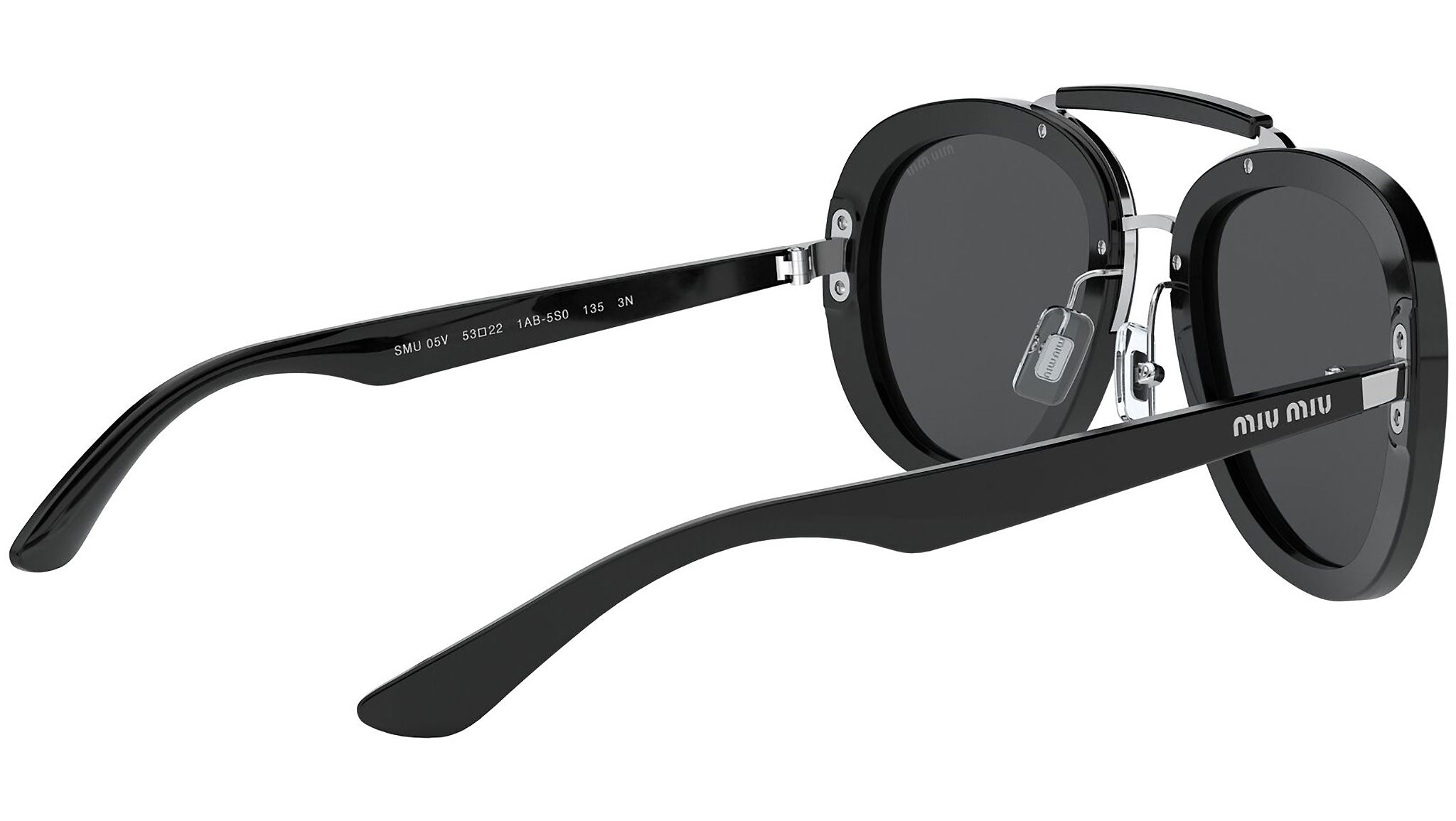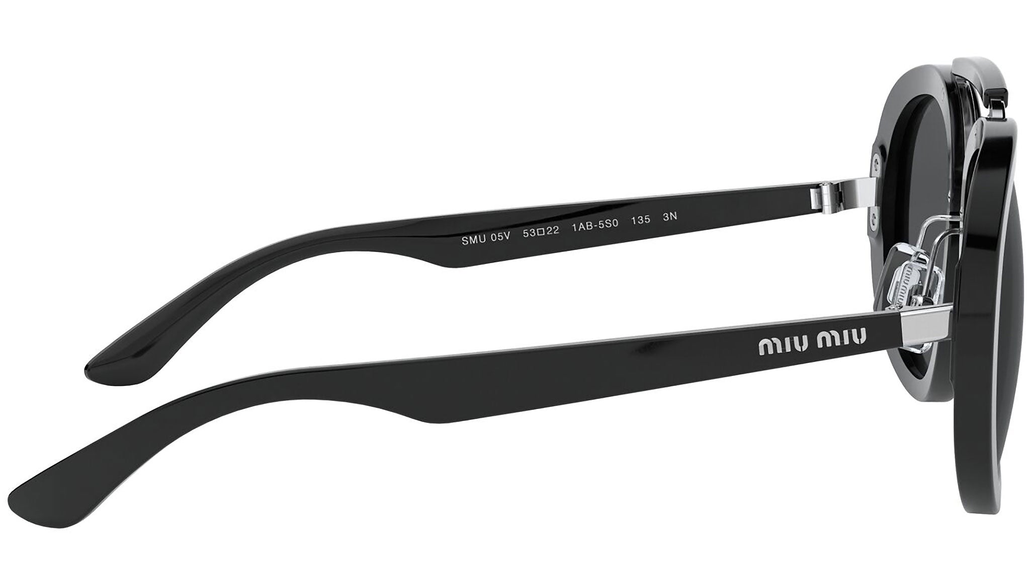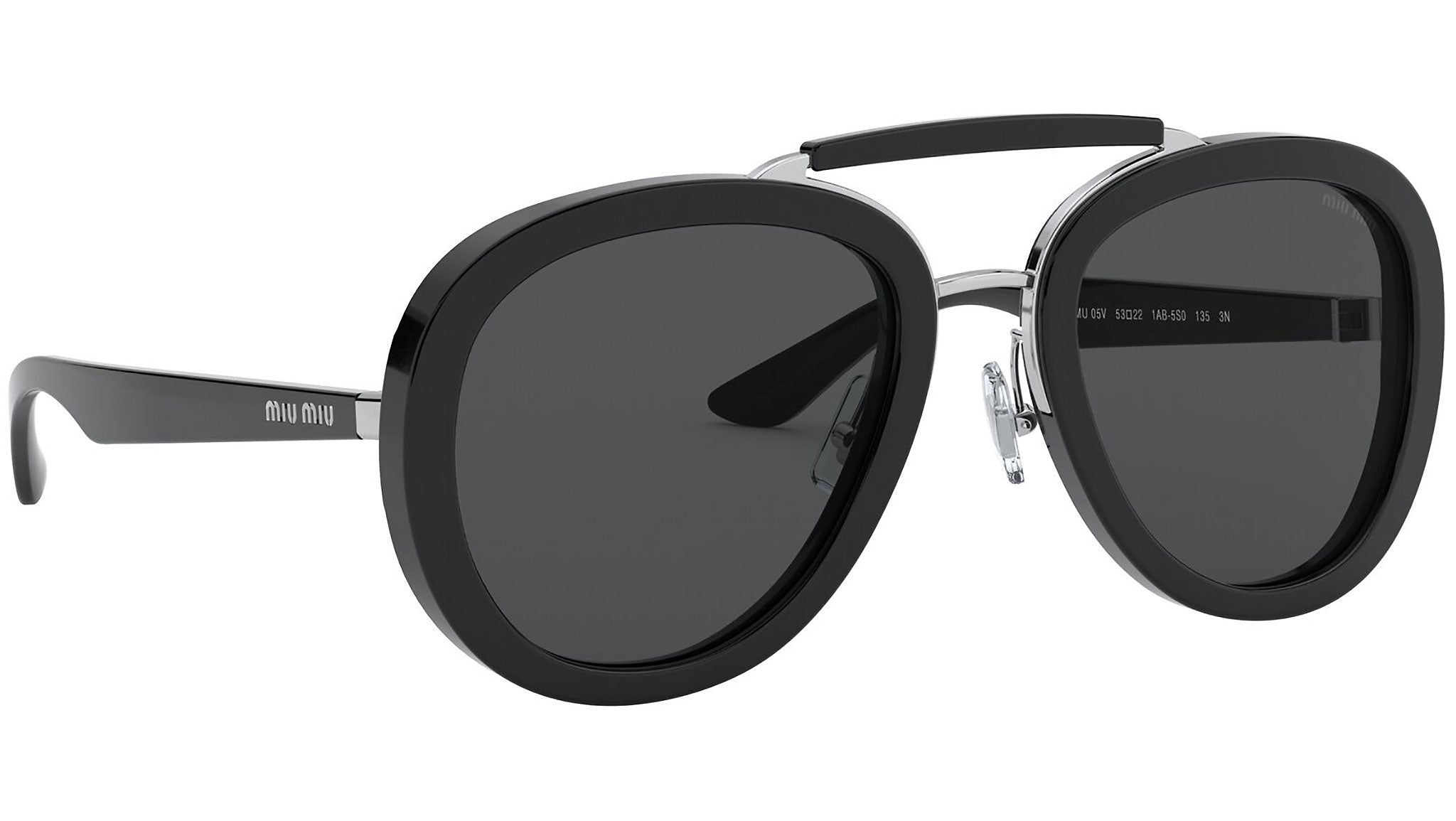 Occhiali da sole Miu Miu modello MU 05VS variante colore 1AB5S0 nero, con lenti color grigio. Miu Miu offre creazioni uniche, in cui la costante ricerca stilistica si combina perfettamente con la maestria artigianale della lavorazione. Le silhouette femminili e sinuose delle montature sono espressione di una ricchezza dei dettagli che rispecchia pienamente i codici stilistici e l’indiscusso talento del brand nell’unire il design non convenzionale ad un romanticismo dai rimandi retrò.