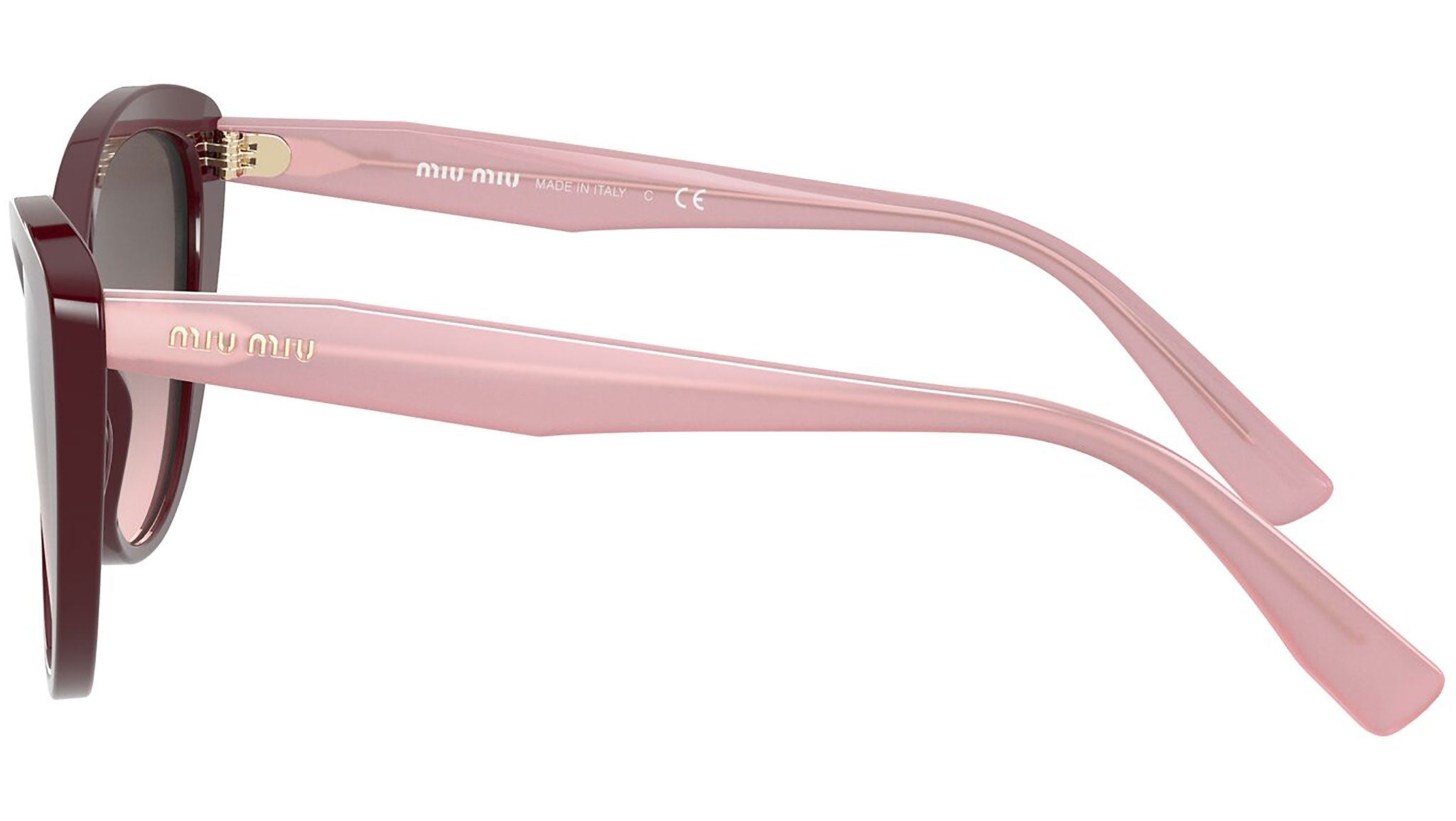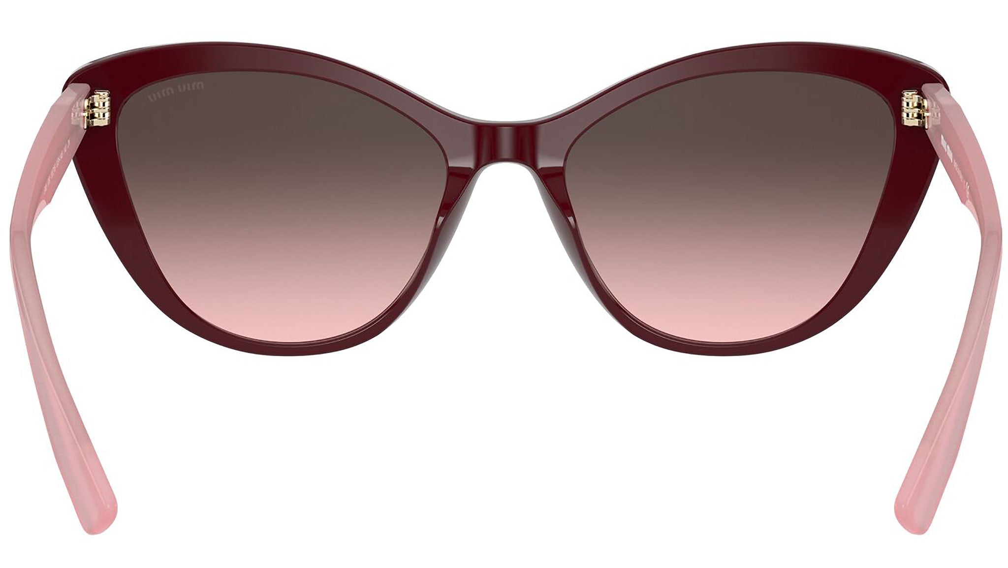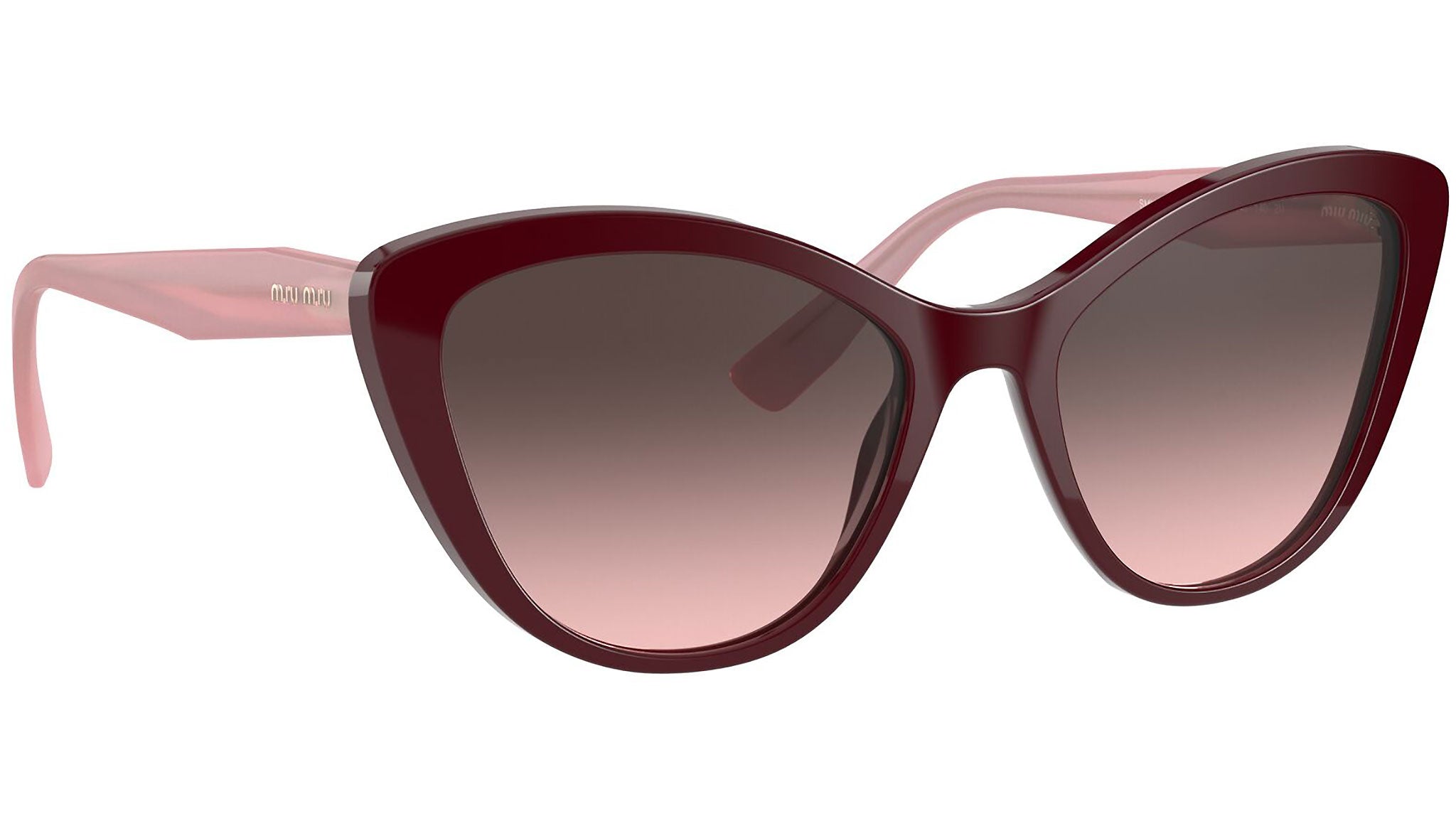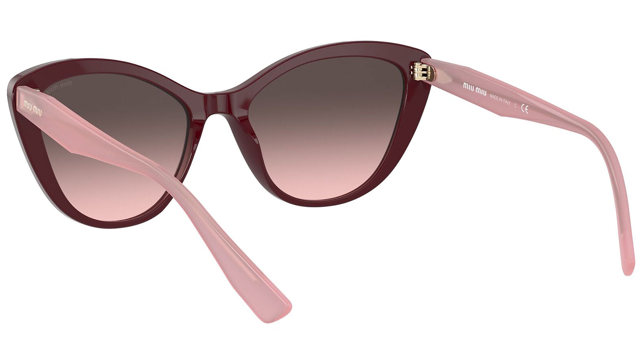 Occhiali da sole Miu Miu modello MU 05XS variante colore USH146 bordeaux, con lenti color rosa sfumato grigio. Miu Miu offre creazioni uniche, in cui la costante ricerca stilistica si combina perfettamente con la maestria artigianale della lavorazione. Le silhouette femminili e sinuose delle montature sono espressione di una ricchezza dei dettagli che rispecchia pienamente i codici stilistici e l’indiscusso talento del brand nell’unire il design non convenzionale ad un romanticismo dai rimandi retrò.