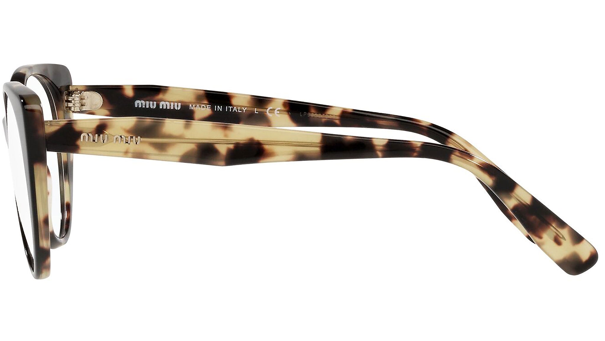 Occhiali da vista Miu Miu modello MU 06TV variante colore 3891O1 avana chiaro con top nero. Miu Miu offre creazioni uniche, in cui la costante ricerca stilistica si combina perfettamente con la maestria artigianale della lavorazione. Le silhouette femminili e sinuose delle montature sono espressione di una ricchezza dei dettagli che rispecchia pienamente i codici stilistici e l’indiscusso talento del brand nell’unire il design non convenzionale ad un romanticismo dai rimandi retrò.