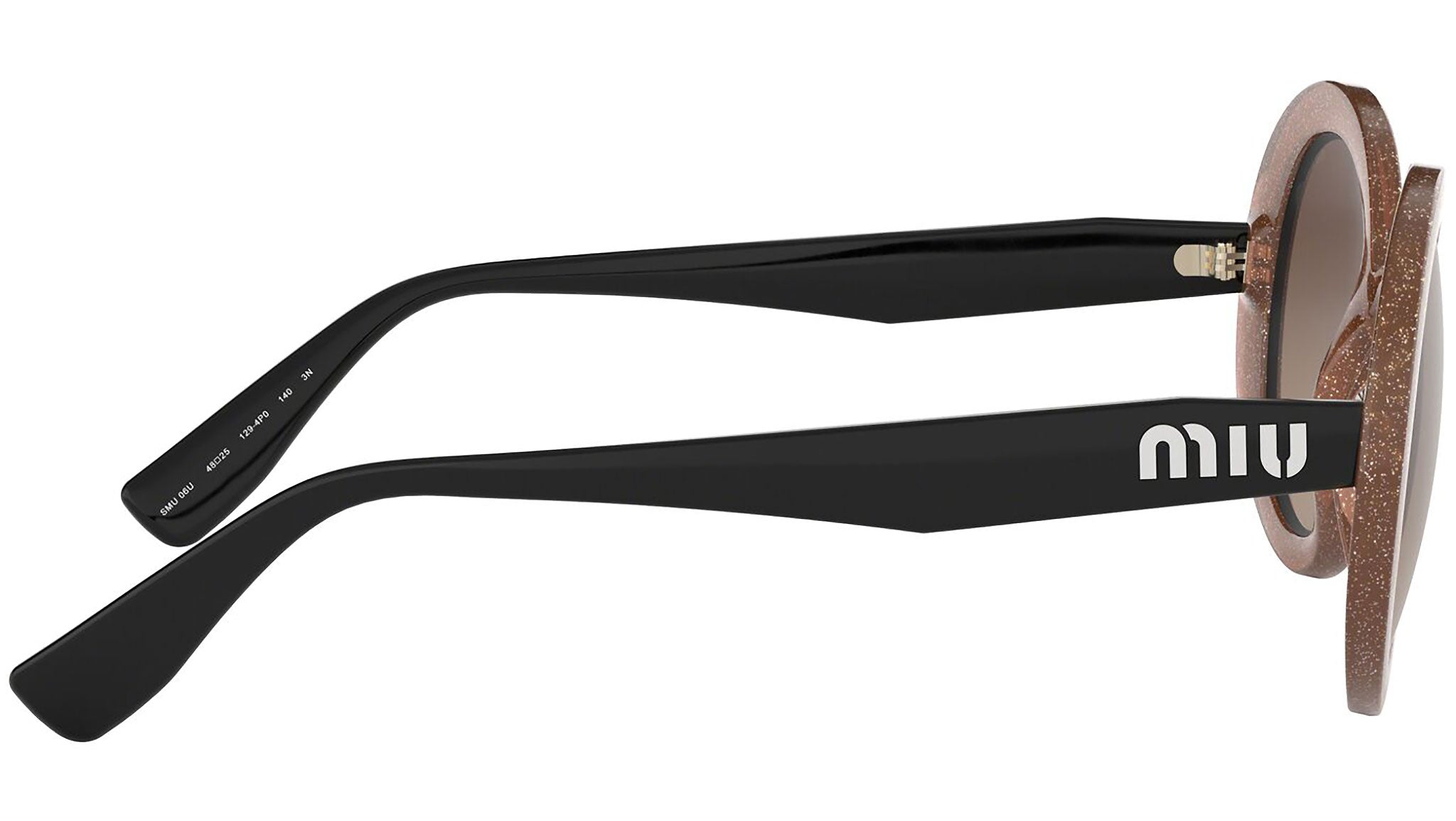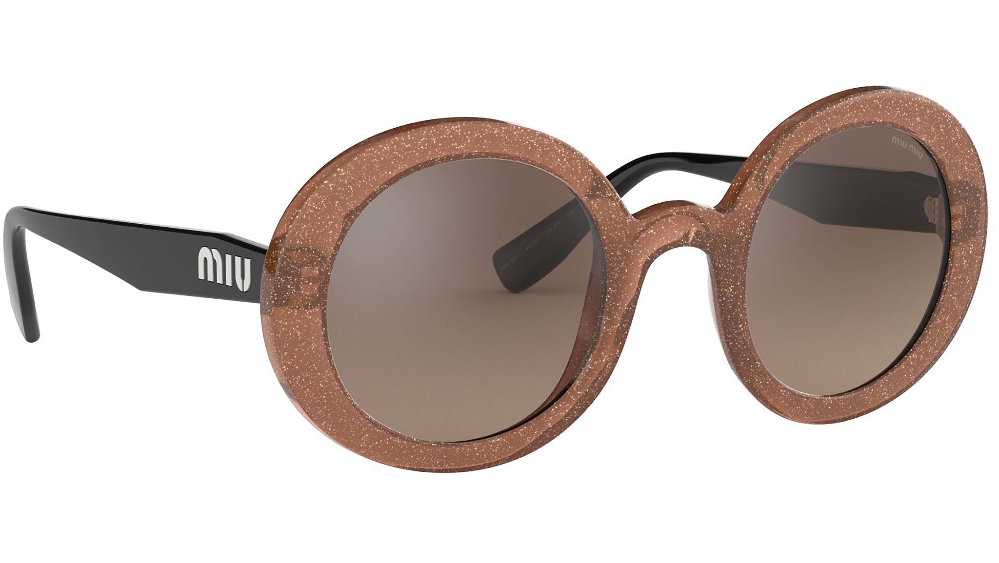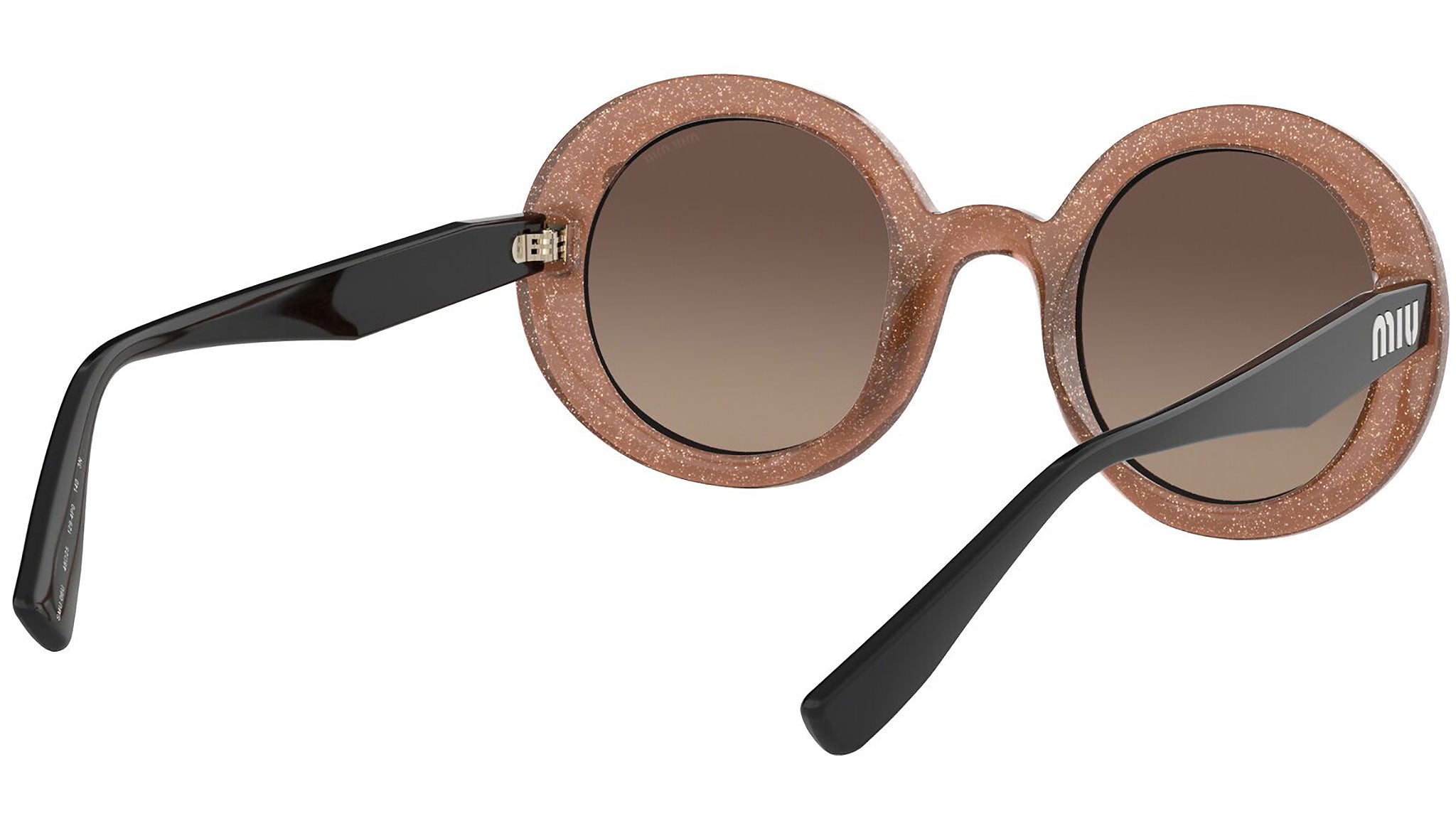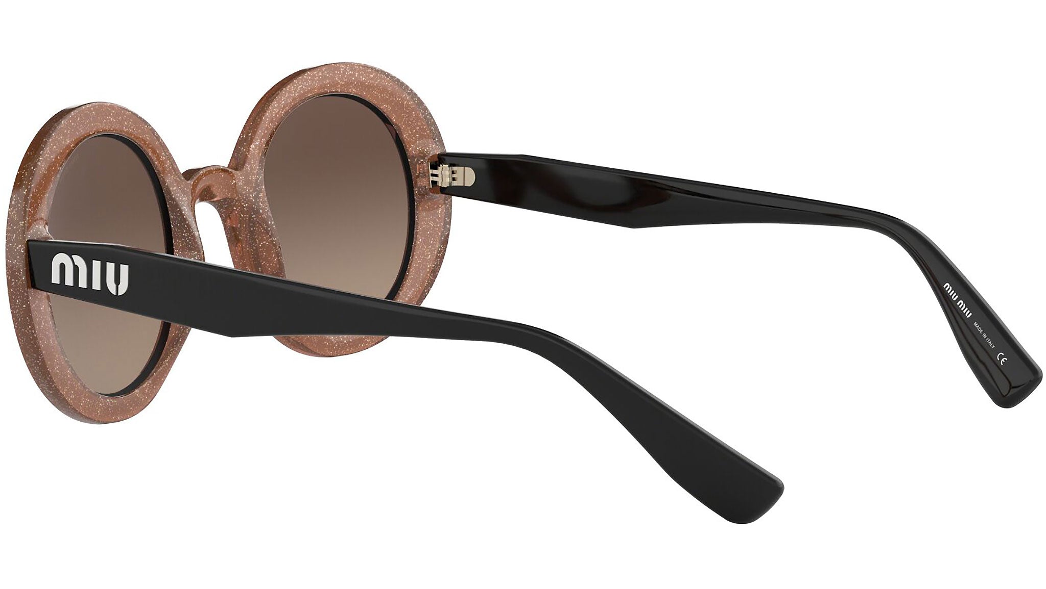 Occhiali da sole Miu Miu modello MU 06US variante colore 1294P0 beige cameo glitter trasparente, con lenti color marrone a specchio grigio argento. Miu Miu offre creazioni uniche, in cui la costante ricerca stilistica si combina perfettamente con la maestria artigianale della lavorazione. Le silhouette femminili e sinuose delle montature sono espressione di una ricchezza dei dettagli che rispecchia pienamente i codici stilistici e l’indiscusso talento del brand nell’unire il design non convenzionale ad un romanticismo dai rimandi retrò.