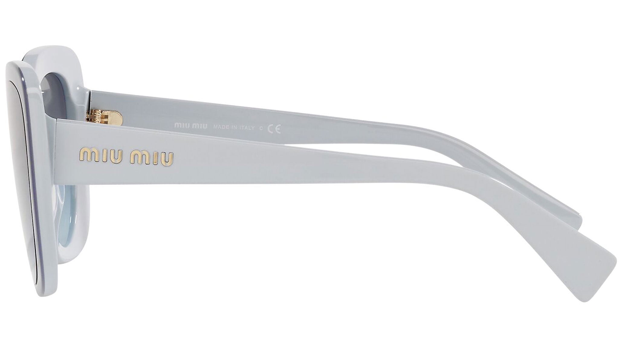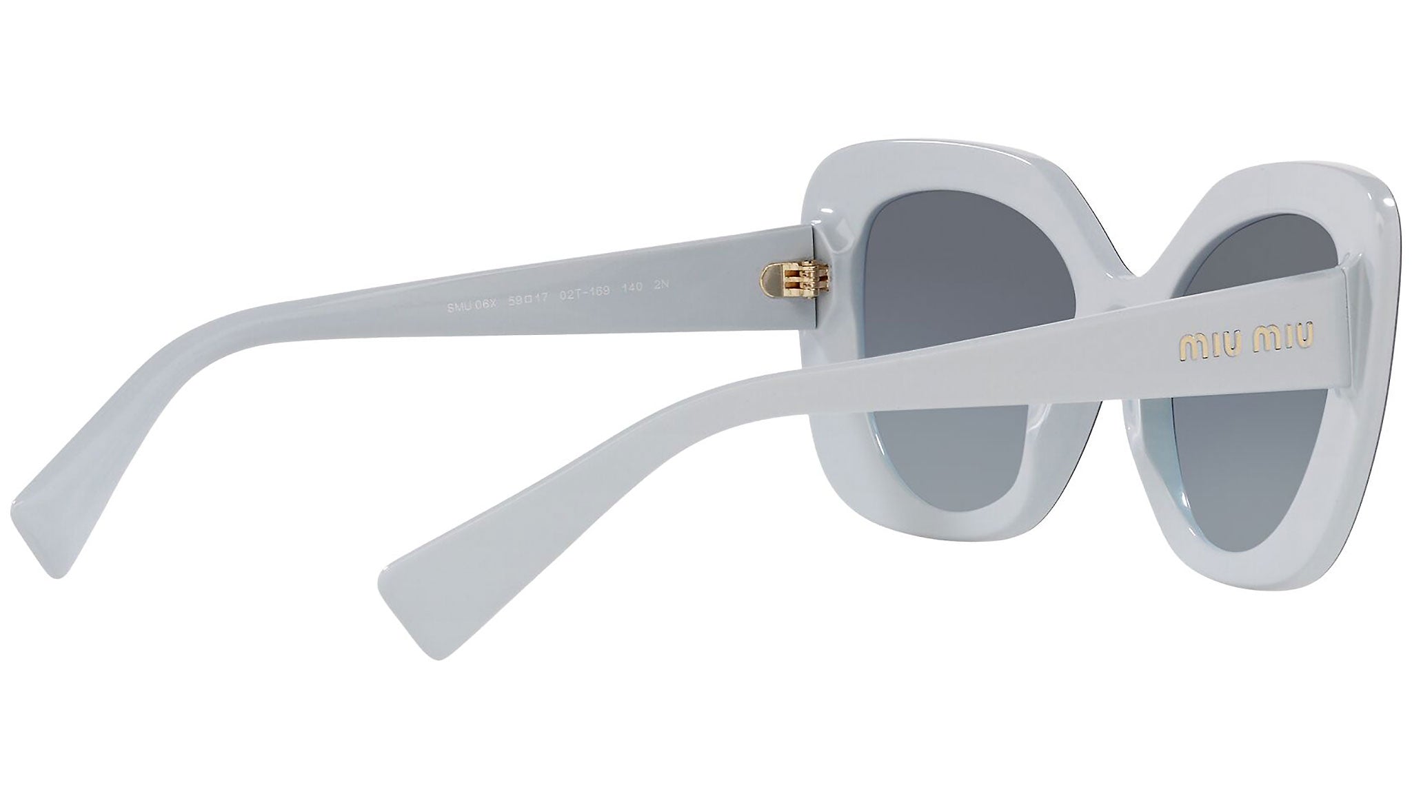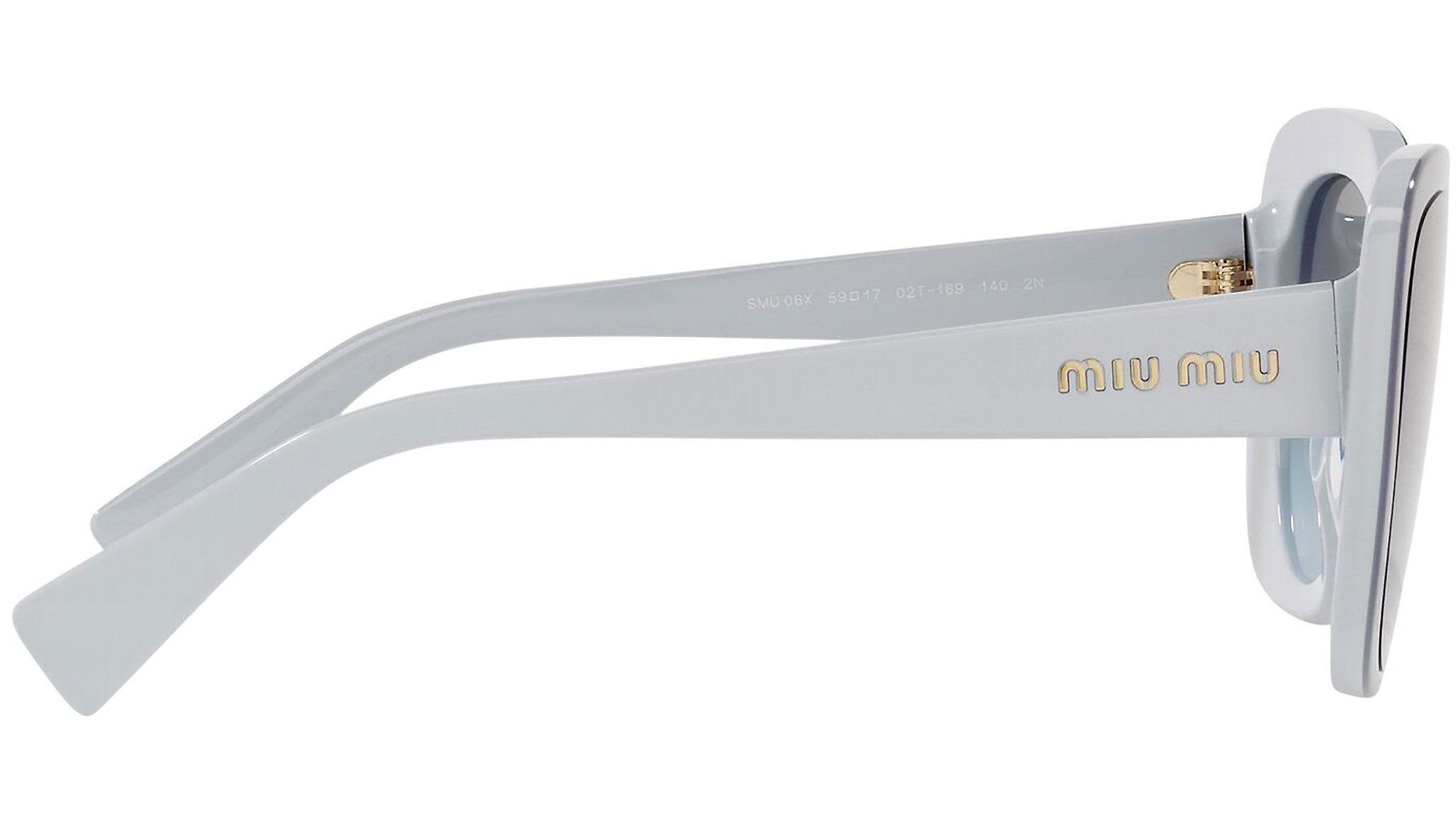 Occhiali da sole Miu Miu modello MU 06XS variante colore 02T169 azzurro, con lenti color blu flash sfumato argento. Miu Miu offre creazioni uniche, in cui la costante ricerca stilistica si combina perfettamente con la maestria artigianale della lavorazione. Le silhouette femminili e sinuose delle montature sono espressione di una ricchezza dei dettagli che rispecchia pienamente i codici stilistici e l’indiscusso talento del brand nell’unire il design non convenzionale ad un romanticismo dai rimandi retrò.