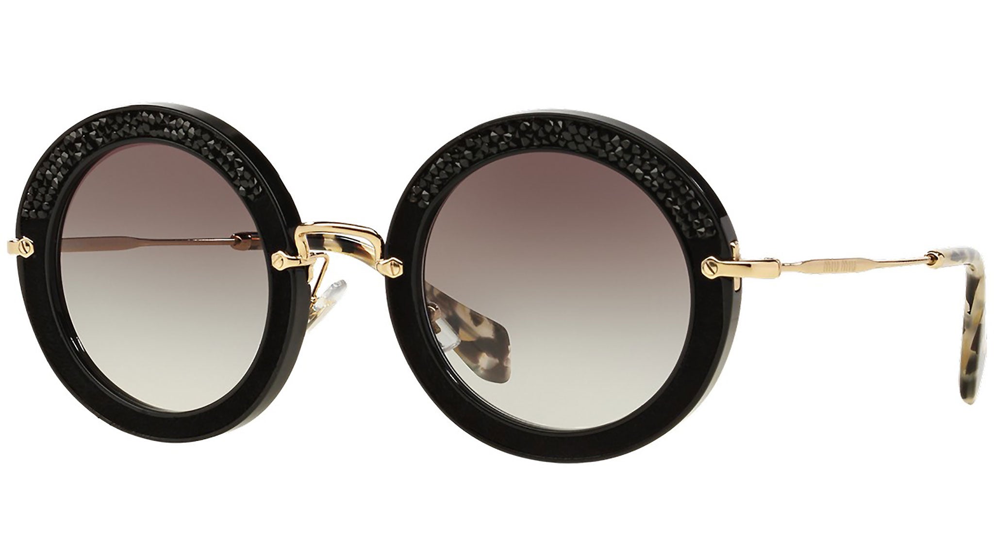 Occhiali da sole Miu Miu modello MU 08RS codice colore 1AB0A7 con montatura color nero e oro in acetato e lenti color grigio sfumato. Miu Miu offre creazioni uniche, in cui la costante ricerca stilistica si combina perfettamente con la maestria artigianale della lavorazione. Le silhouette femminili e sinuose delle montature sono espressione di una ricchezza dei dettagli che rispecchia pienamente i codici stilistici e l’indiscusso talento del brand nell’unire il design non convenzionale ad un romanticismo dai rimandi retrò.