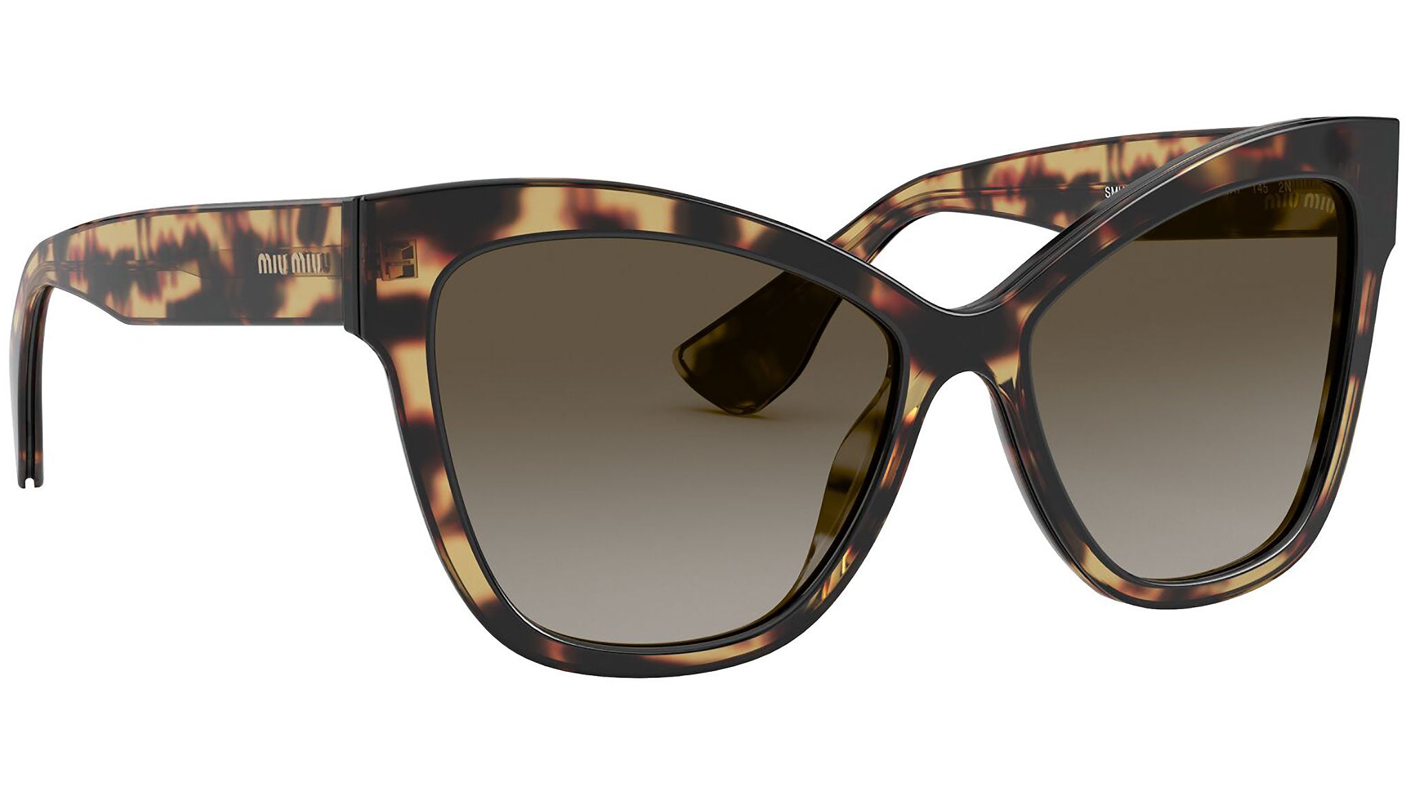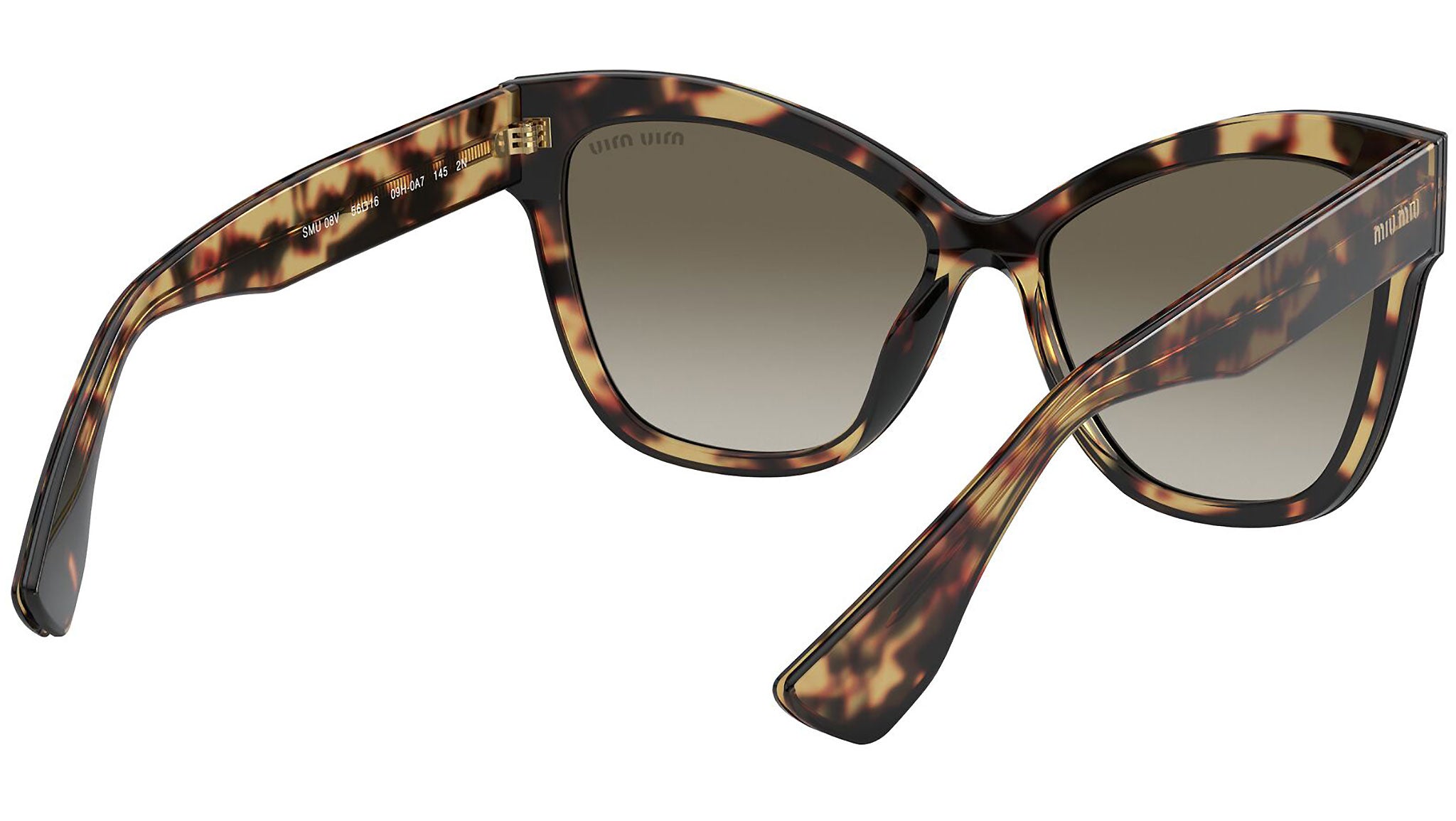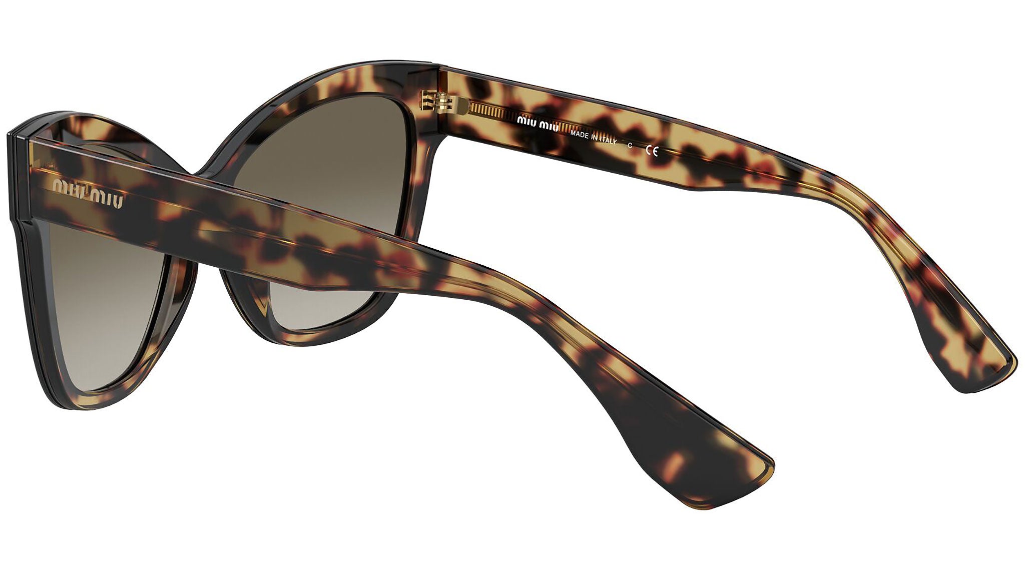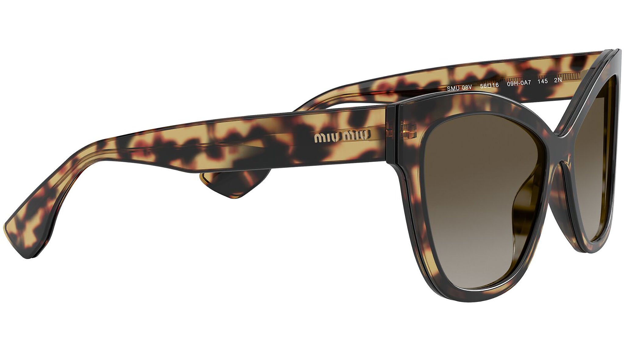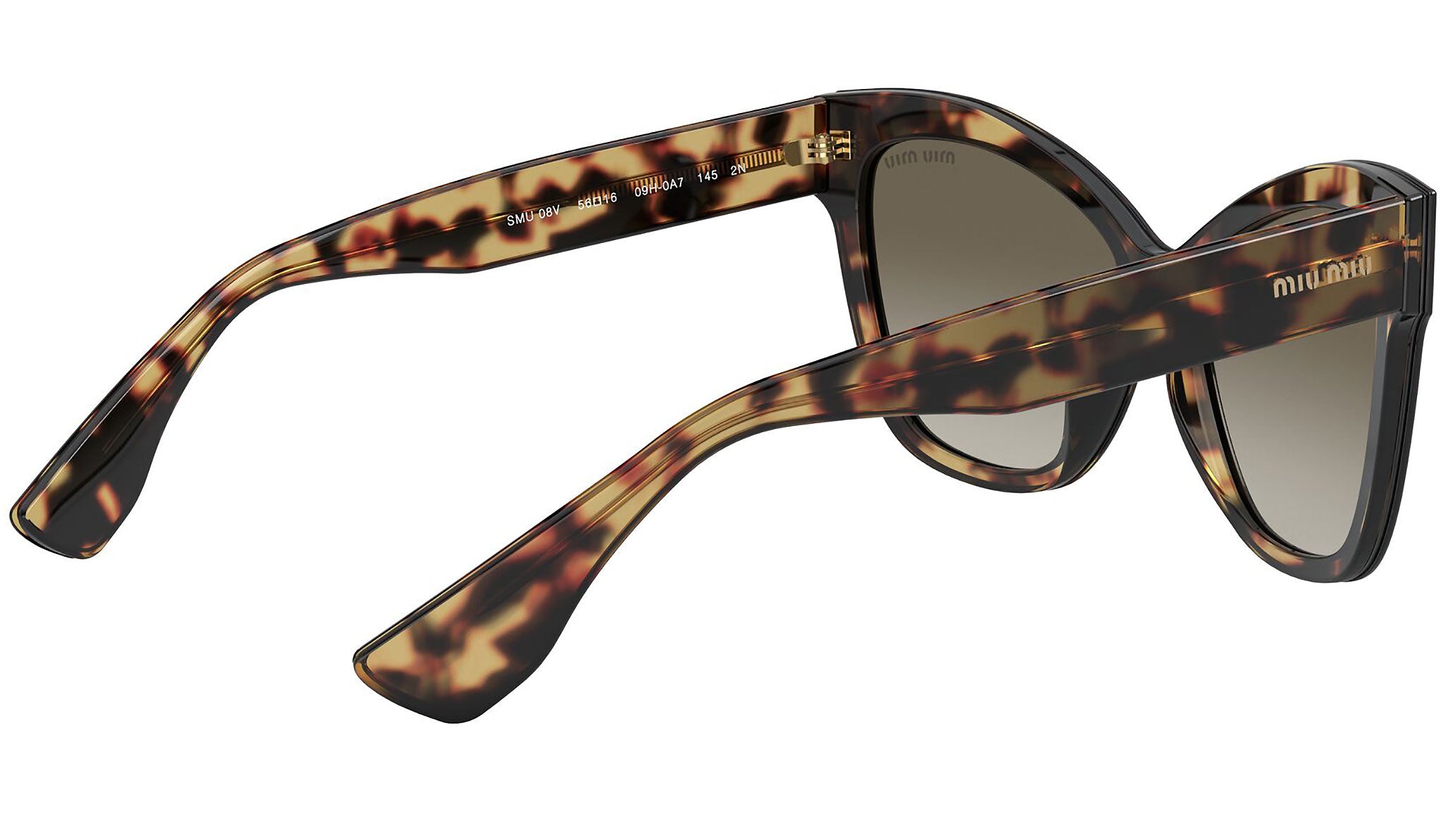 Occhiali da sole Miu Miu modello MU 08VS variante colore 09H0A7 avana, con lenti color grigio sfumato. Miu Miu offre creazioni uniche, in cui la costante ricerca stilistica si combina perfettamente con la maestria artigianale della lavorazione. Le silhouette femminili e sinuose delle montature sono espressione di una ricchezza dei dettagli che rispecchia pienamente i codici stilistici e l’indiscusso talento del brand nell’unire il design non convenzionale ad un romanticismo dai rimandi retrò.