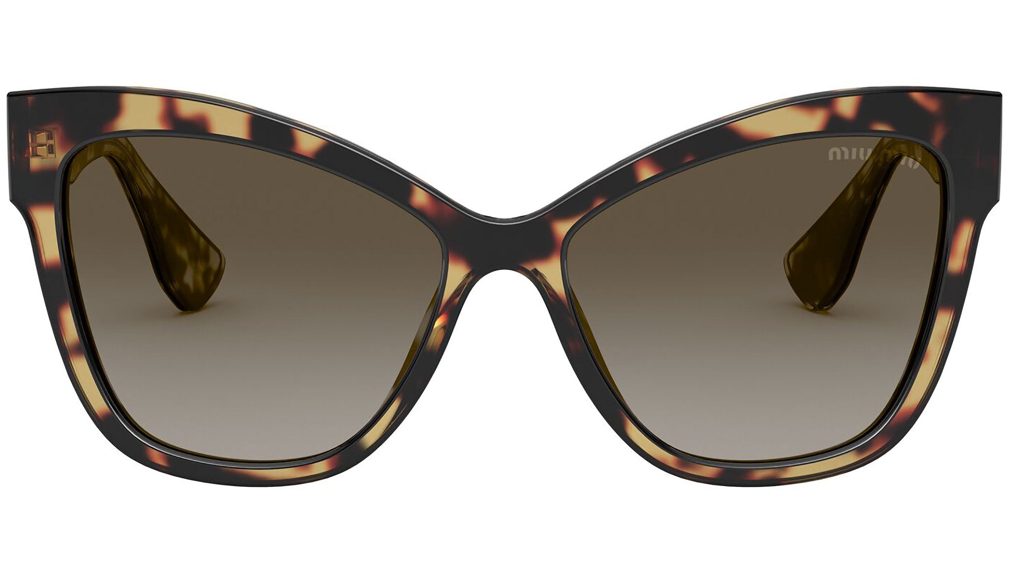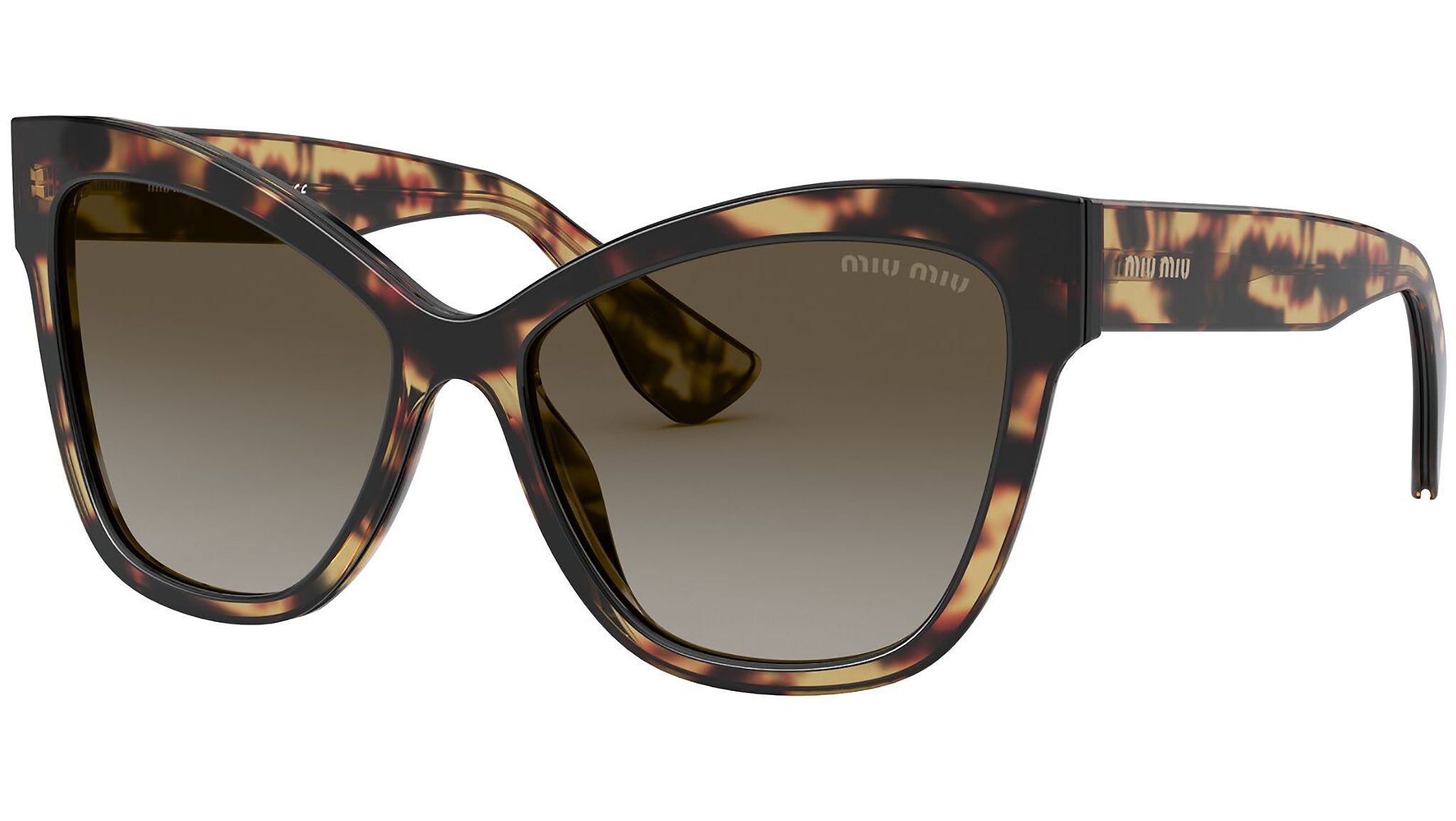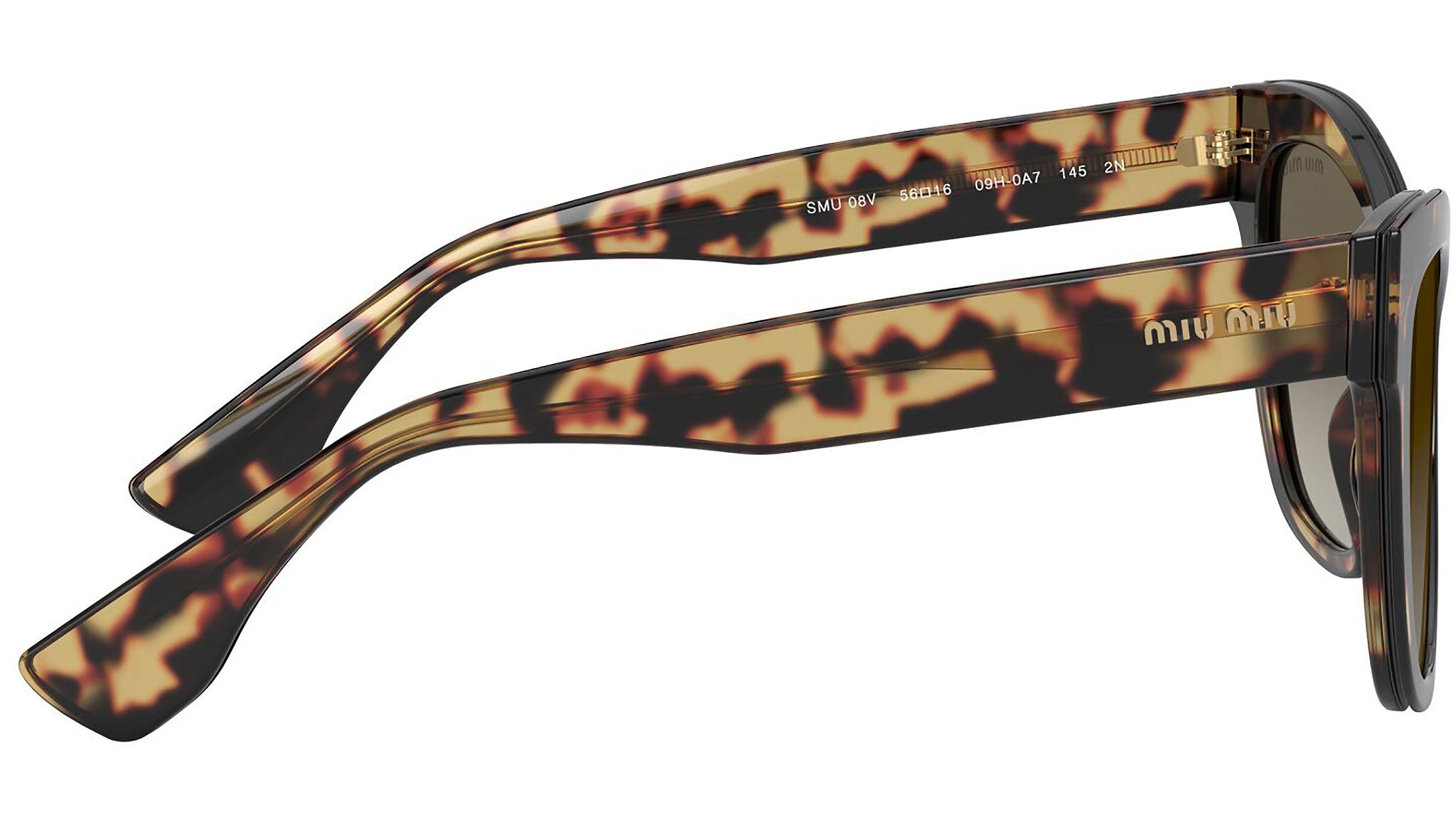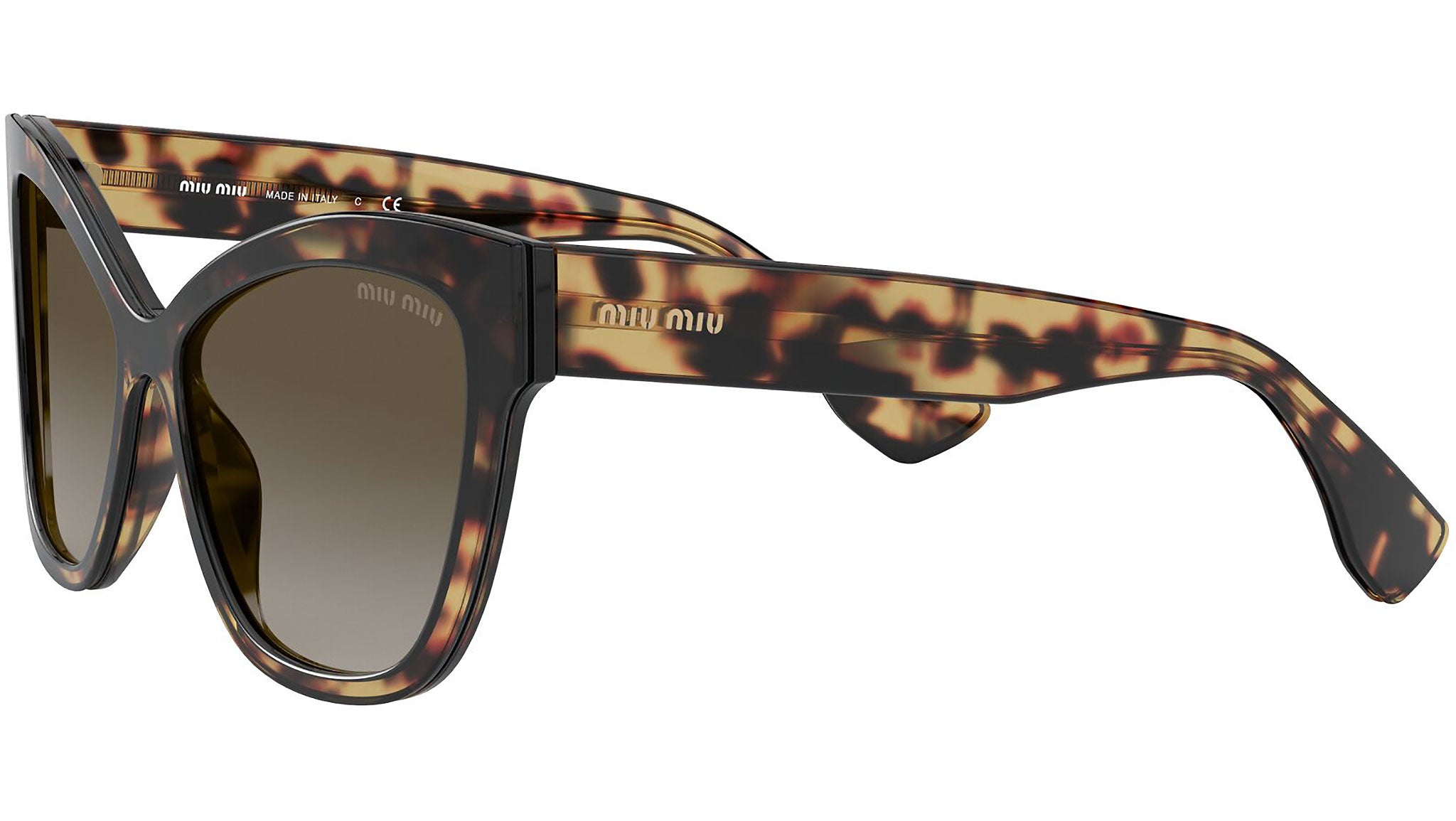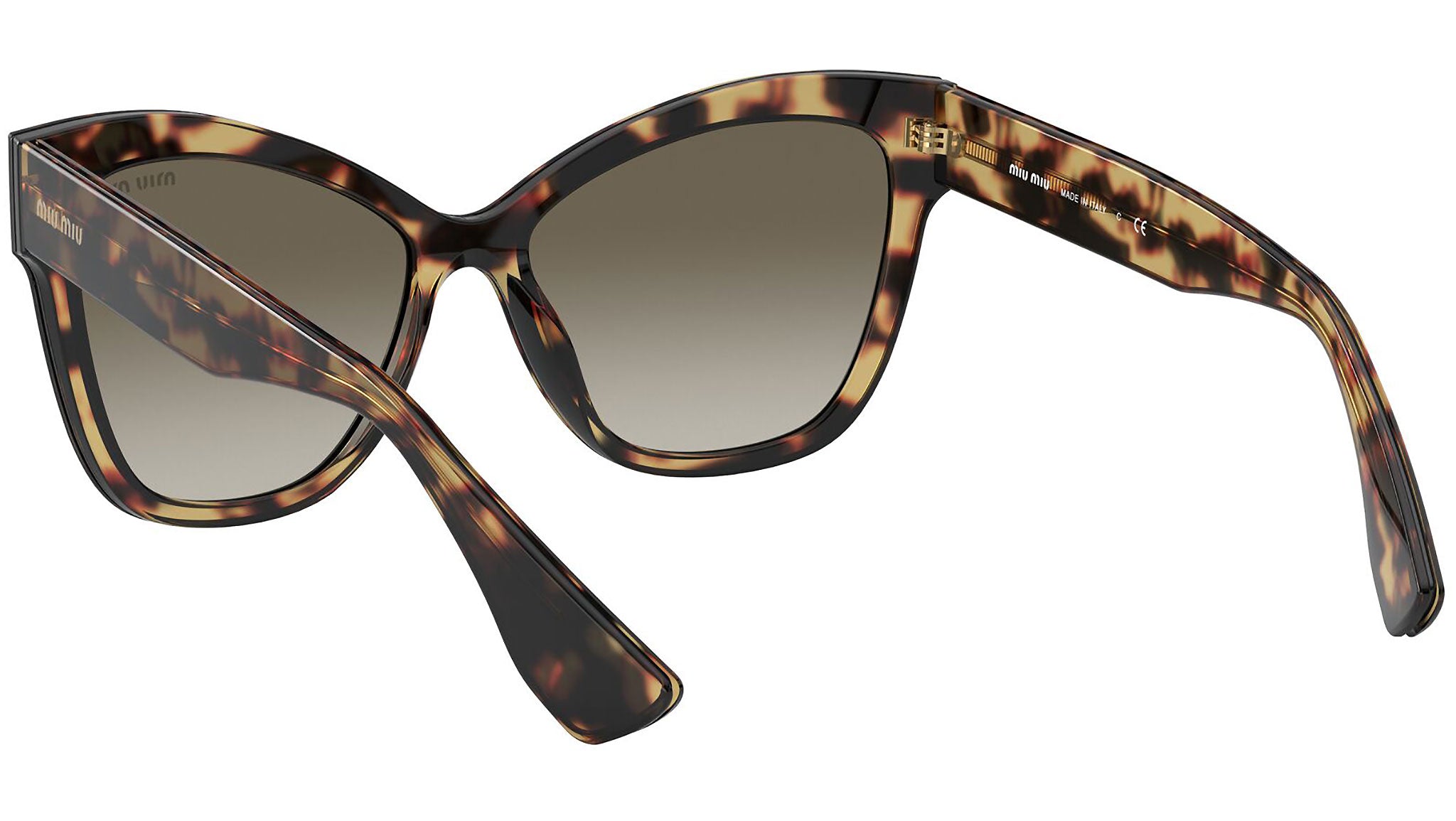 Occhiali da sole Miu Miu modello MU 08VS variante colore 09H0A7 avana, con lenti color grigio sfumato. Miu Miu offre creazioni uniche, in cui la costante ricerca stilistica si combina perfettamente con la maestria artigianale della lavorazione. Le silhouette femminili e sinuose delle montature sono espressione di una ricchezza dei dettagli che rispecchia pienamente i codici stilistici e l’indiscusso talento del brand nell’unire il design non convenzionale ad un romanticismo dai rimandi retrò.
