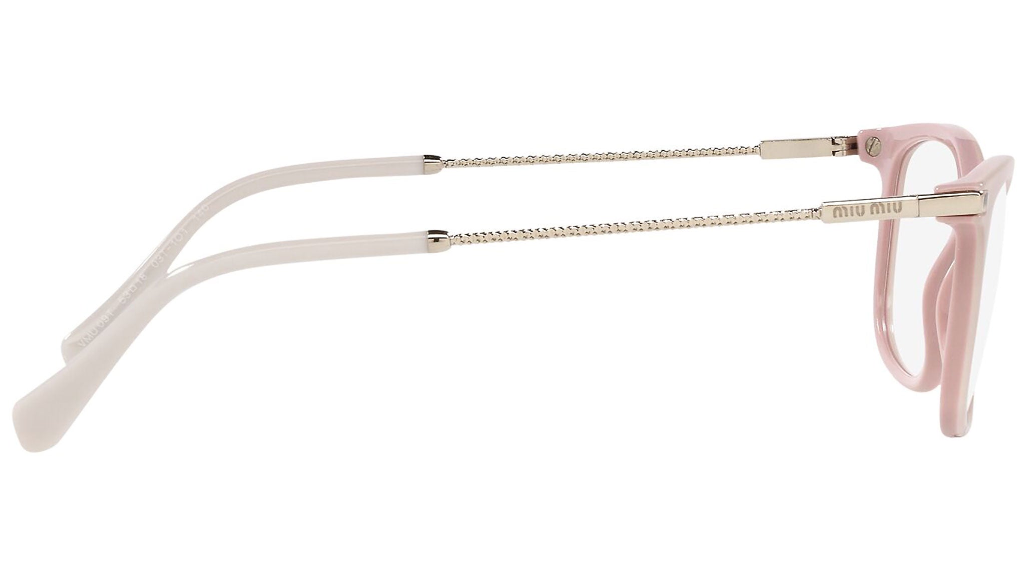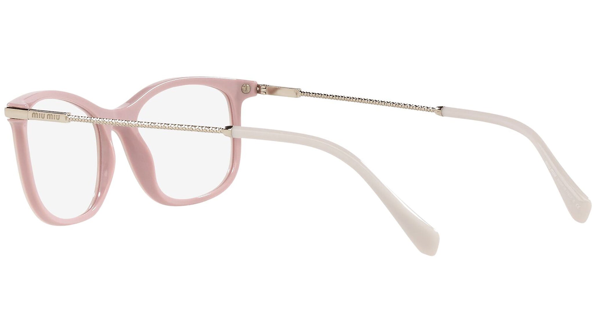 Occhiali da vista Miu Miu modello MU 09TV variante colore 03T1O1 rosa con top trasparente. Miu Miu offre creazioni uniche, in cui la costante ricerca stilistica si combina perfettamente con la maestria artigianale della lavorazione. Le silhouette femminili e sinuose delle montature sono espressione di una ricchezza dei dettagli che rispecchia pienamente i codici stilistici e l’indiscusso talento del brand nell’unire il design non convenzionale ad un romanticismo dai rimandi retrò.