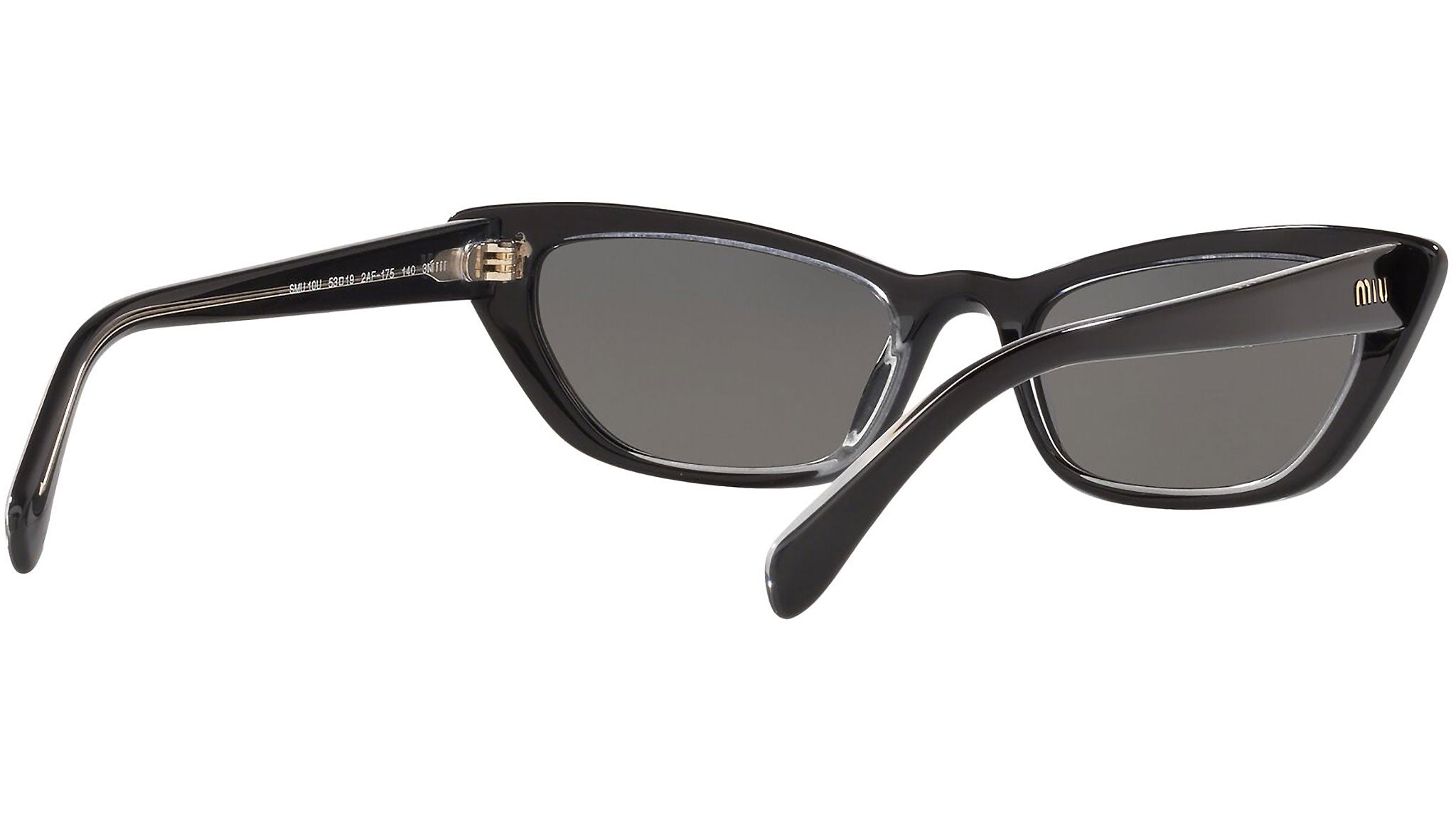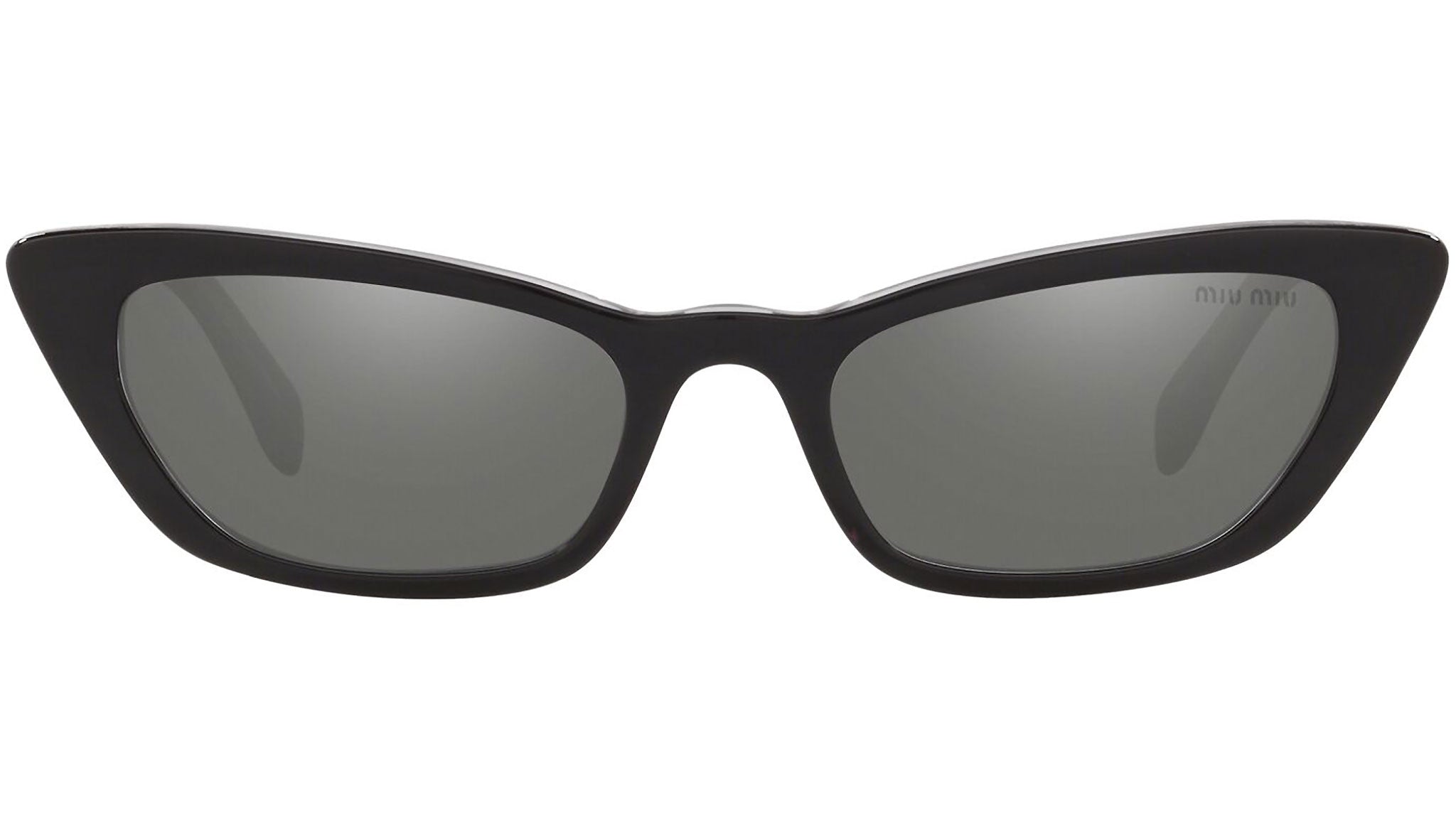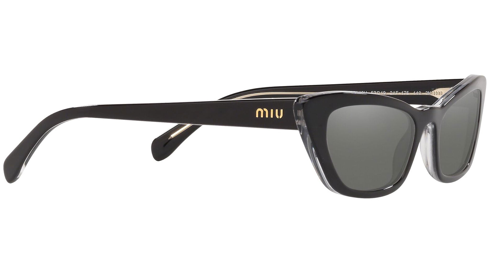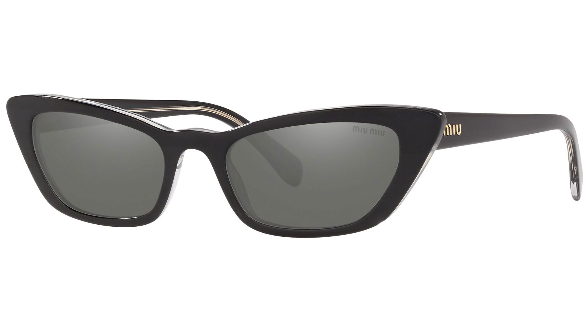 Occhiali da sole Miu Miu modello MU 10US variante colore 2AF175 top nero su trasparente, con lenti color grigio scuro flash argento. Miu Miu offre creazioni uniche, in cui la costante ricerca stilistica si combina perfettamente con la maestria artigianale della lavorazione. Le silhouette femminili e sinuose delle montature sono espressione di una ricchezza dei dettagli che rispecchia pienamente i codici stilistici e l’indiscusso talento del brand nell’unire il design non convenzionale ad un romanticismo dai rimandi retrò.