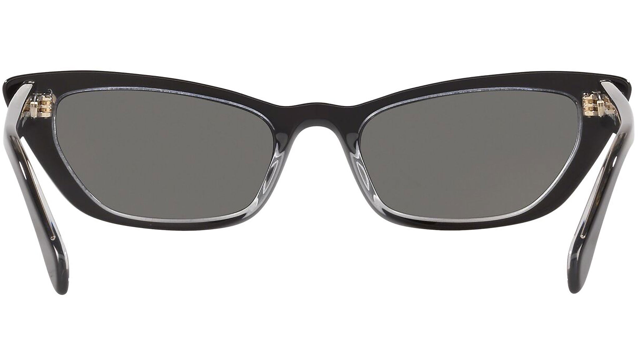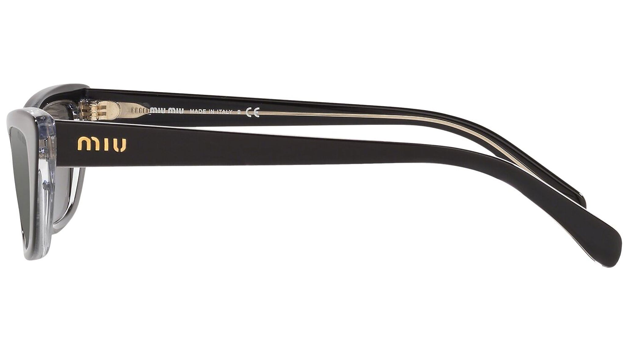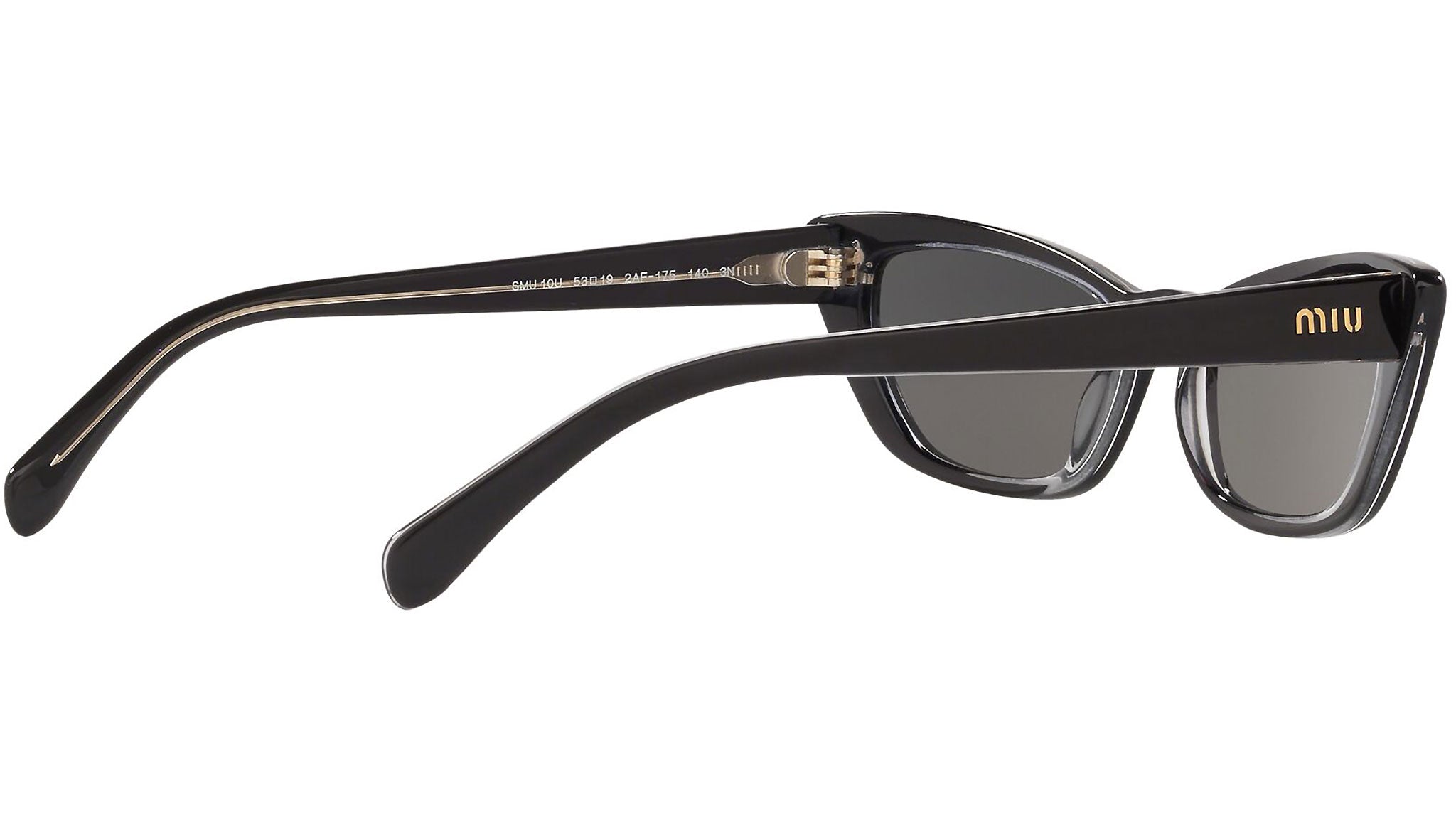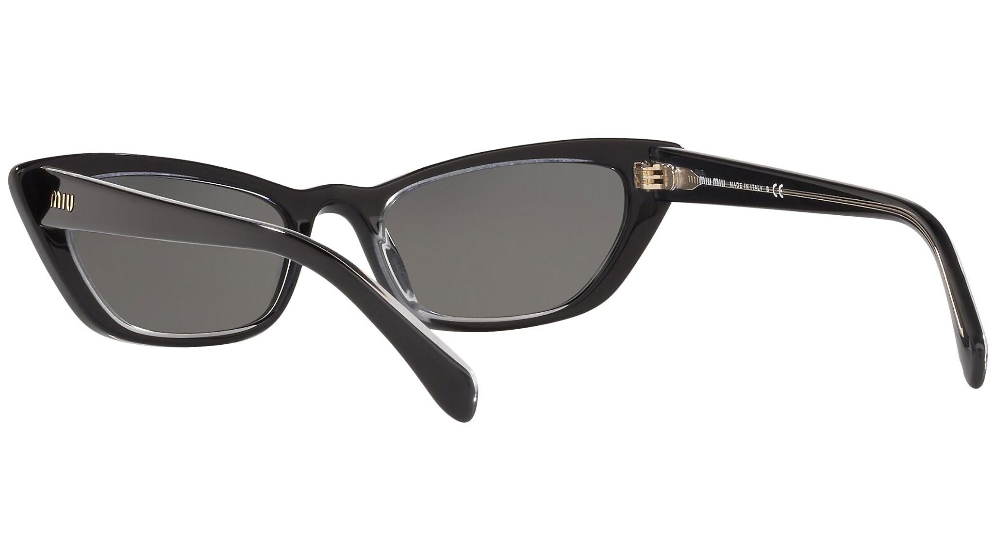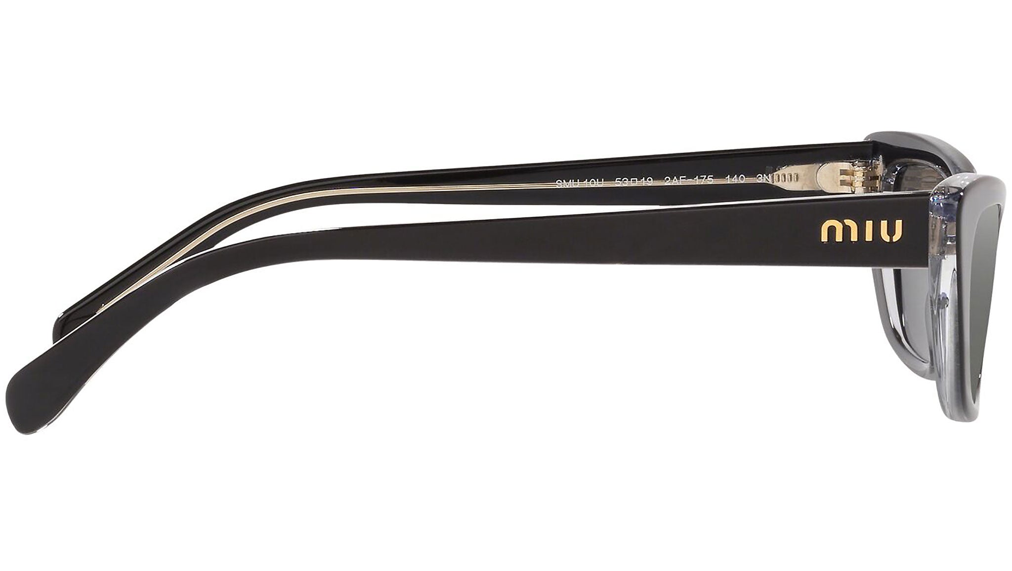 Occhiali da sole Miu Miu modello MU 10US variante colore 2AF175 top nero su trasparente, con lenti color grigio scuro flash argento. Miu Miu offre creazioni uniche, in cui la costante ricerca stilistica si combina perfettamente con la maestria artigianale della lavorazione. Le silhouette femminili e sinuose delle montature sono espressione di una ricchezza dei dettagli che rispecchia pienamente i codici stilistici e l’indiscusso talento del brand nell’unire il design non convenzionale ad un romanticismo dai rimandi retrò.