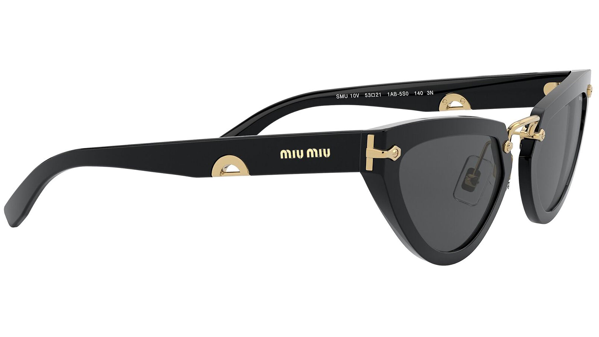Occhiali da sole Miu Miu modello MU 10VS variante colore 1AB5S0 nero, con lenti color grigio scuro. Miu Miu offre creazioni uniche, in cui la costante ricerca stilistica si combina perfettamente con la maestria artigianale della lavorazione. Le silhouette femminili e sinuose delle montature sono espressione di una ricchezza dei dettagli che rispecchia pienamente i codici stilistici e l’indiscusso talento del brand nell’unire il design non convenzionale ad un romanticismo dai rimandi retrò.