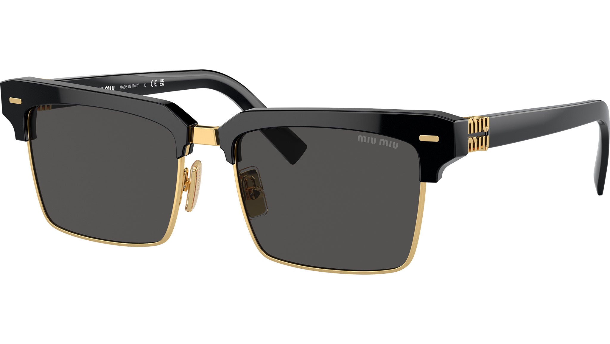 Occhiali da sole Miu Miu modello 10ZS codice colore 1AB5S0 con montatura in acetato color nero e lenti in poliammide color grigio scuro. Miu Miu offre creazioni uniche, in cui la costante ricerca stilistica si combina perfettamente con la maestria artigianale della lavorazione. Le silhouette femminili e sinuose delle montature sono espressione di una ricchezza dei dettagli che rispecchia pienamente i codici stilistici e l’indiscusso talento del brand nell’unire il design non convenzionale ad un romanticismo dai rimandi retrò. - Rivenditore autorizzato Miu Miu online. Il prodotto viene consegnato completo di confezione e accessori originali ed è coperto dalla garanzia globale del produttore di 12 mesi.