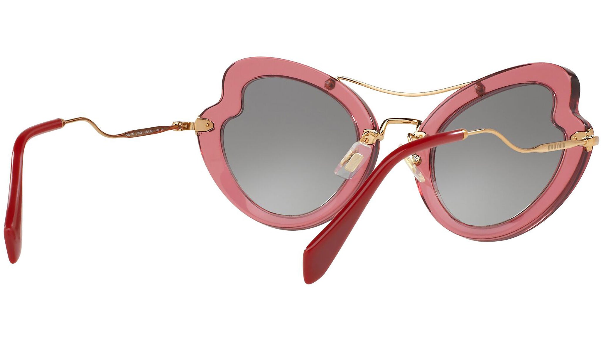 Occhiali da sole Miu Miu modello MU 11RS variante colore USU3M1 bordeaux, con lenti color grigio sfumato. Miu Miu offre creazioni uniche, in cui la costante ricerca stilistica si combina perfettamente con la maestria artigianale della lavorazione. Le silhouette femminili e sinuose delle montature sono espressione di una ricchezza dei dettagli che rispecchia pienamente i codici stilistici e l’indiscusso talento del brand nell’unire il design non convenzionale ad un romanticismo dai rimandi retrò.