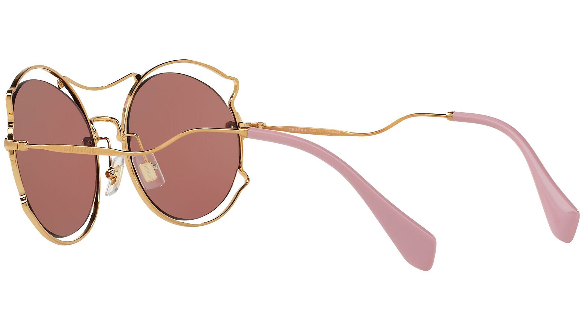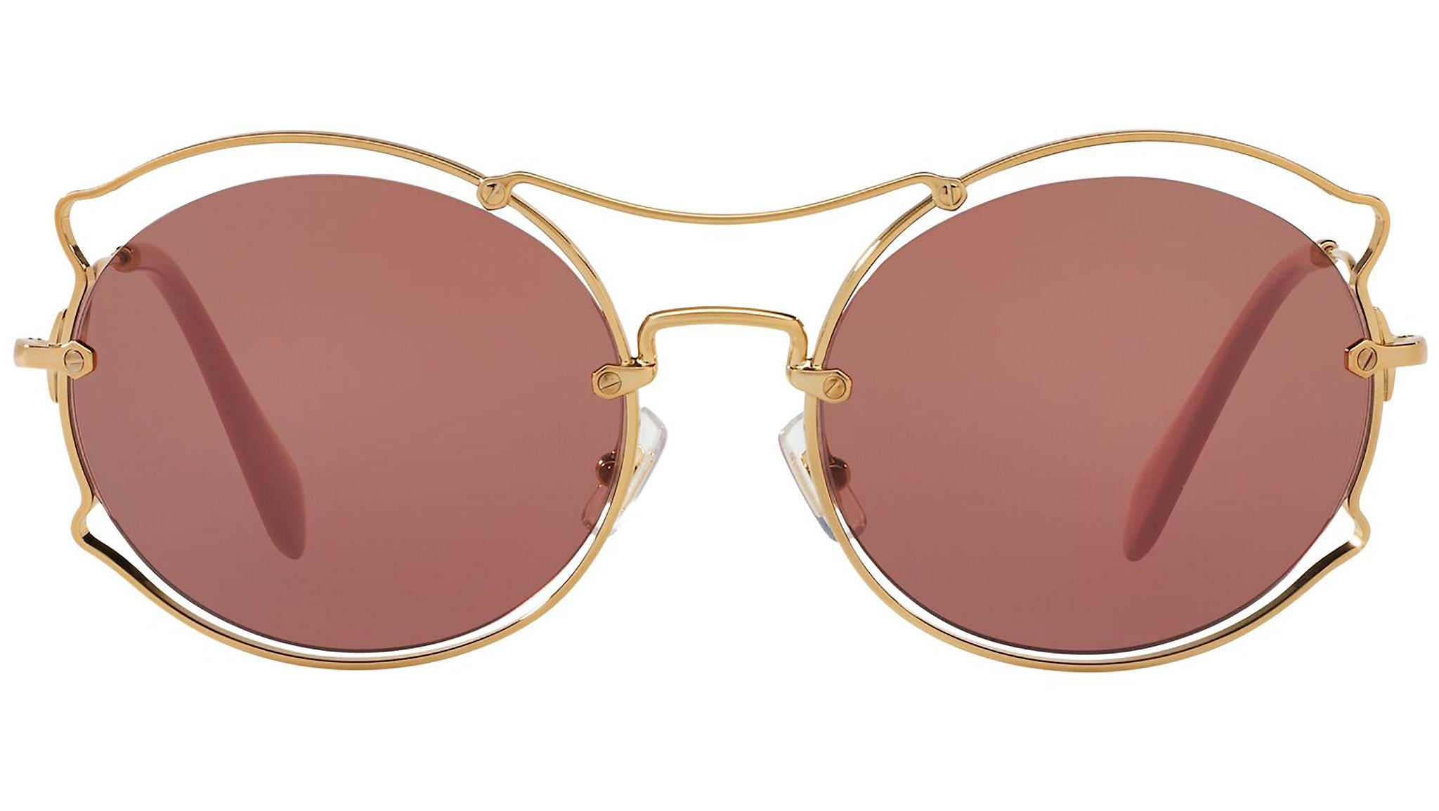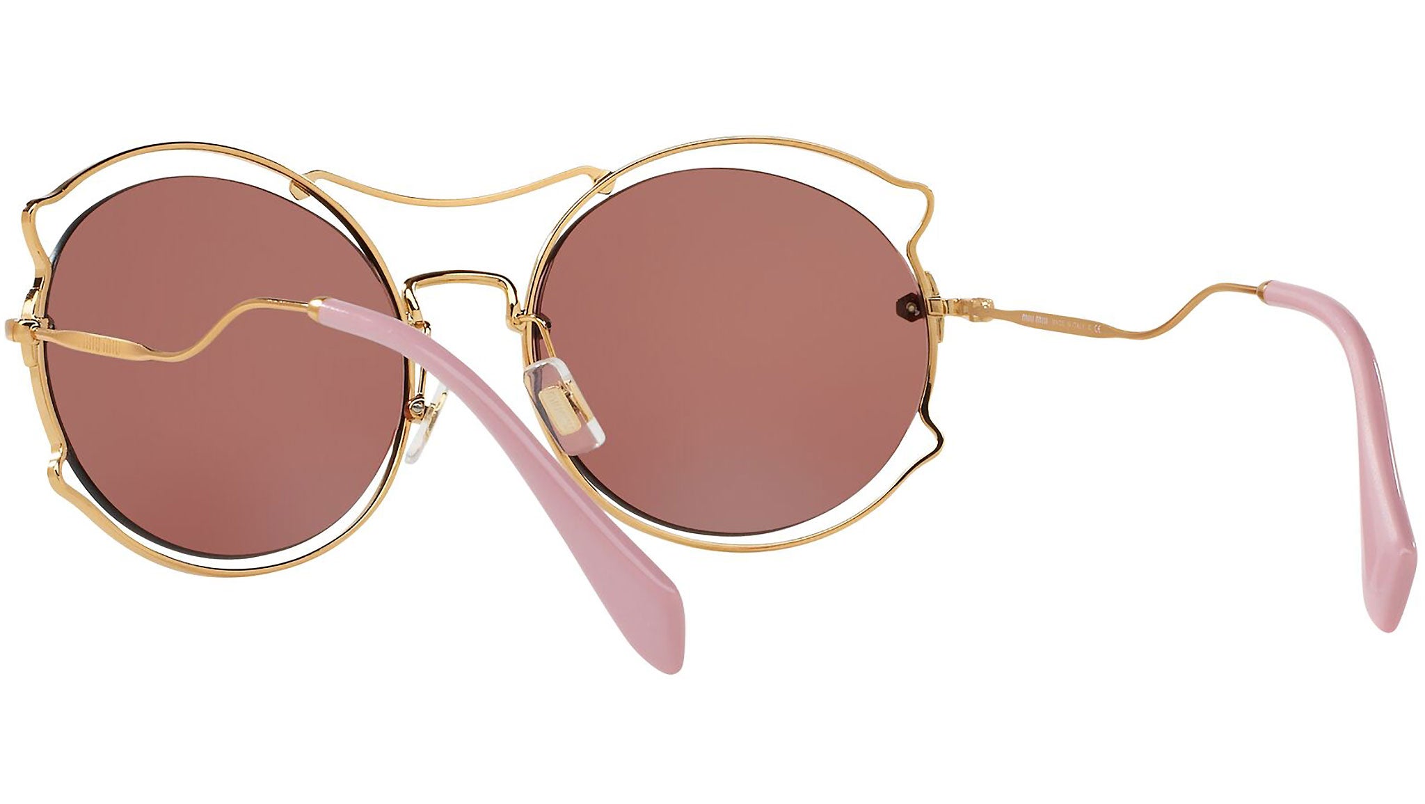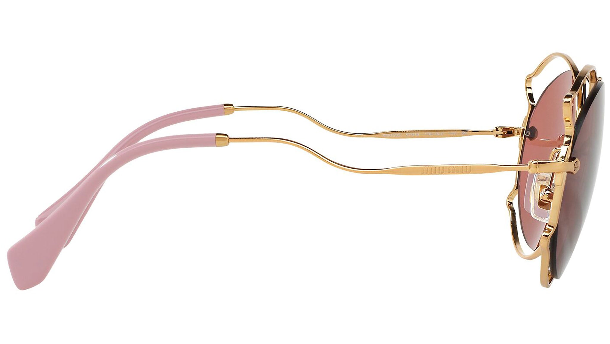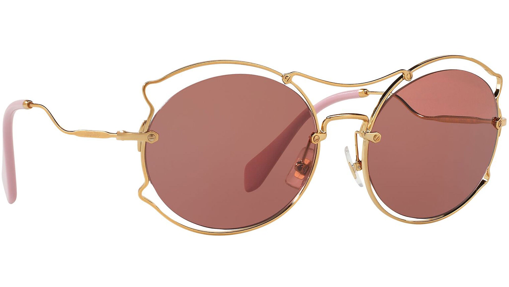 Occhiali da sole Miu Miu modello MU 50SS variante colore 7OE0A0 oro anticato, con lenti color viola scuro. Miu Miu offre creazioni uniche, in cui la costante ricerca stilistica si combina perfettamente con la maestria artigianale della lavorazione. Le silhouette femminili e sinuose delle montature sono espressione di una ricchezza dei dettagli che rispecchia pienamente i codici stilistici e l’indiscusso talento del brand nell’unire il design non convenzionale ad un romanticismo dai rimandi retrò.