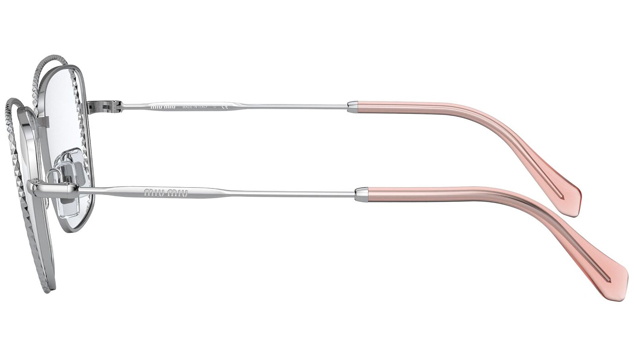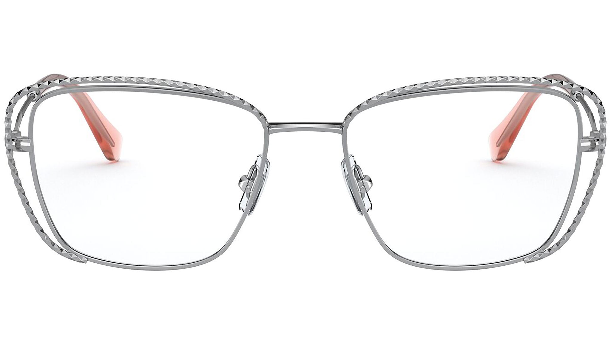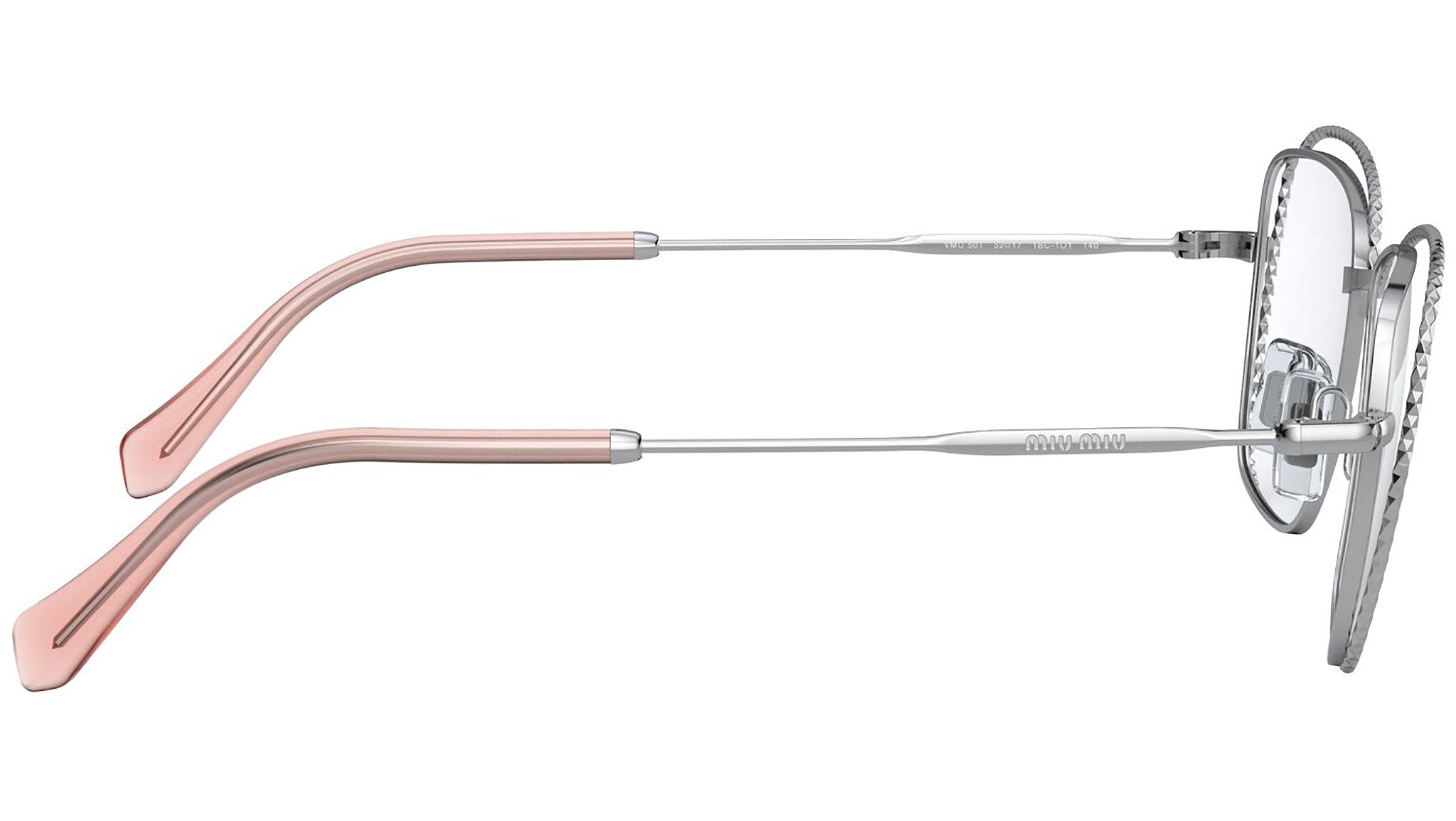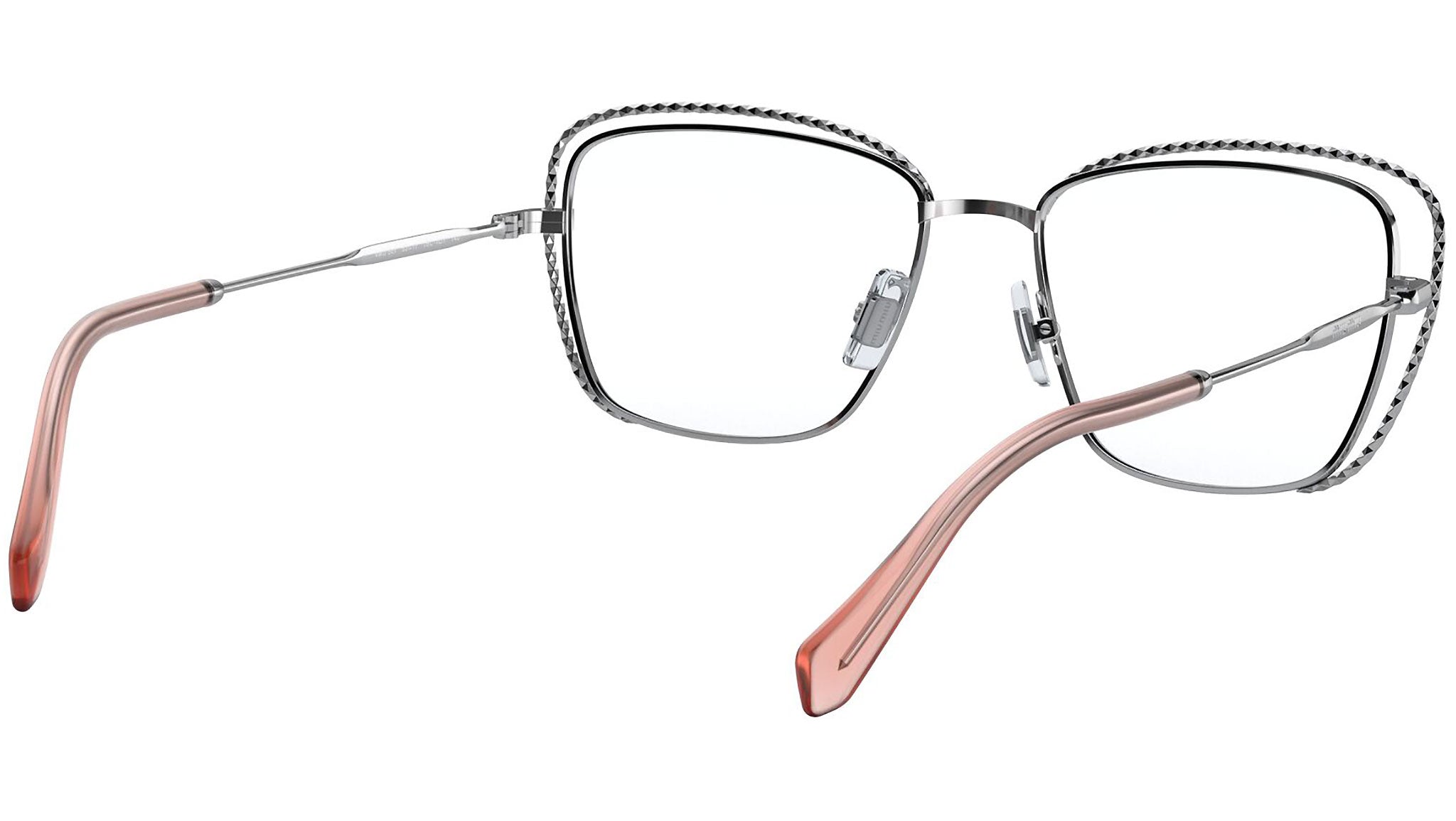 Occhiali da vista Miu Miu modello MU 50TV variante colore 1BC1O1 argento. Miu Miu offre creazioni uniche, in cui la costante ricerca stilistica si combina perfettamente con la maestria artigianale della lavorazione. Le silhouette femminili e sinuose delle montature sono espressione di una ricchezza dei dettagli che rispecchia pienamente i codici stilistici e l’indiscusso talento del brand nell’unire il design non convenzionale ad un romanticismo dai rimandi retrò.