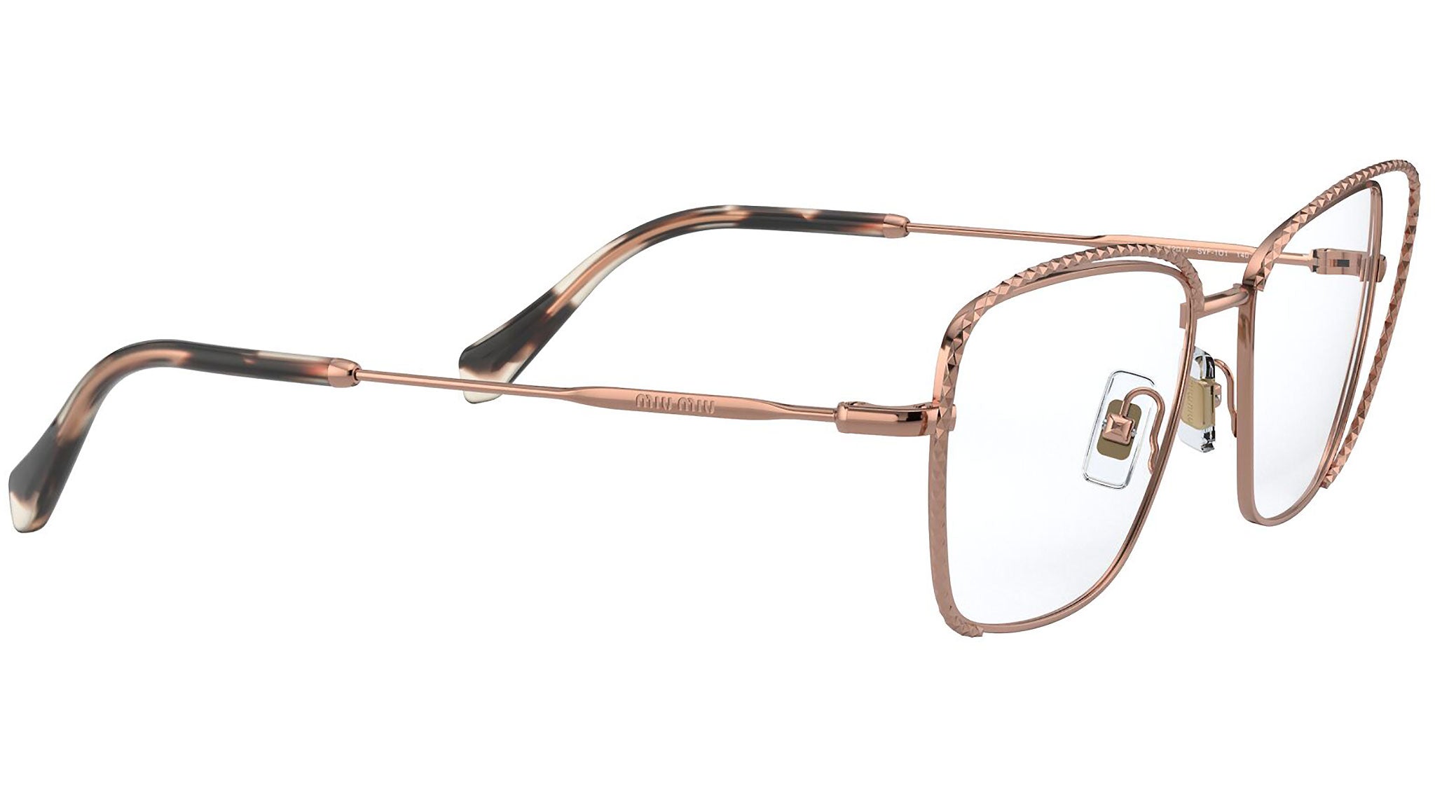 Occhiali da vista Miu Miu modello MU 50TV variante colore SVF1O1 oro rosa. Miu Miu offre creazioni uniche, in cui la costante ricerca stilistica si combina perfettamente con la maestria artigianale della lavorazione. Le silhouette femminili e sinuose delle montature sono espressione di una ricchezza dei dettagli che rispecchia pienamente i codici stilistici e l’indiscusso talento del brand nell’unire il design non convenzionale ad un romanticismo dai rimandi retrò.