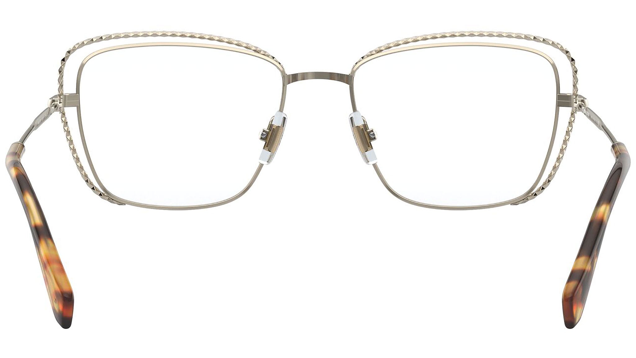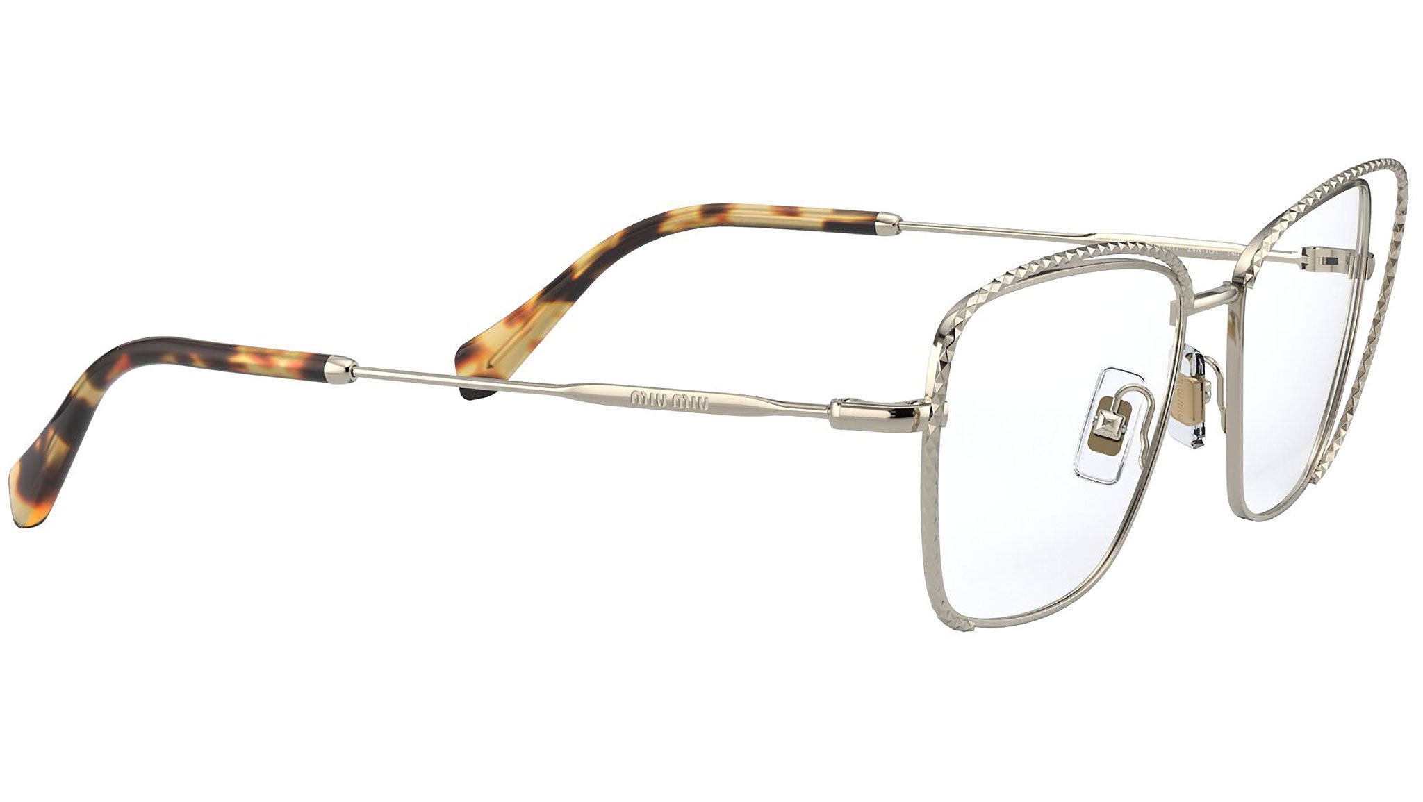 Occhiali da vista Miu Miu modello MU 50TV variante colore ZVN1O1 oro chiaro. Miu Miu offre creazioni uniche, in cui la costante ricerca stilistica si combina perfettamente con la maestria artigianale della lavorazione. Le silhouette femminili e sinuose delle montature sono espressione di una ricchezza dei dettagli che rispecchia pienamente i codici stilistici e l’indiscusso talento del brand nell’unire il design non convenzionale ad un romanticismo dai rimandi retrò.