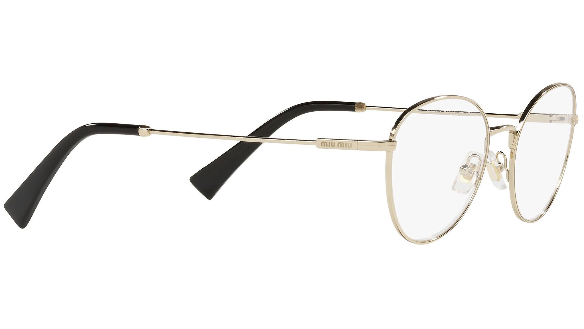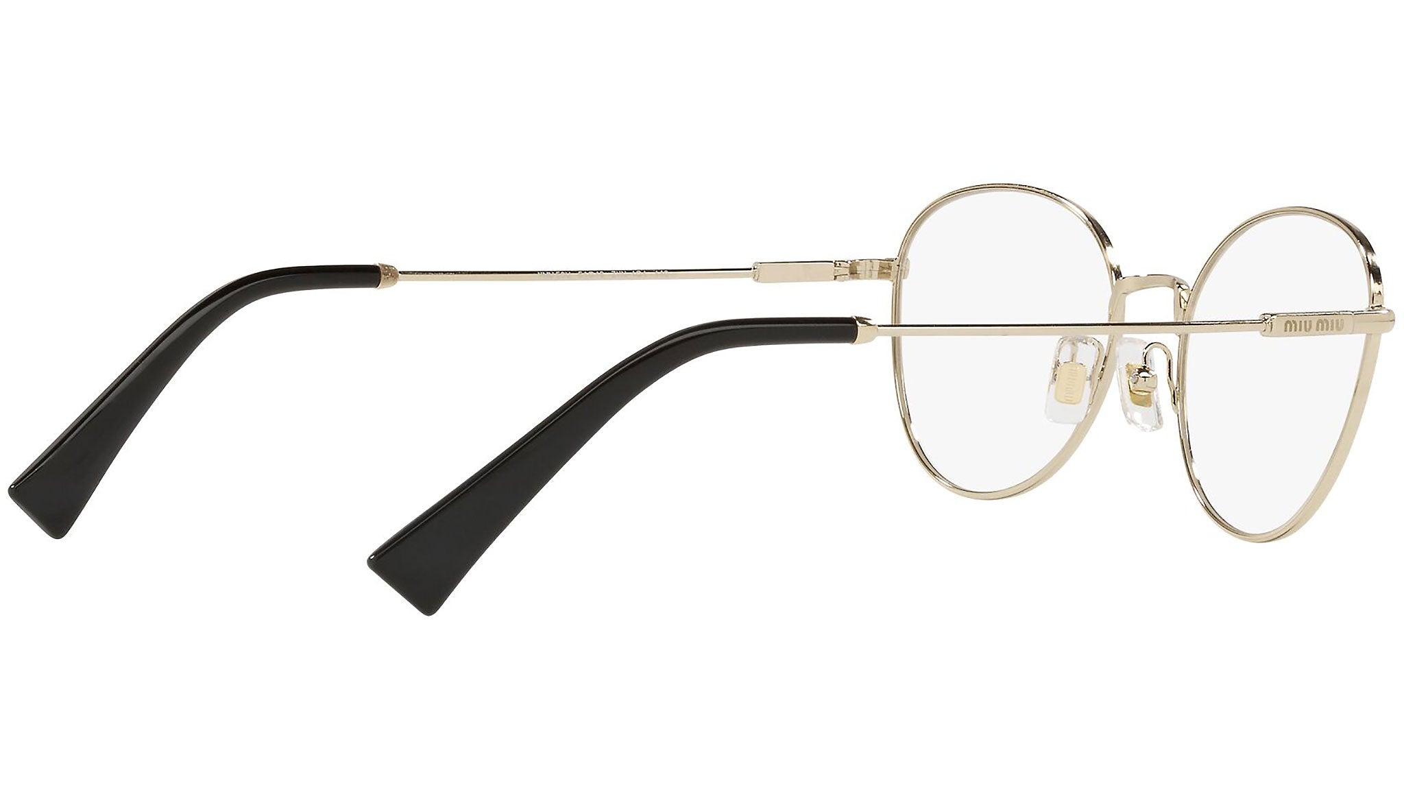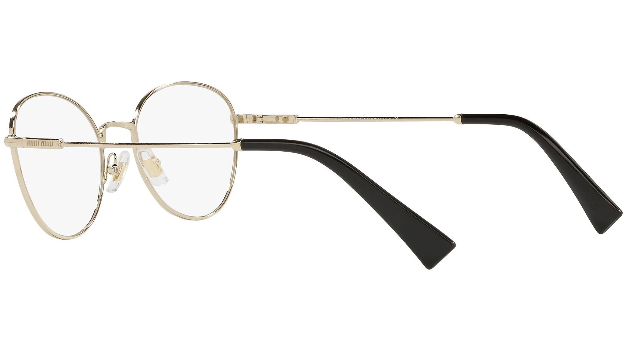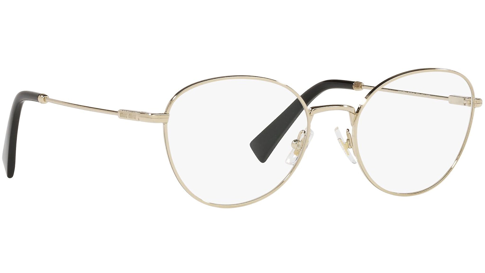Occhiali da vista Miu Miu modello MU 50UV variante colore ZVN1O1 oro chiaro. Miu Miu offre creazioni uniche, in cui la costante ricerca stilistica si combina perfettamente con la maestria artigianale della lavorazione. Le silhouette femminili e sinuose delle montature sono espressione di una ricchezza dei dettagli che rispecchia pienamente i codici stilistici e l’indiscusso talento del brand nell’unire il design non convenzionale ad un romanticismo dai rimandi retrò.