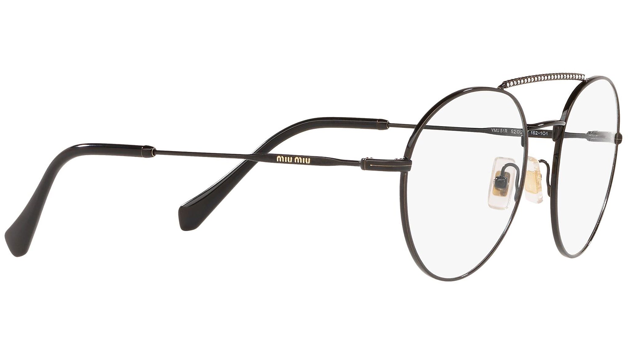 Occhiali da vista Miu Miu modello MU 51RV variante colore 1621O1 nero. Miu Miu offre creazioni uniche, in cui la costante ricerca stilistica si combina perfettamente con la maestria artigianale della lavorazione. Le silhouette femminili e sinuose delle montature sono espressione di una ricchezza dei dettagli che rispecchia pienamente i codici stilistici e l’indiscusso talento del brand nell’unire il design non convenzionale ad un romanticismo dai rimandi retrò.
