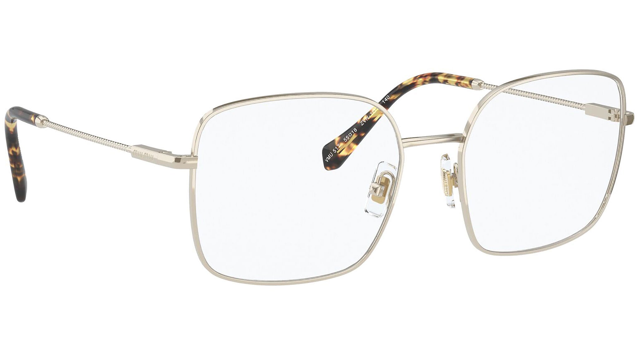 Occhiali da vista Miu Miu modello MU 51TV variante colore ZVN1O1 oro chiaro. Miu Miu offre creazioni uniche, in cui la costante ricerca stilistica si combina perfettamente con la maestria artigianale della lavorazione. Le silhouette femminili e sinuose delle montature sono espressione di una ricchezza dei dettagli che rispecchia pienamente i codici stilistici e l’indiscusso talento del brand nell’unire il design non convenzionale ad un romanticismo dai rimandi retrò.
