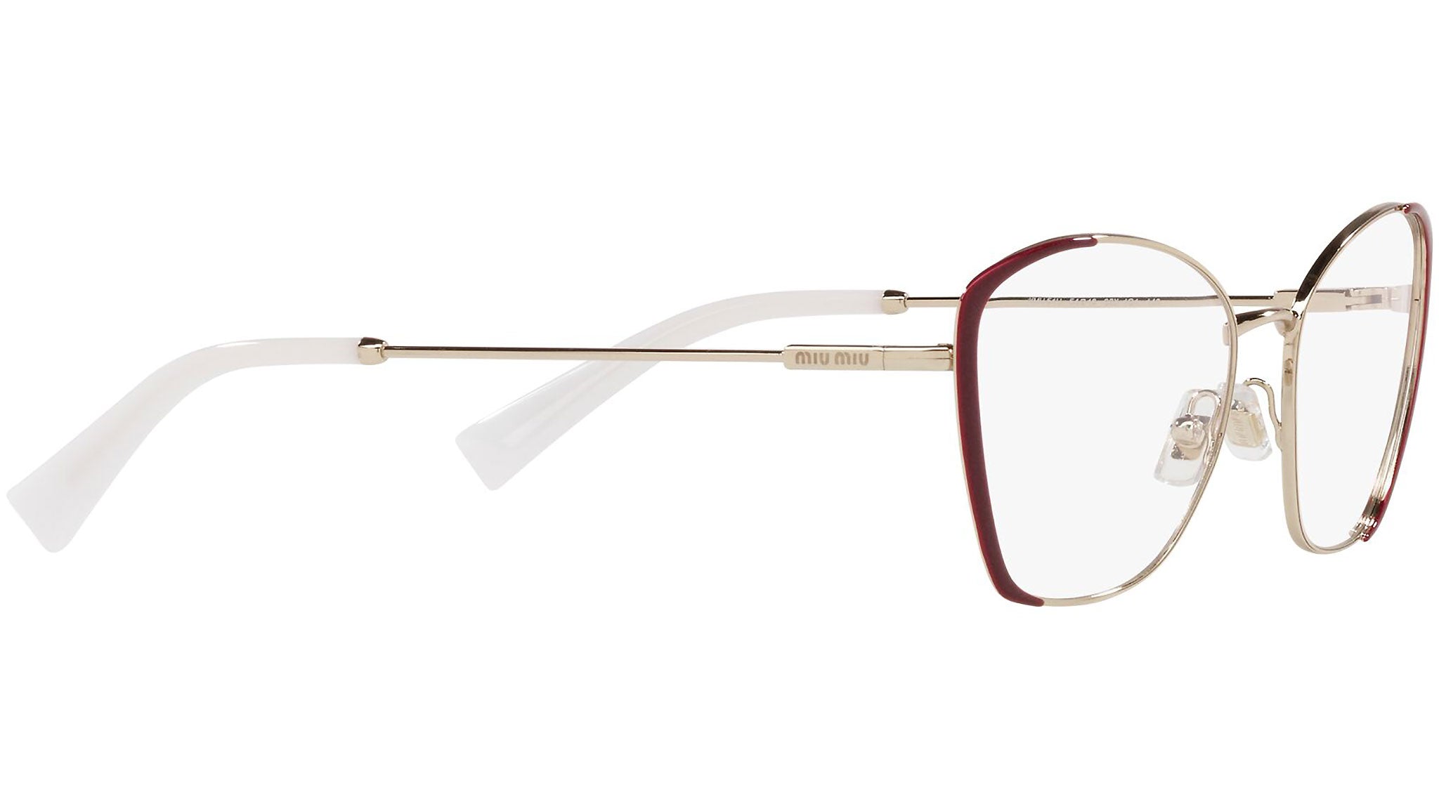 Occhiali da vista Miu Miu modello MU 51UV variante colore 09X1O1 bordeaux. Miu Miu offre creazioni uniche, in cui la costante ricerca stilistica si combina perfettamente con la maestria artigianale della lavorazione. Le silhouette femminili e sinuose delle montature sono espressione di una ricchezza dei dettagli che rispecchia pienamente i codici stilistici e l’indiscusso talento del brand nell’unire il design non convenzionale ad un romanticismo dai rimandi retrò.