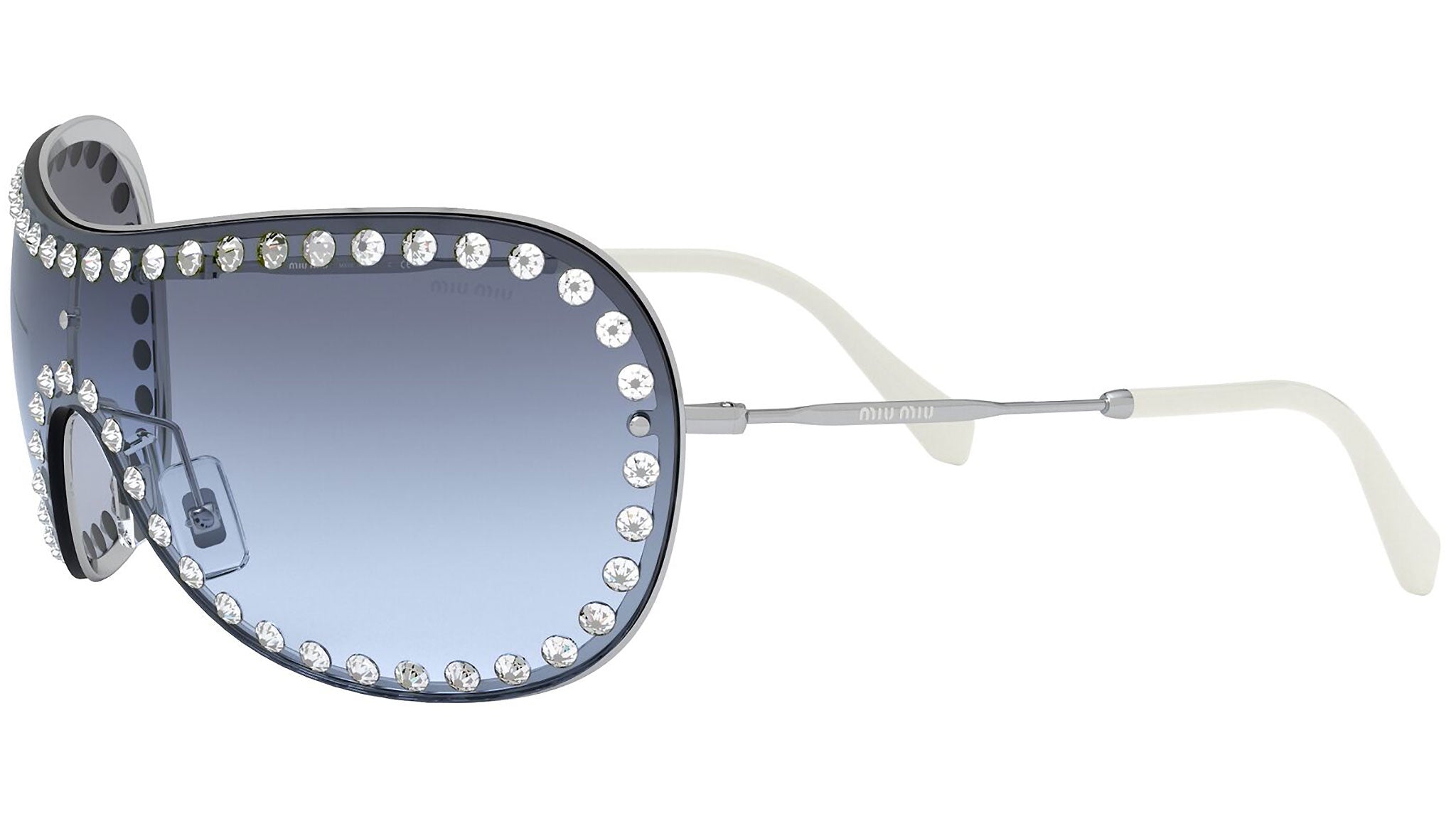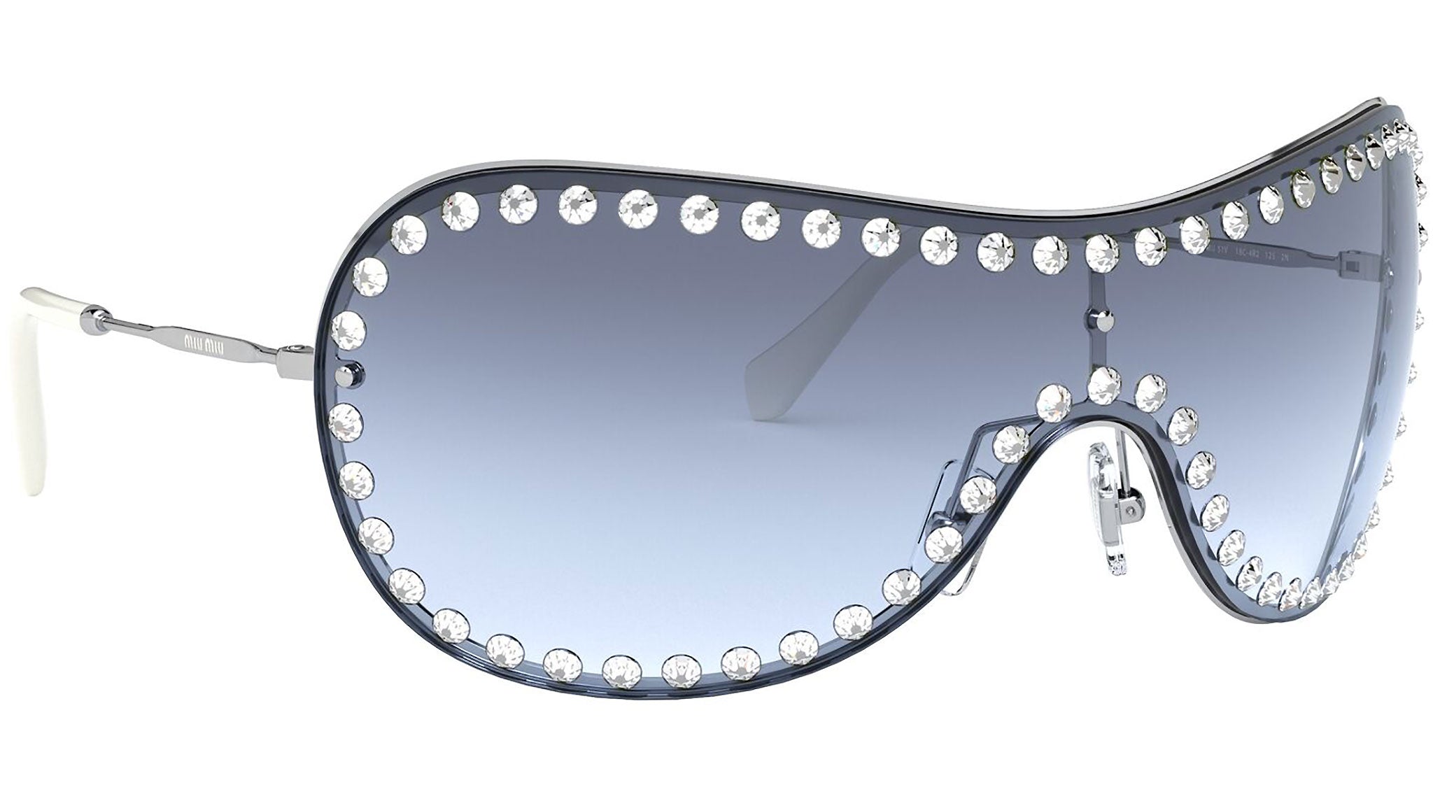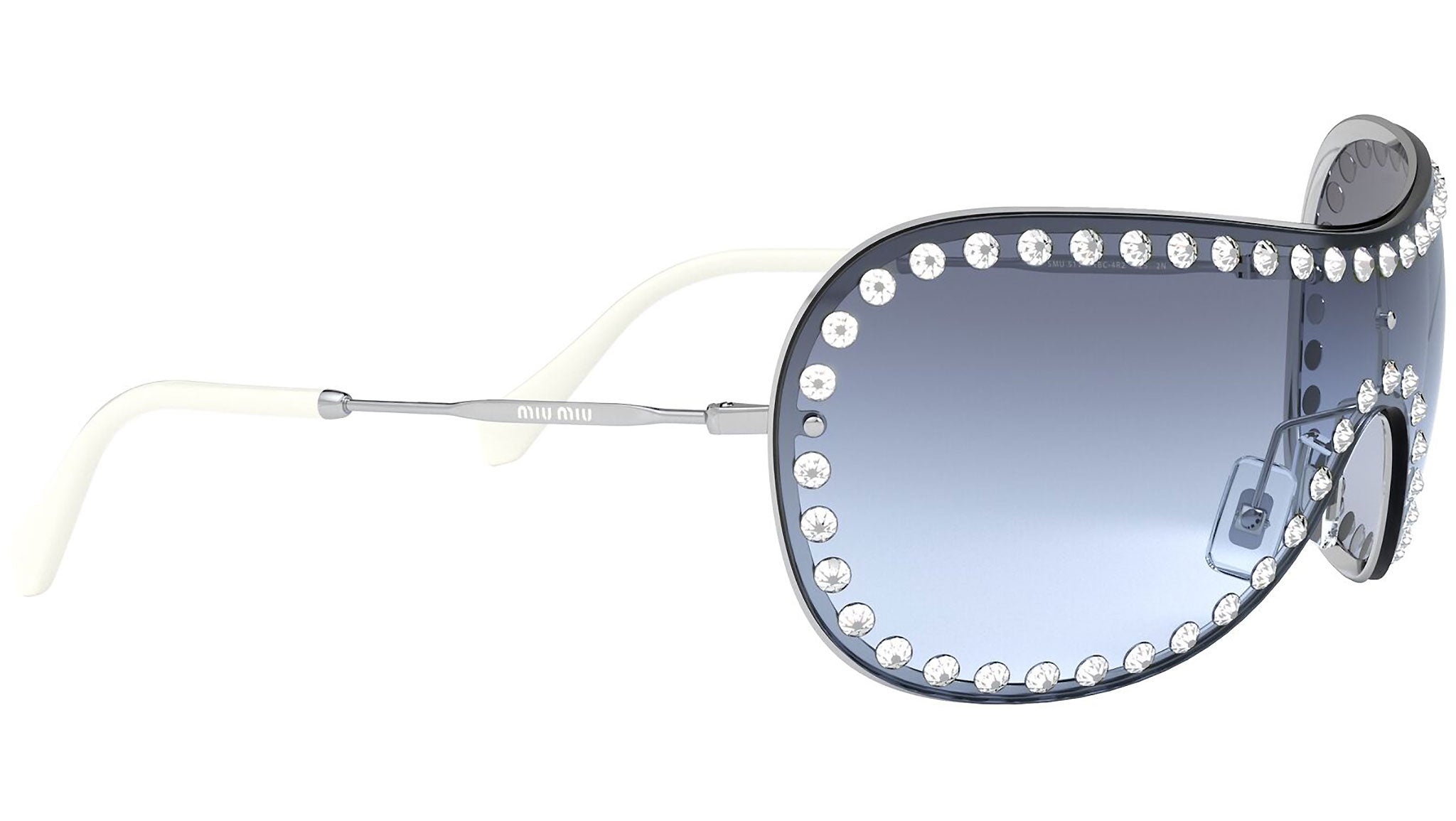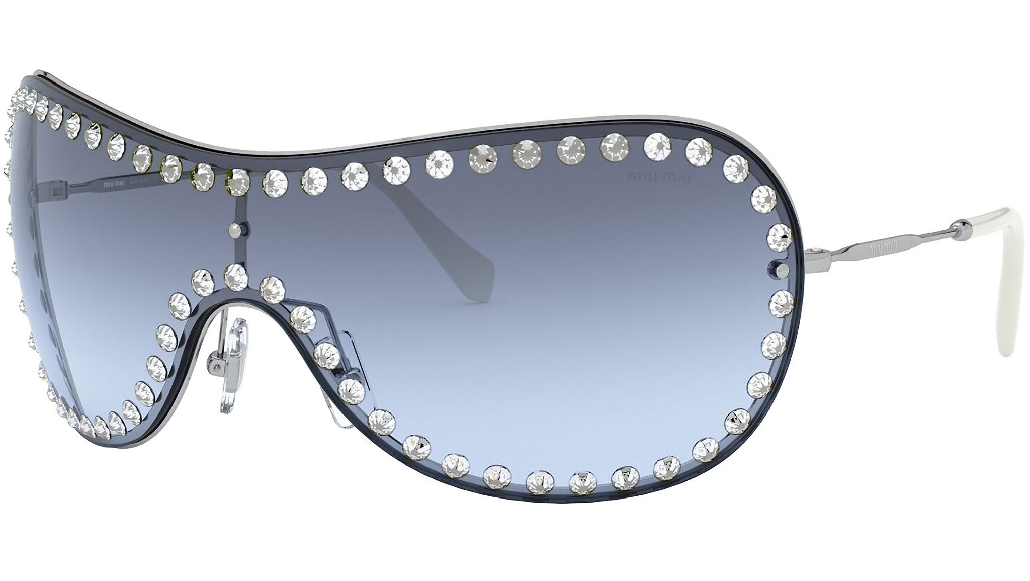 Occhiali da sole Miu Miu modello MU 51VS variante colore 1BC4R2 argento, con lenti color blu gradiente. Miu Miu offre creazioni uniche, in cui la costante ricerca stilistica si combina perfettamente con la maestria artigianale della lavorazione. Le silhouette femminili e sinuose delle montature sono espressione di una ricchezza dei dettagli che rispecchia pienamente i codici stilistici e l’indiscusso talento del brand nell’unire il design non convenzionale ad un romanticismo dai rimandi retrò.