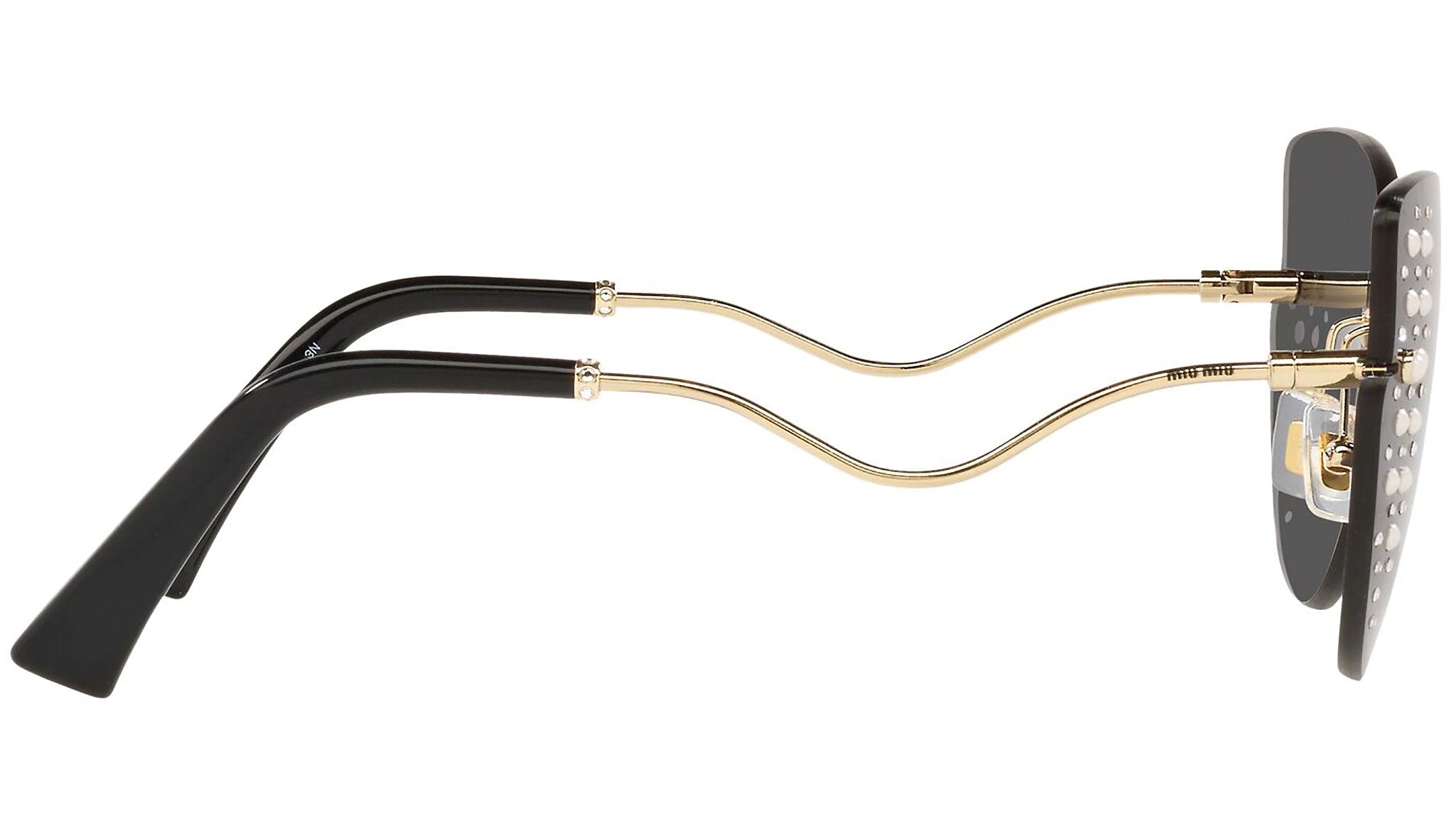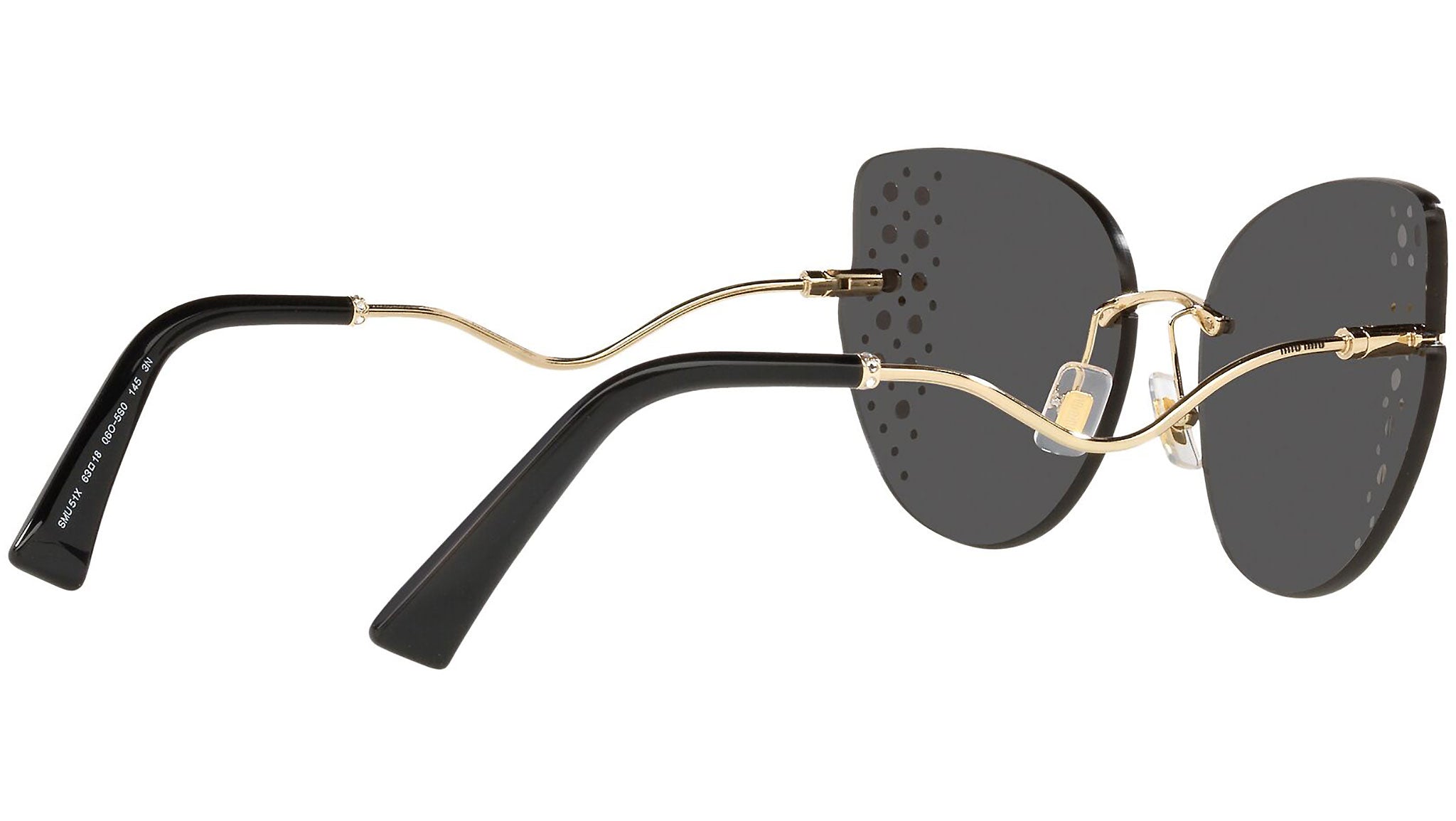 Occhiali da sole Miu Miu modello MU 51XS variante colore 06O5S0 oro chiaro, con lenti color grigio scuro. Miu Miu offre creazioni uniche, in cui la costante ricerca stilistica si combina perfettamente con la maestria artigianale della lavorazione. Le silhouette femminili e sinuose delle montature sono espressione di una ricchezza dei dettagli che rispecchia pienamente i codici stilistici e l’indiscusso talento del brand nell’unire il design non convenzionale ad un romanticismo dai rimandi retrò.