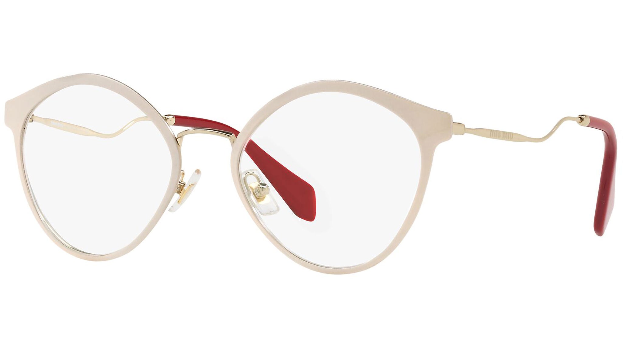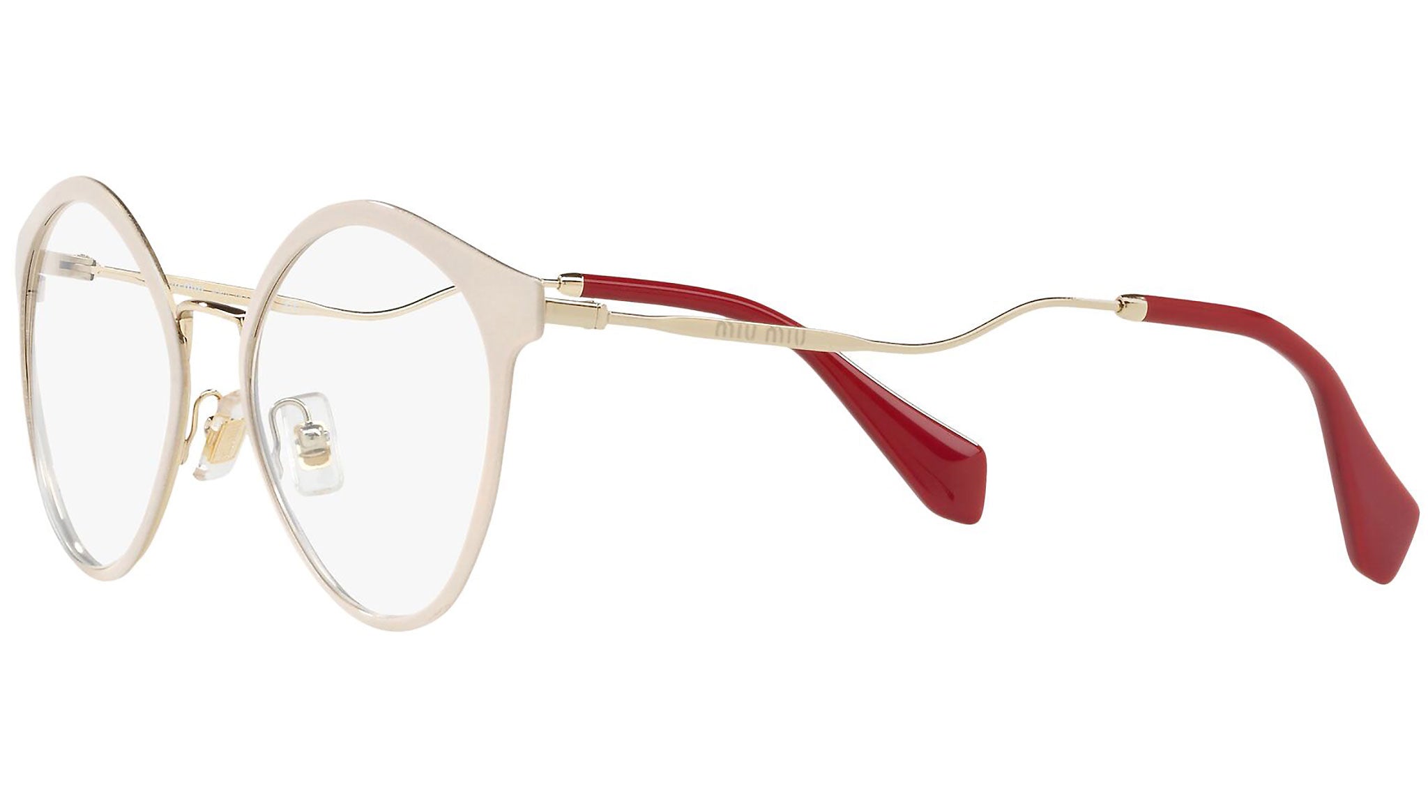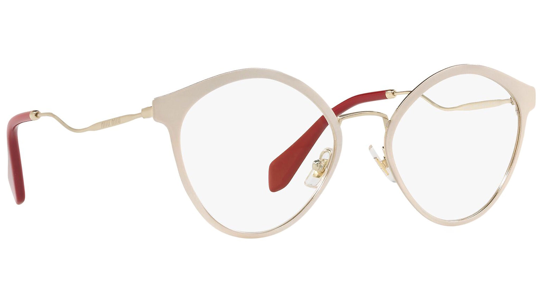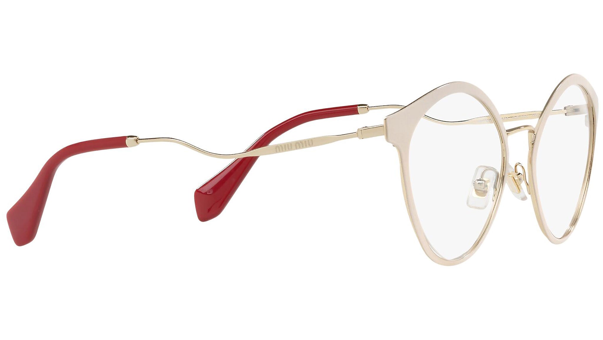 Occhiali da vista Miu Miu modello MU 52QV variante colore 4UD1O1 rosa glitterato. Miu Miu offre creazioni uniche, in cui la costante ricerca stilistica si combina perfettamente con la maestria artigianale della lavorazione. Le silhouette femminili e sinuose delle montature sono espressione di una ricchezza dei dettagli che rispecchia pienamente i codici stilistici e l’indiscusso talento del brand nell’unire il design non convenzionale ad un romanticismo dai rimandi retrò.