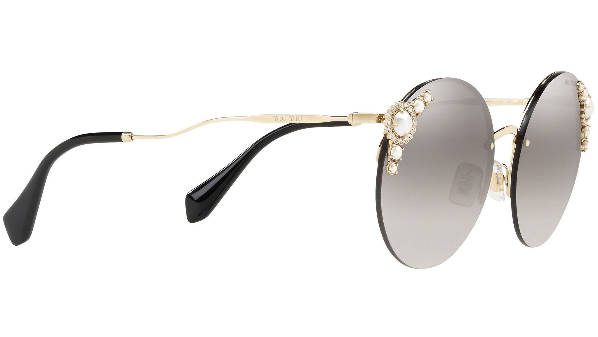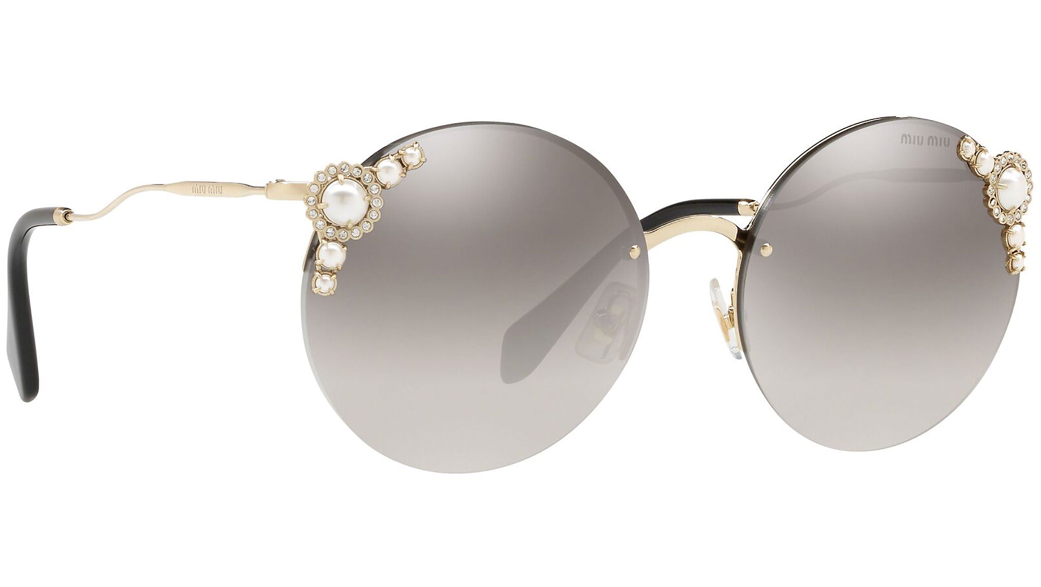 Occhiali da sole Miu Miu modello MU 52TS variante colore VW75O0 oro chiaro, con lenti color grigio a specchio argento sfumato. Miu Miu offre creazioni uniche, in cui la costante ricerca stilistica si combina perfettamente con la maestria artigianale della lavorazione. Le silhouette femminili e sinuose delle montature sono espressione di una ricchezza dei dettagli che rispecchia pienamente i codici stilistici e l’indiscusso talento del brand nell’unire il design non convenzionale ad un romanticismo dai rimandi retrò.