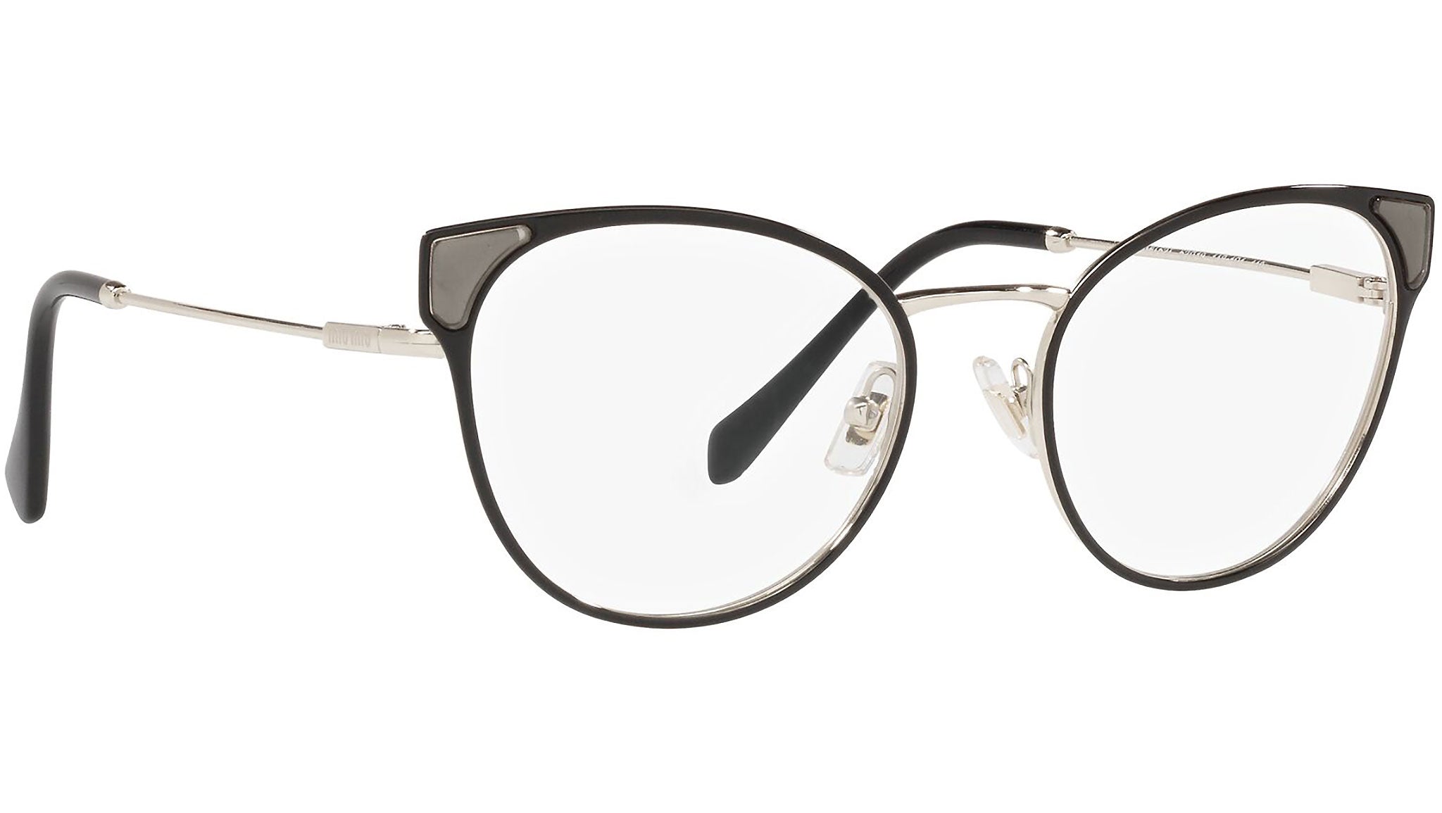 Occhiali da vista Miu Miu modello MU 52TV variante colore 1AB1O1 nero. Miu Miu offre creazioni uniche, in cui la costante ricerca stilistica si combina perfettamente con la maestria artigianale della lavorazione. Le silhouette femminili e sinuose delle montature sono espressione di una ricchezza dei dettagli che rispecchia pienamente i codici stilistici e l’indiscusso talento del brand nell’unire il design non convenzionale ad un romanticismo dai rimandi retrò.