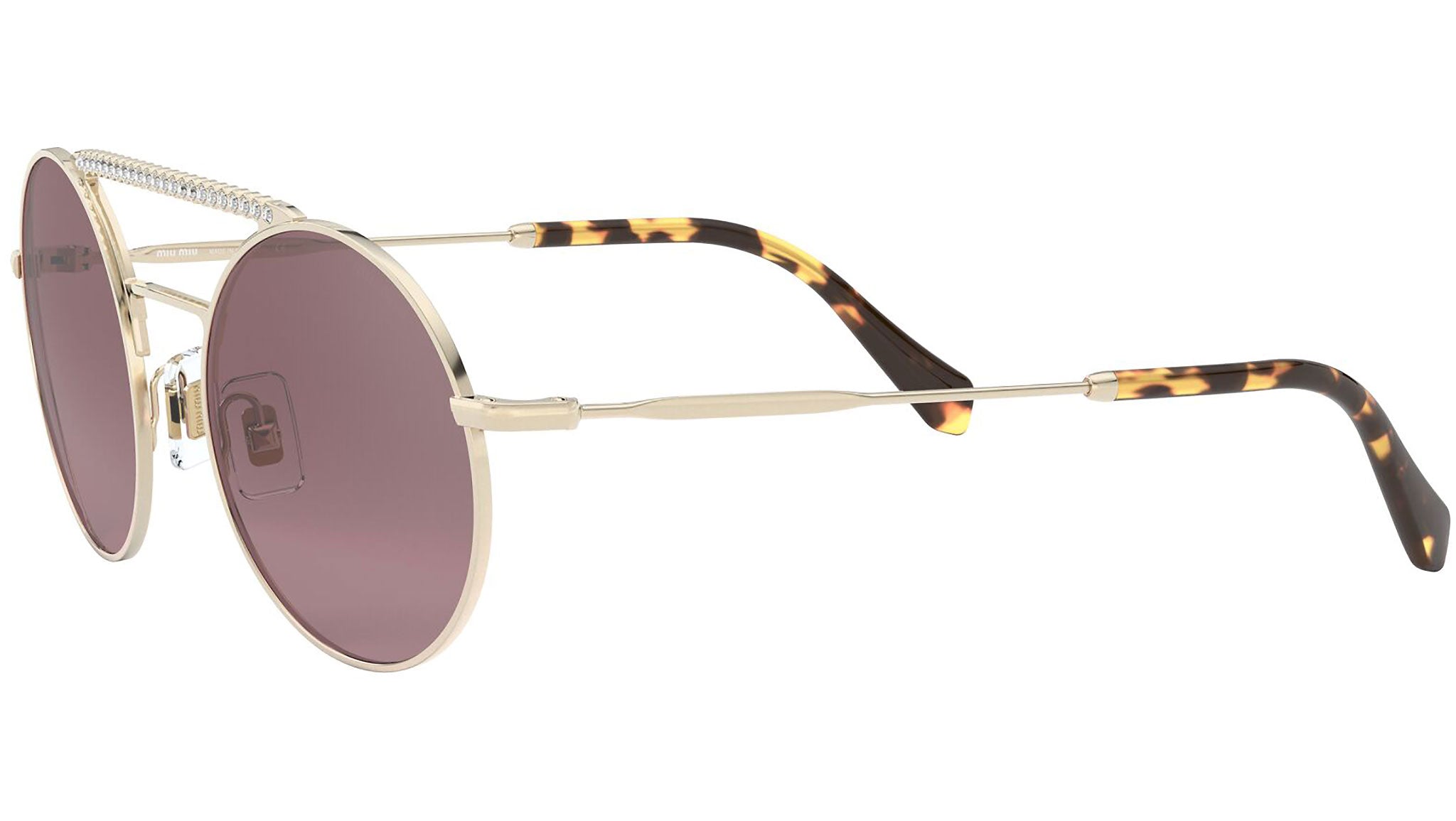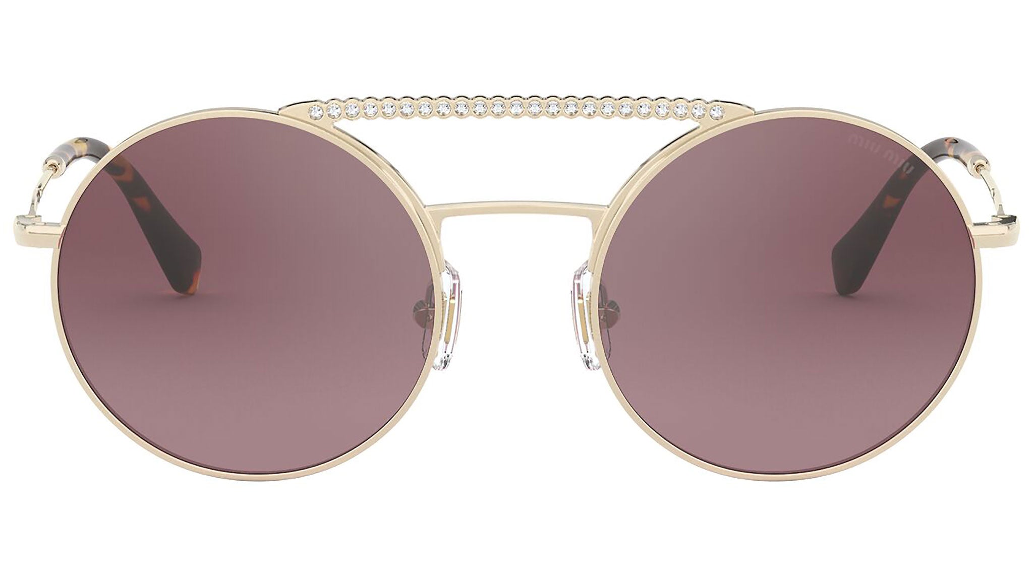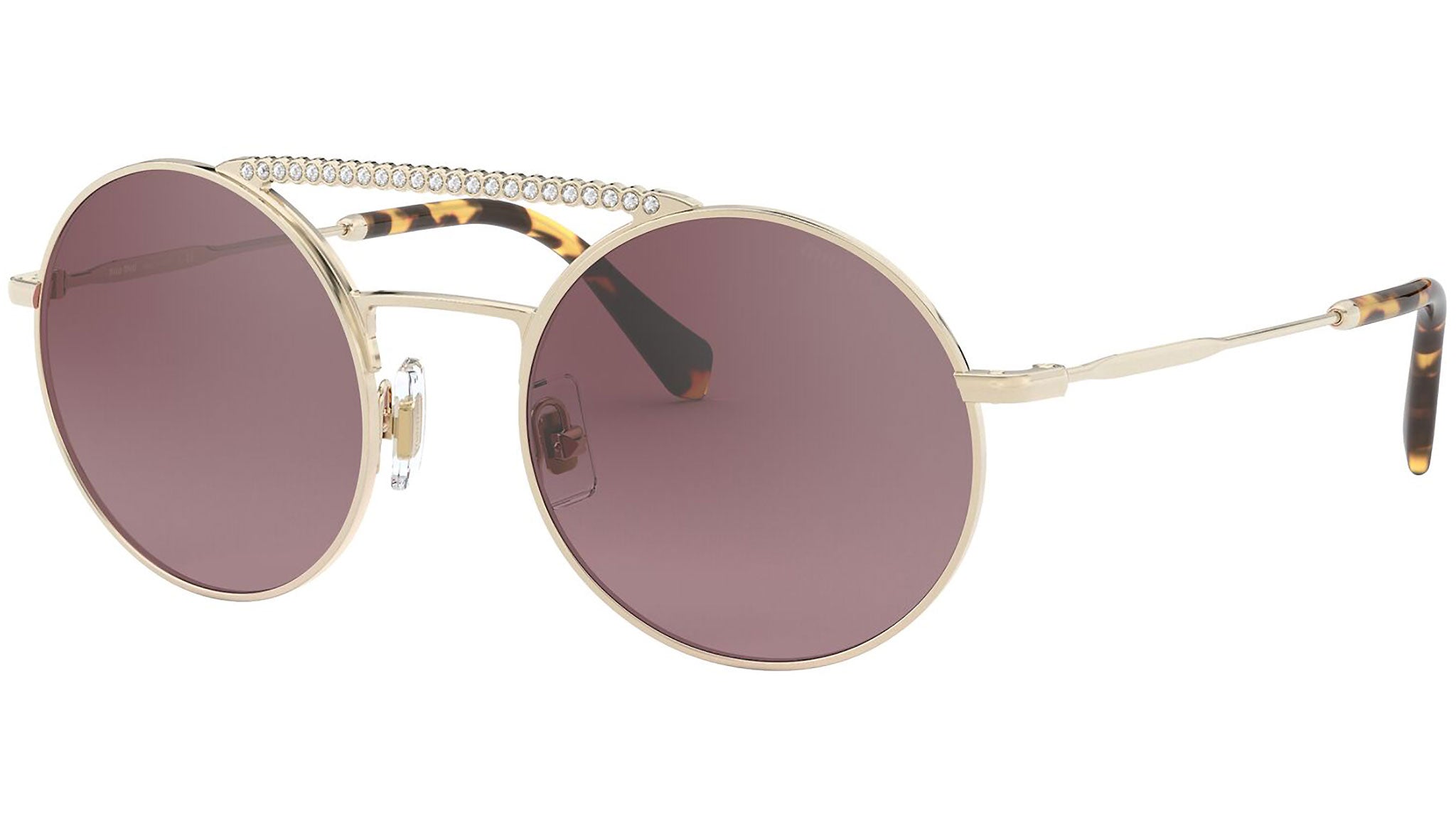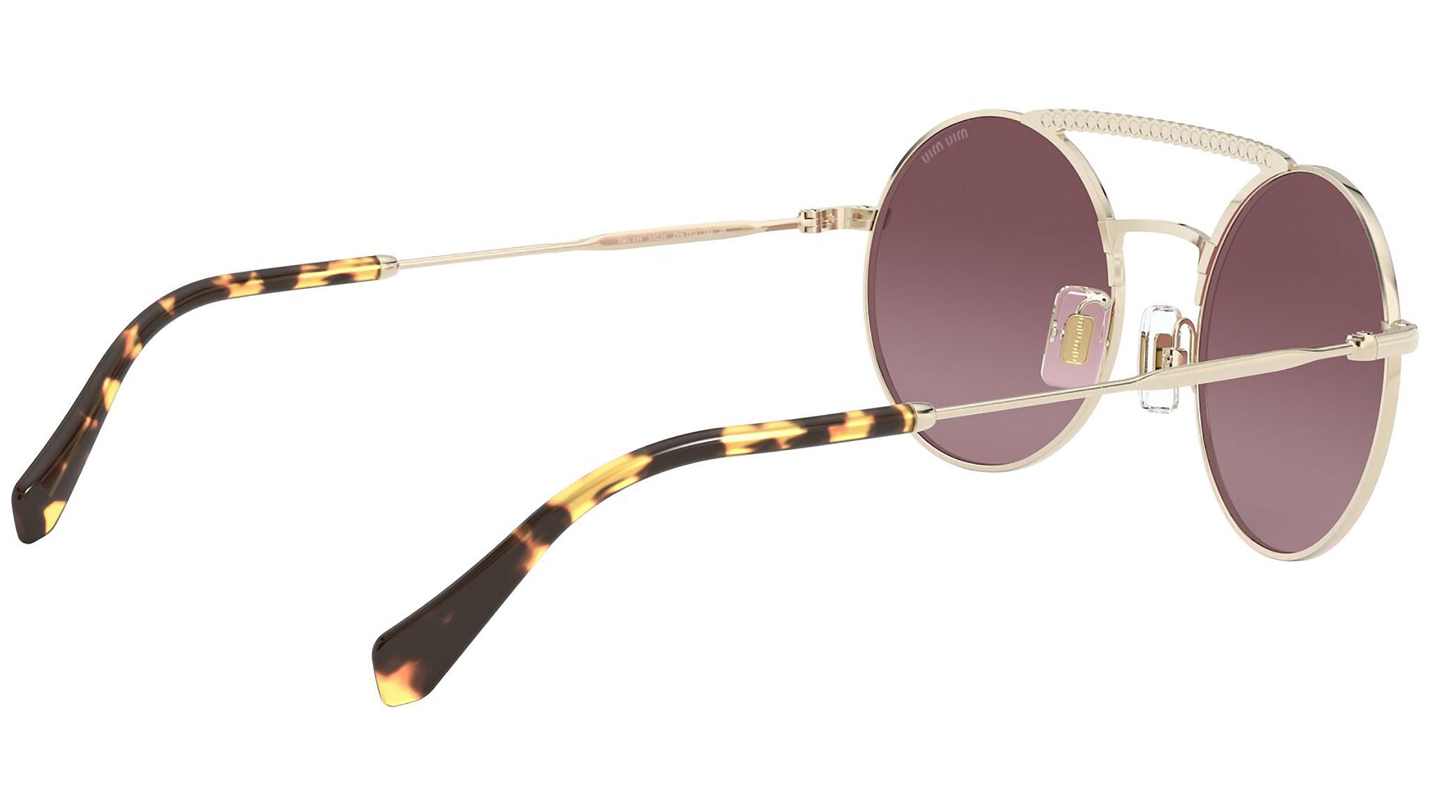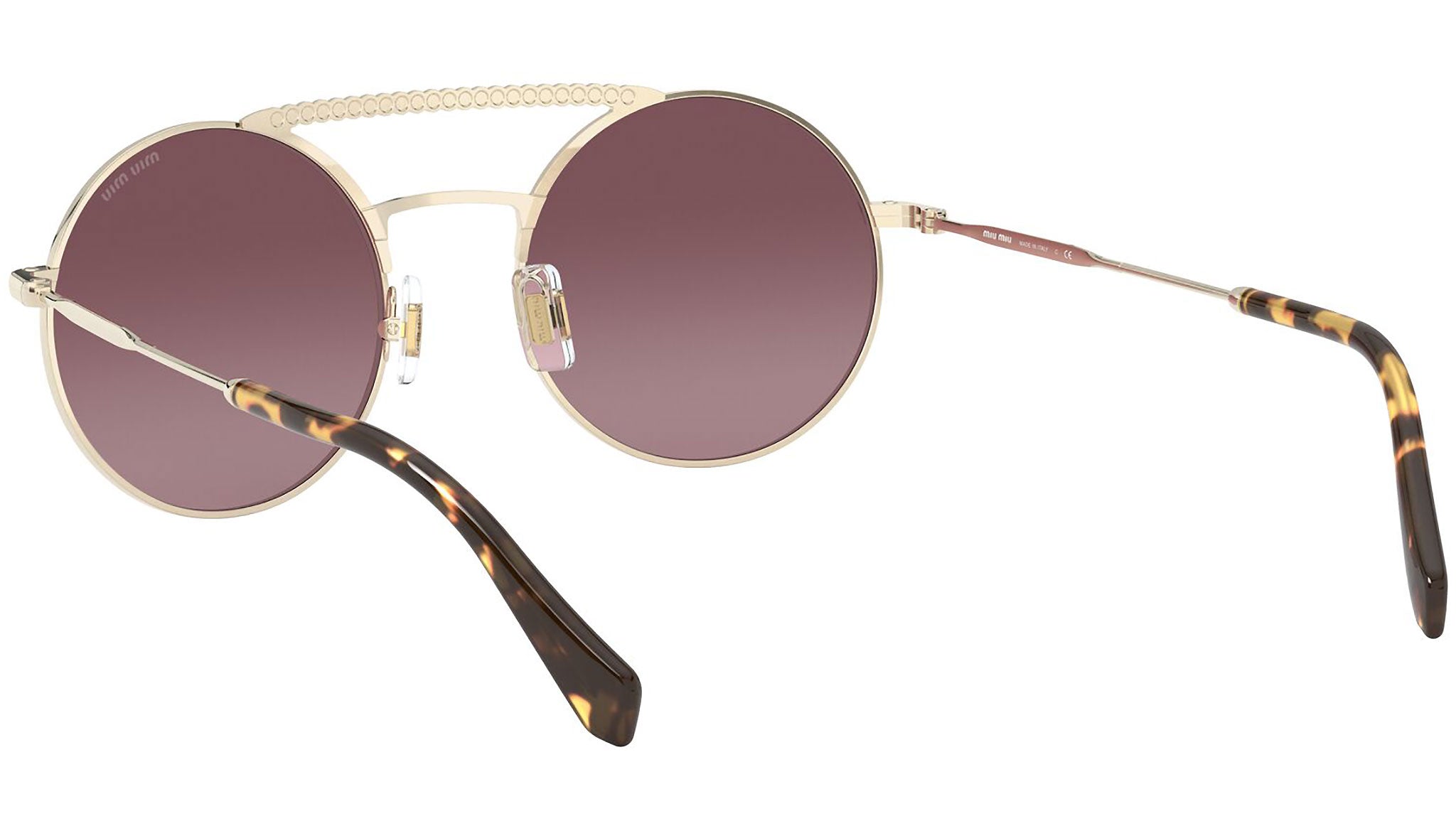 Occhiali da sole Miu Miu modello MU 52VS variante colore ZVNTEG oro chiaro, con lenti color rosa sfumato a specchio argento. Miu Miu offre creazioni uniche, in cui la costante ricerca stilistica si combina perfettamente con la maestria artigianale della lavorazione. Le silhouette femminili e sinuose delle montature sono espressione di una ricchezza dei dettagli che rispecchia pienamente i codici stilistici e l’indiscusso talento del brand nell’unire il design non convenzionale ad un romanticismo dai rimandi retrò.