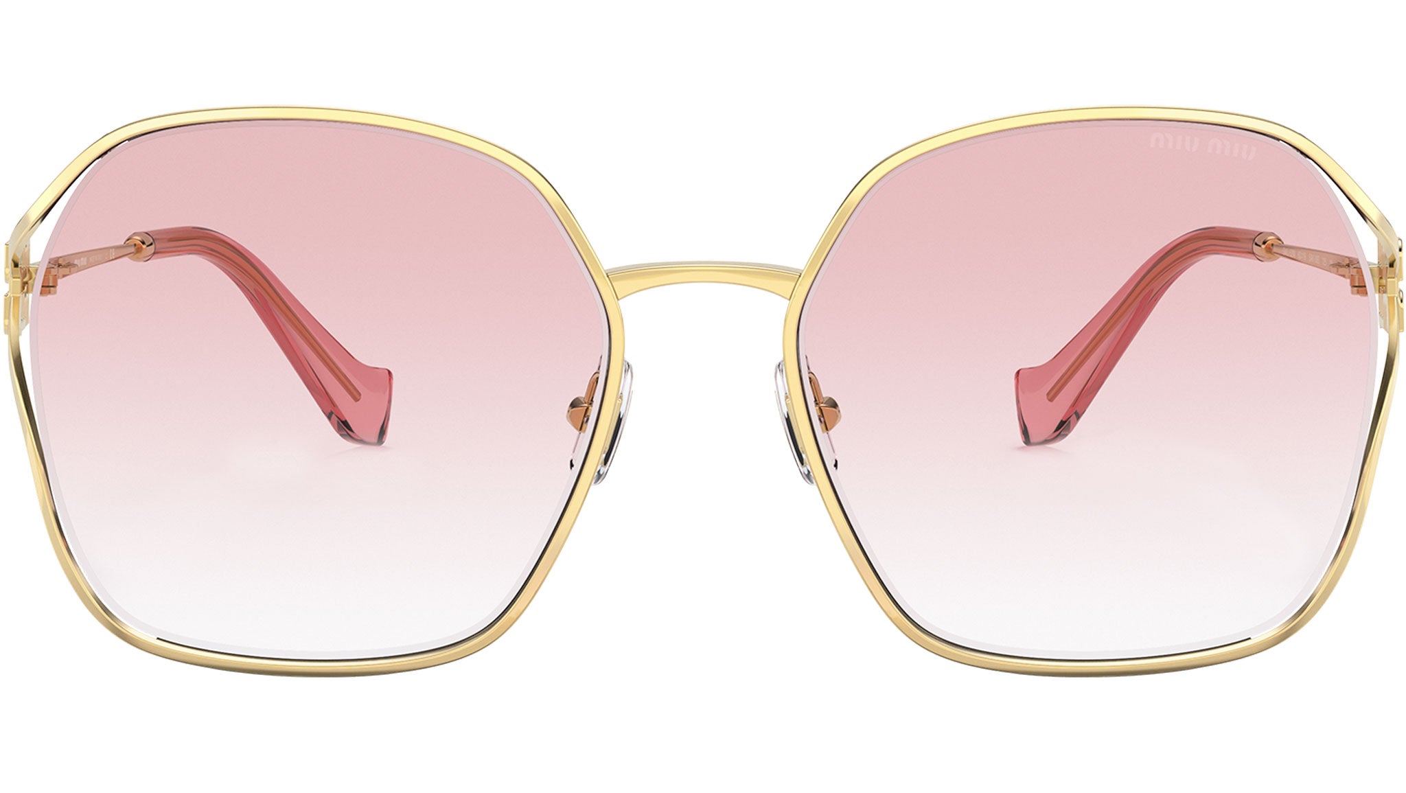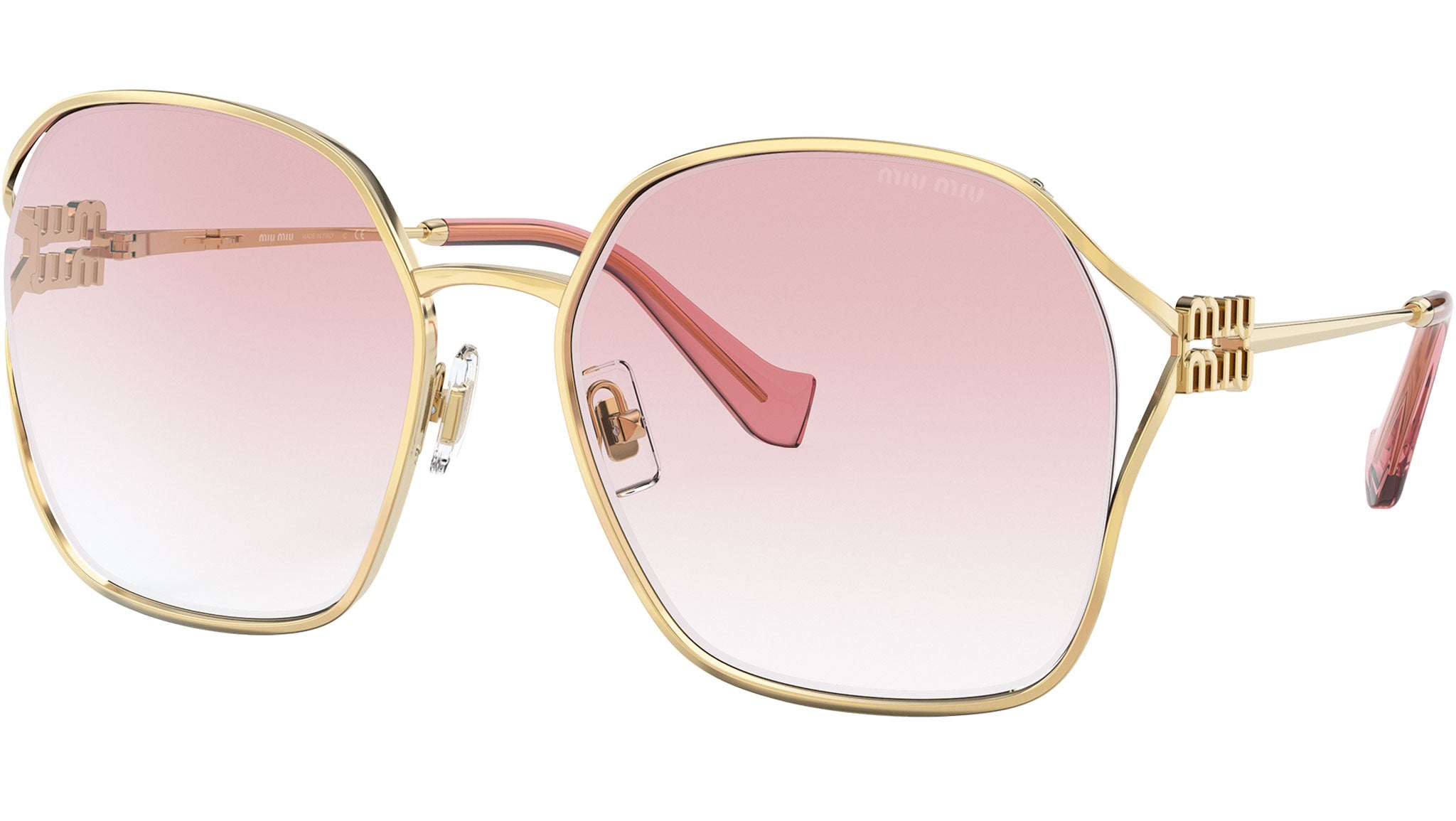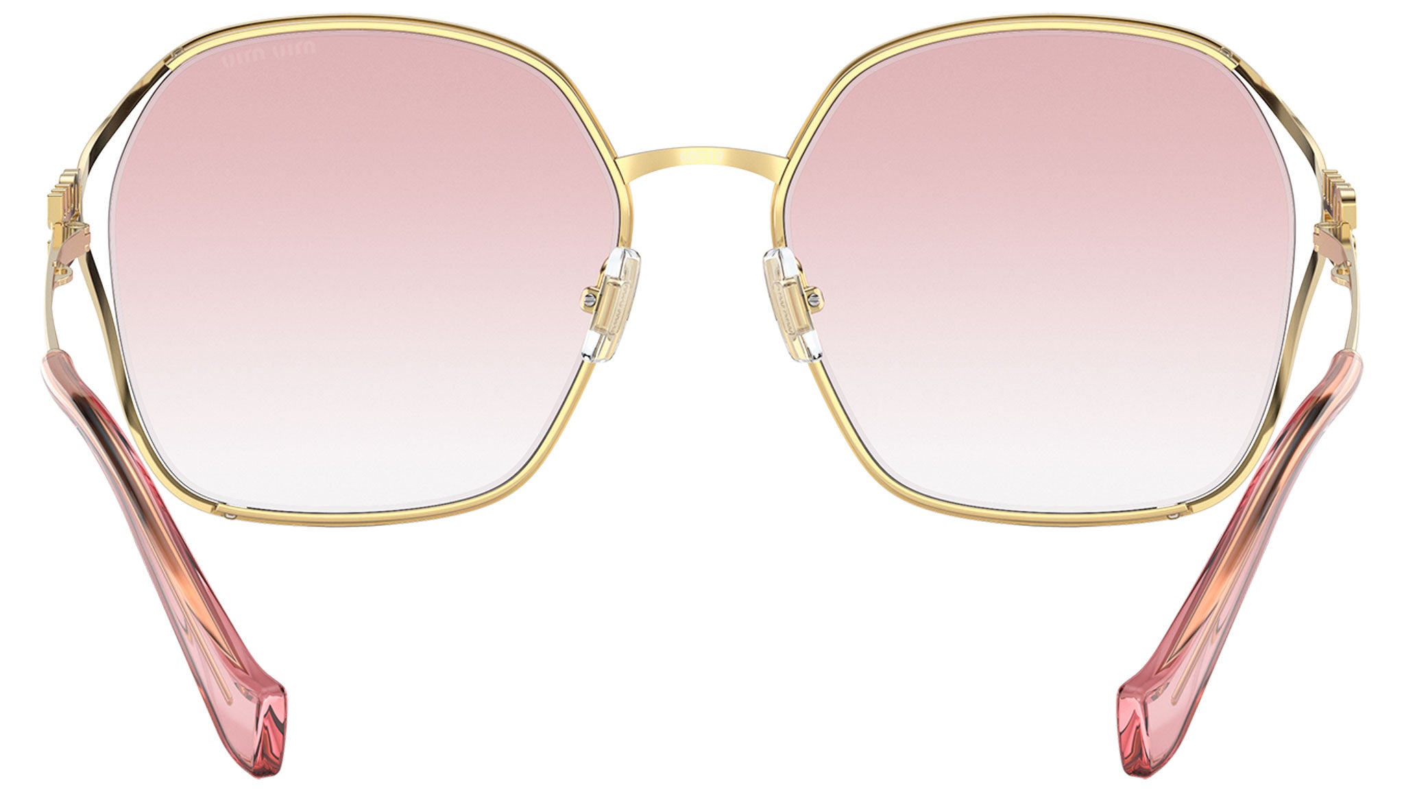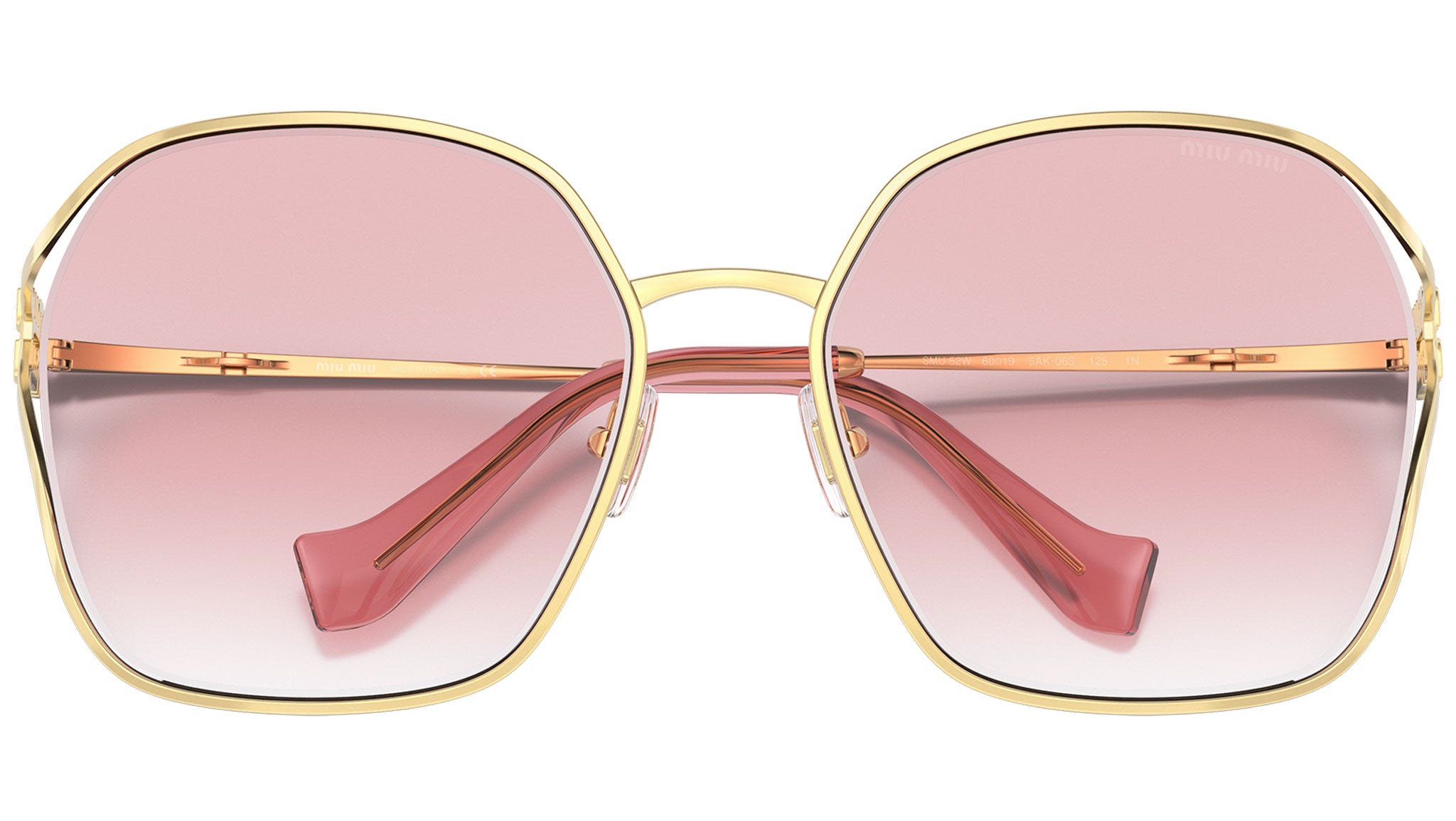 Occhiali da sole Miu Miu modello MU 70US variante colore 5AK06S oro, con lenti color marrone chiaro sfumato viola. Miu Miu offre creazioni uniche, in cui la costante ricerca stilistica si combina perfettamente con la maestria artigianale della lavorazione. Le silhouette femminili e sinuose delle montature sono espressione di una ricchezza dei dettagli che rispecchia pienamente i codici stilistici e l’indiscusso talento del brand nell’unire il design non convenzionale ad un romanticismo dai rimandi retrò.