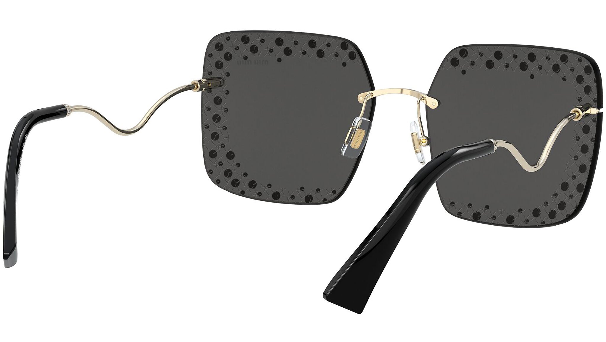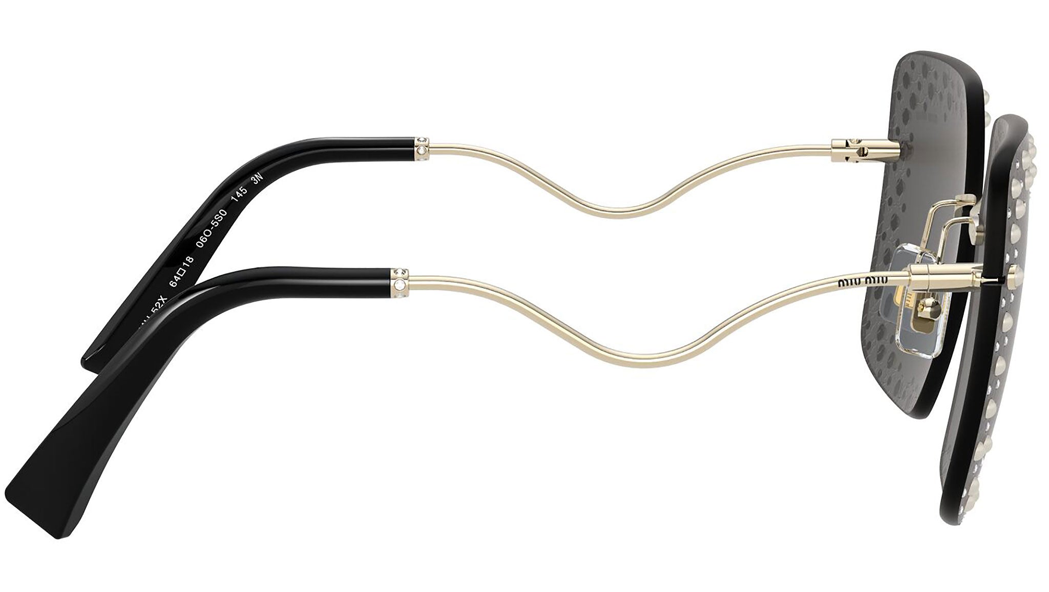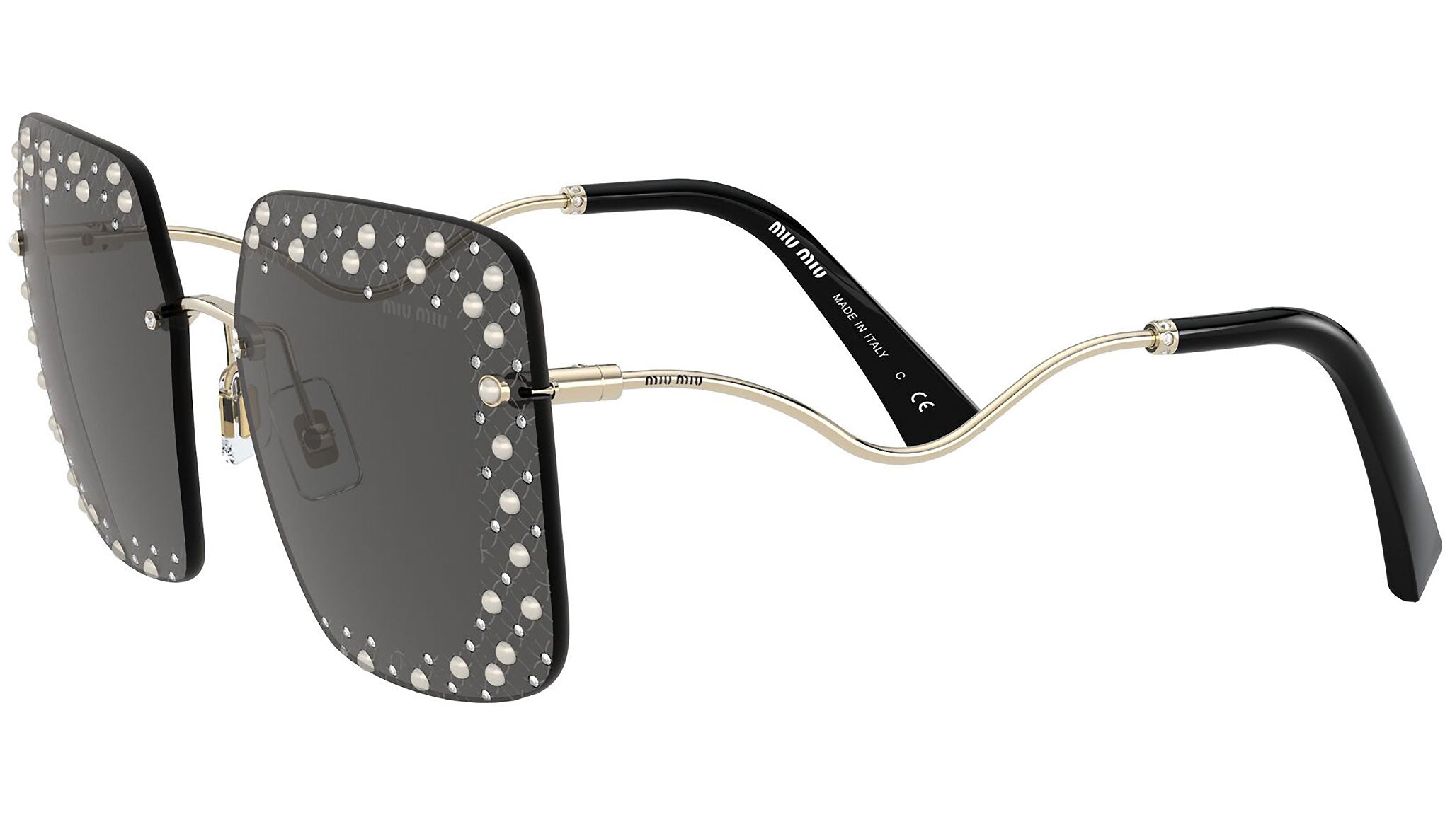 Occhiali da sole Miu Miu modello MU 52XS variante colore 06O5S0 oro chiaro, con lenti color grigio scuro. Miu Miu offre creazioni uniche, in cui la costante ricerca stilistica si combina perfettamente con la maestria artigianale della lavorazione. Le silhouette femminili e sinuose delle montature sono espressione di una ricchezza dei dettagli che rispecchia pienamente i codici stilistici e l’indiscusso talento del brand nell’unire il design non convenzionale ad un romanticismo dai rimandi retrò.