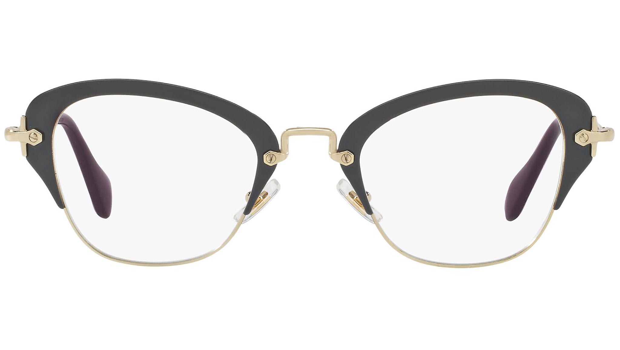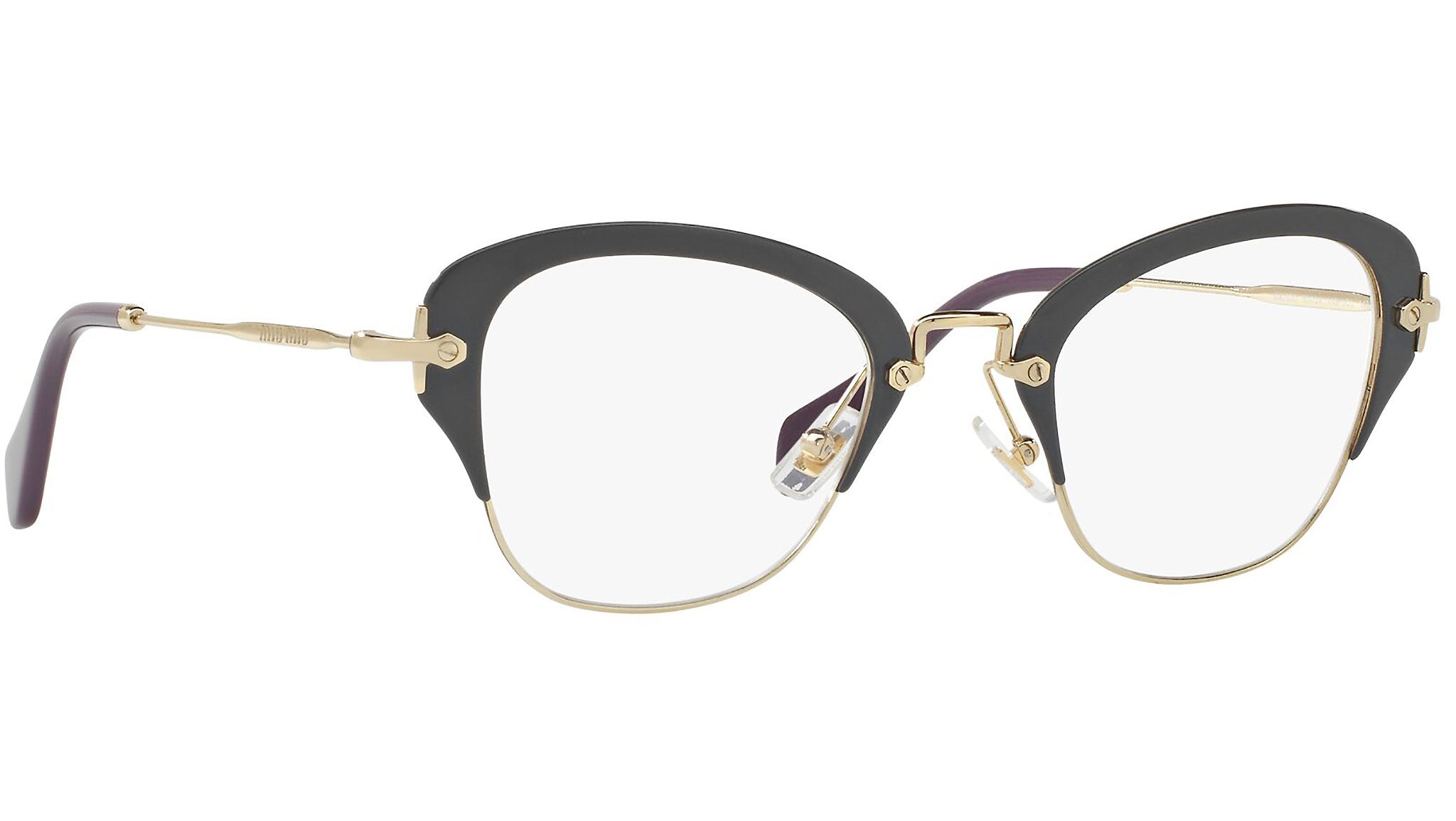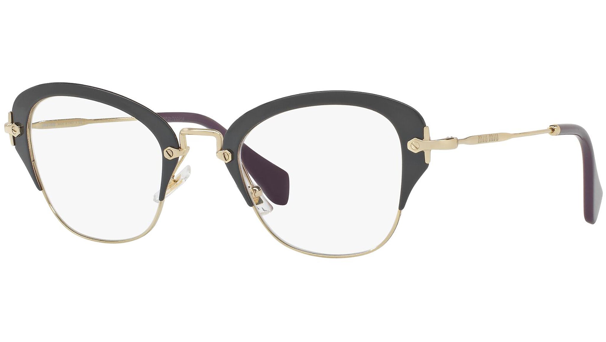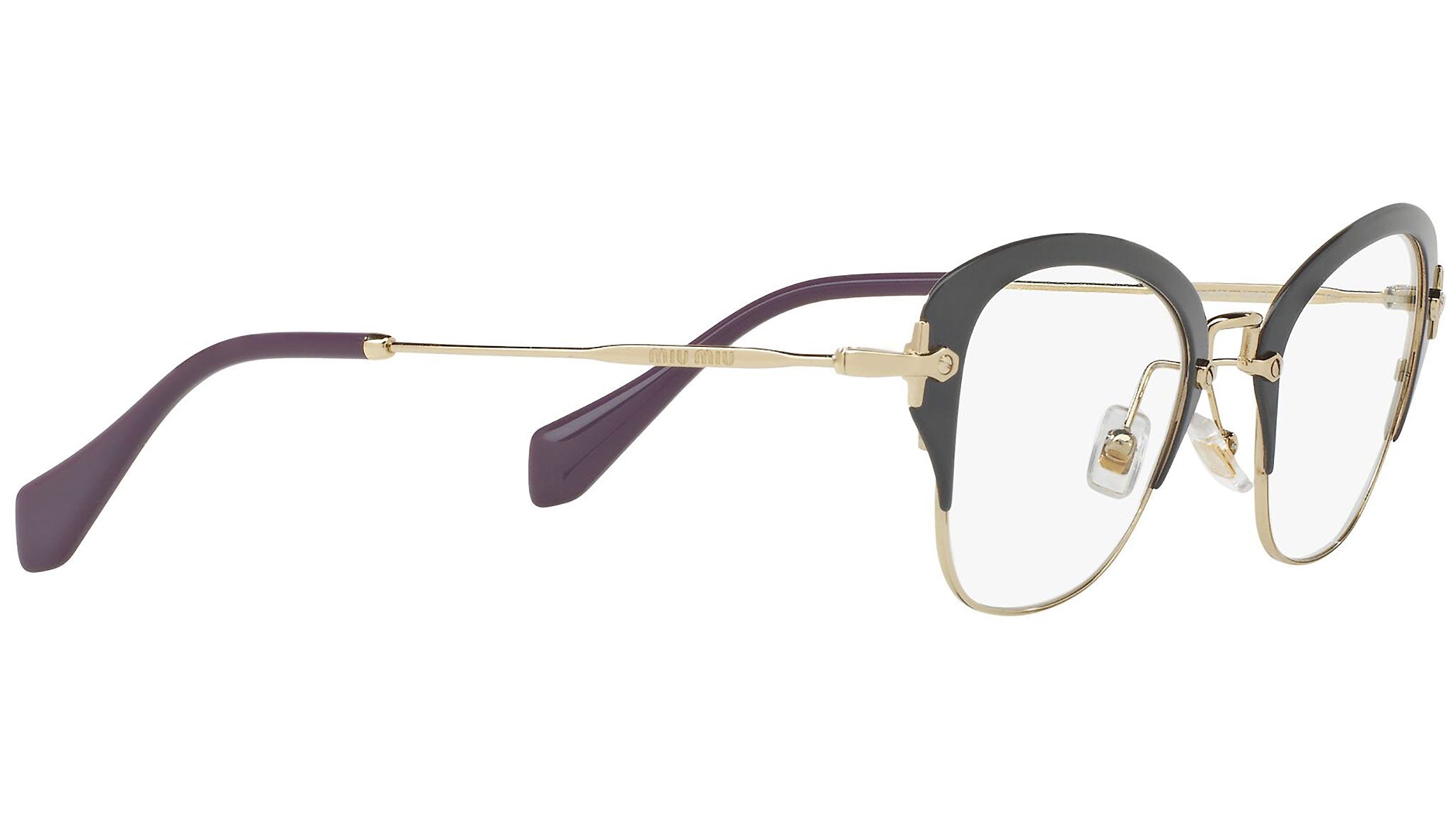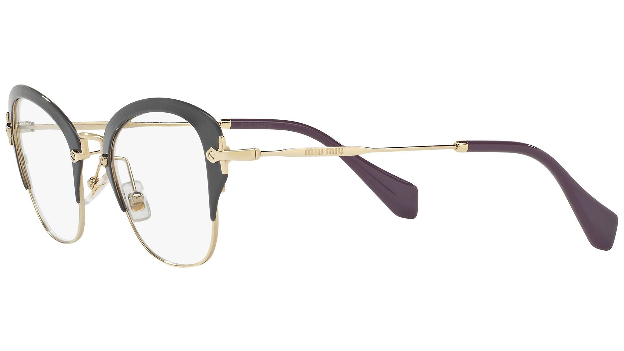 Occhiali da vista Miu Miu modello MU 53OV variante colore VAB1O1 grigio scuro. Miu Miu offre creazioni uniche, in cui la costante ricerca stilistica si combina perfettamente con la maestria artigianale della lavorazione. Le silhouette femminili e sinuose delle montature sono espressione di una ricchezza dei dettagli che rispecchia pienamente i codici stilistici e l’indiscusso talento del brand nell’unire il design non convenzionale ad un romanticismo dai rimandi retrò.