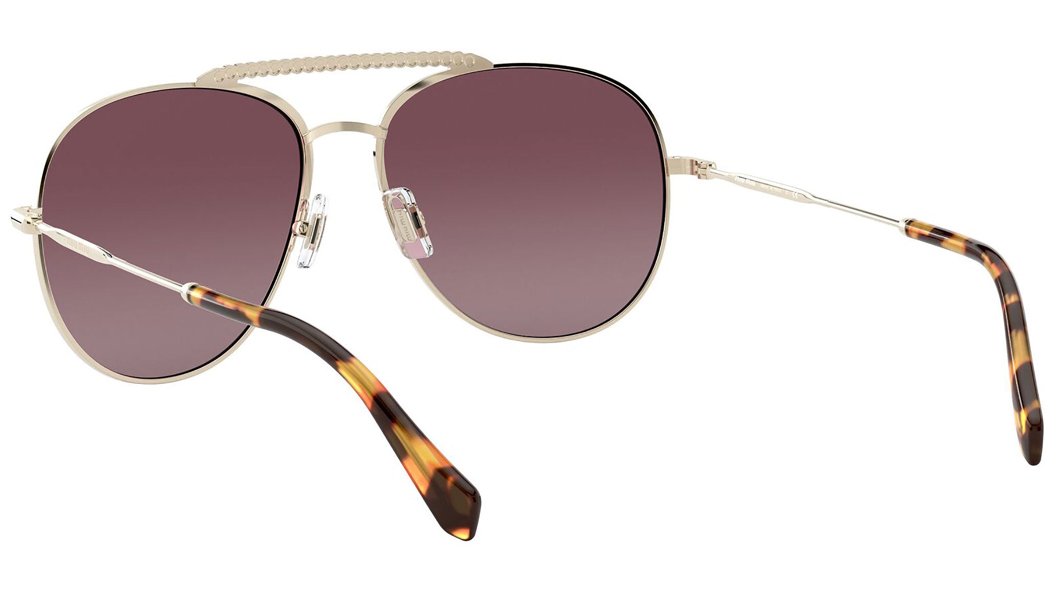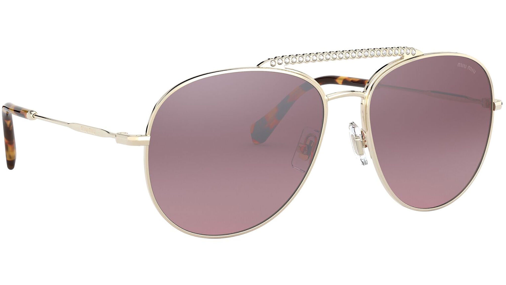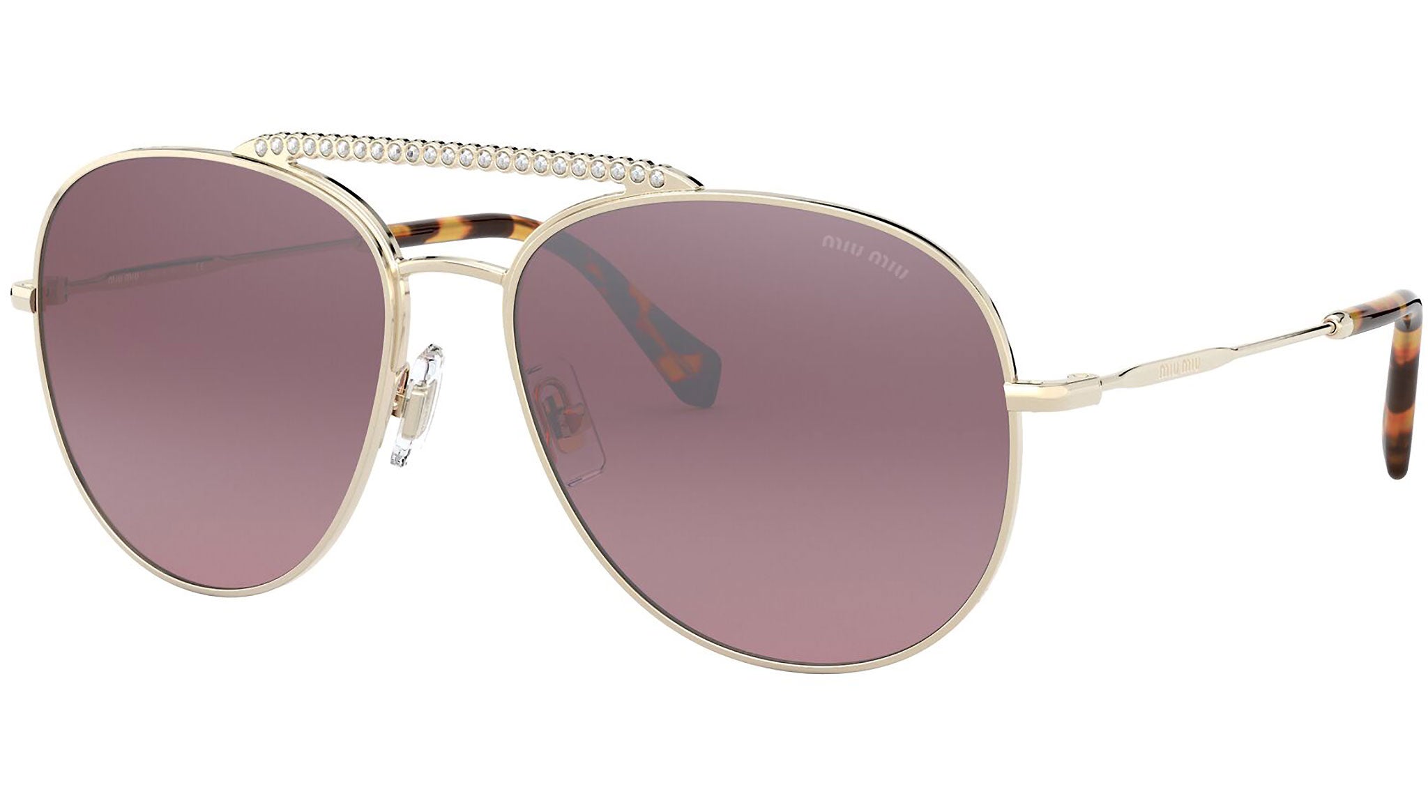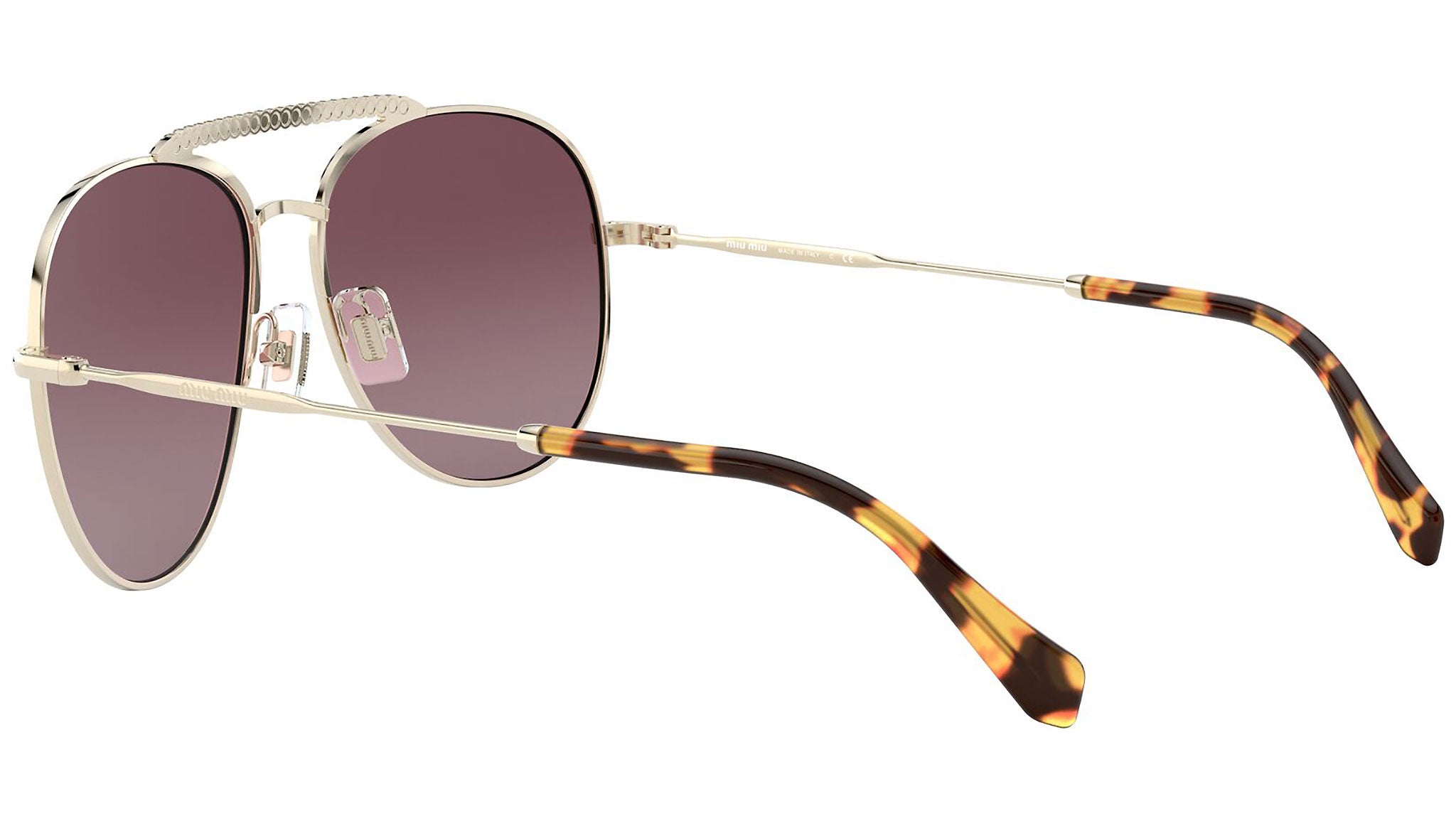 Occhiali da sole Miu Miu modello MU 53VS variante colore ZVNTEG oro chiaro, con lenti color rosa sfumato a specchio argento. Miu Miu offre creazioni uniche, in cui la costante ricerca stilistica si combina perfettamente con la maestria artigianale della lavorazione. Le silhouette femminili e sinuose delle montature sono espressione di una ricchezza dei dettagli che rispecchia pienamente i codici stilistici e l’indiscusso talento del brand nell’unire il design non convenzionale ad un romanticismo dai rimandi retrò.