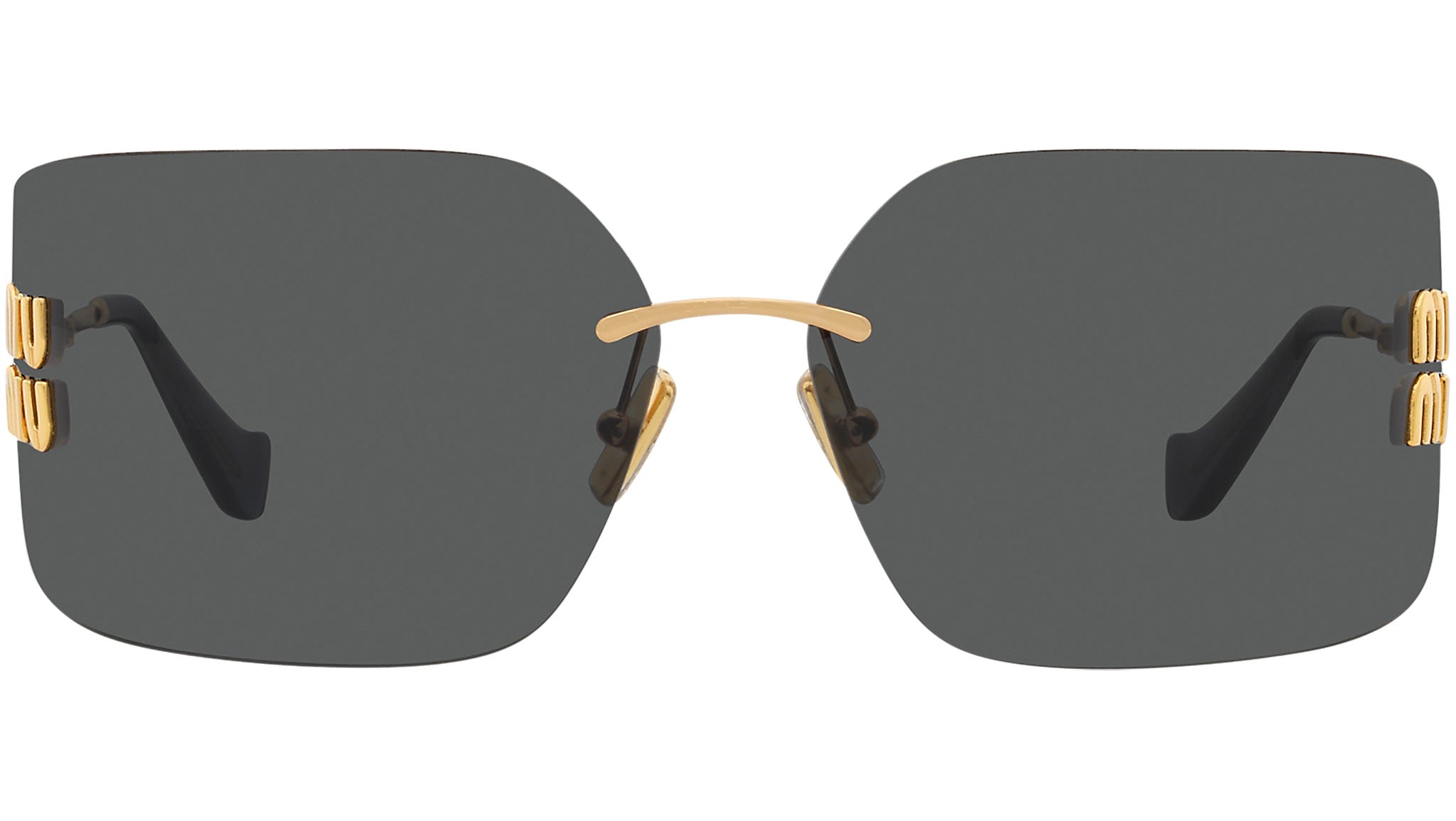 Occhiali da sole Miu Miu modello MU 54YS codice colore 5AK5S0 con montatura color oro in metallo e lenti color grigio scuro. Miu Miu offre creazioni uniche, in cui la costante ricerca stilistica si combina perfettamente con la maestria artigianale della lavorazione. Le silhouette femminili e sinuose delle montature sono espressione di una ricchezza dei dettagli che rispecchia pienamente i codici stilistici e l’indiscusso talento del brand nell’unire il design non convenzionale ad un romanticismo dai rimandi retrò.