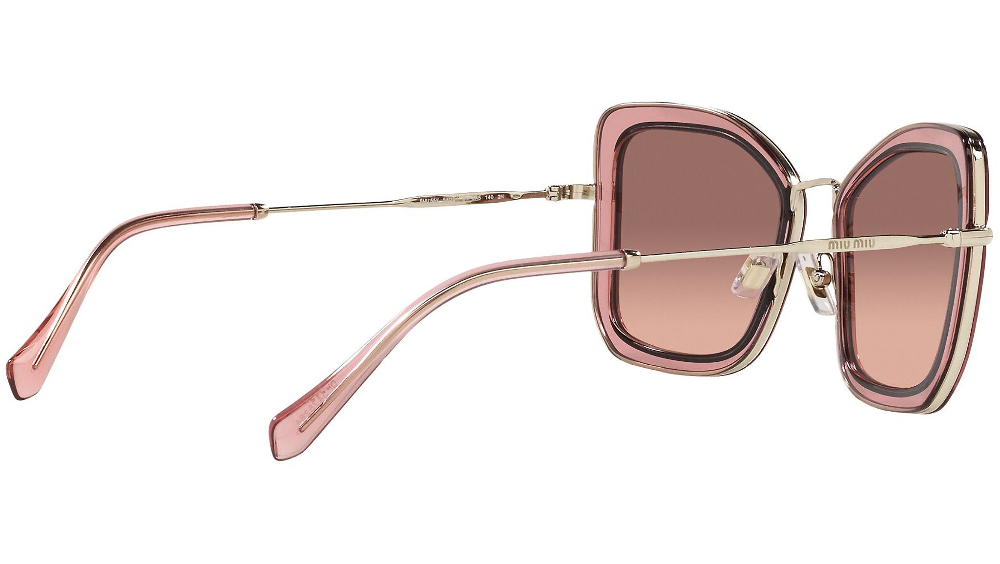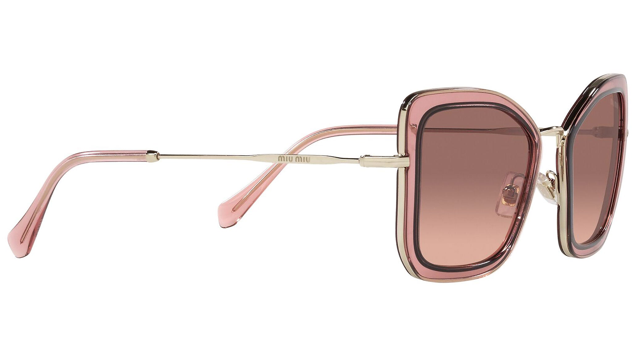 Occhiali da sole Miu Miu modello MU 55VS variante colore 01I0A5 rosa, con lenti color rosa sfumato marrone scuro. Miu Miu offre creazioni uniche, in cui la costante ricerca stilistica si combina perfettamente con la maestria artigianale della lavorazione. Le silhouette femminili e sinuose delle montature sono espressione di una ricchezza dei dettagli che rispecchia pienamente i codici stilistici e l’indiscusso talento del brand nell’unire il design non convenzionale ad un romanticismo dai rimandi retrò.